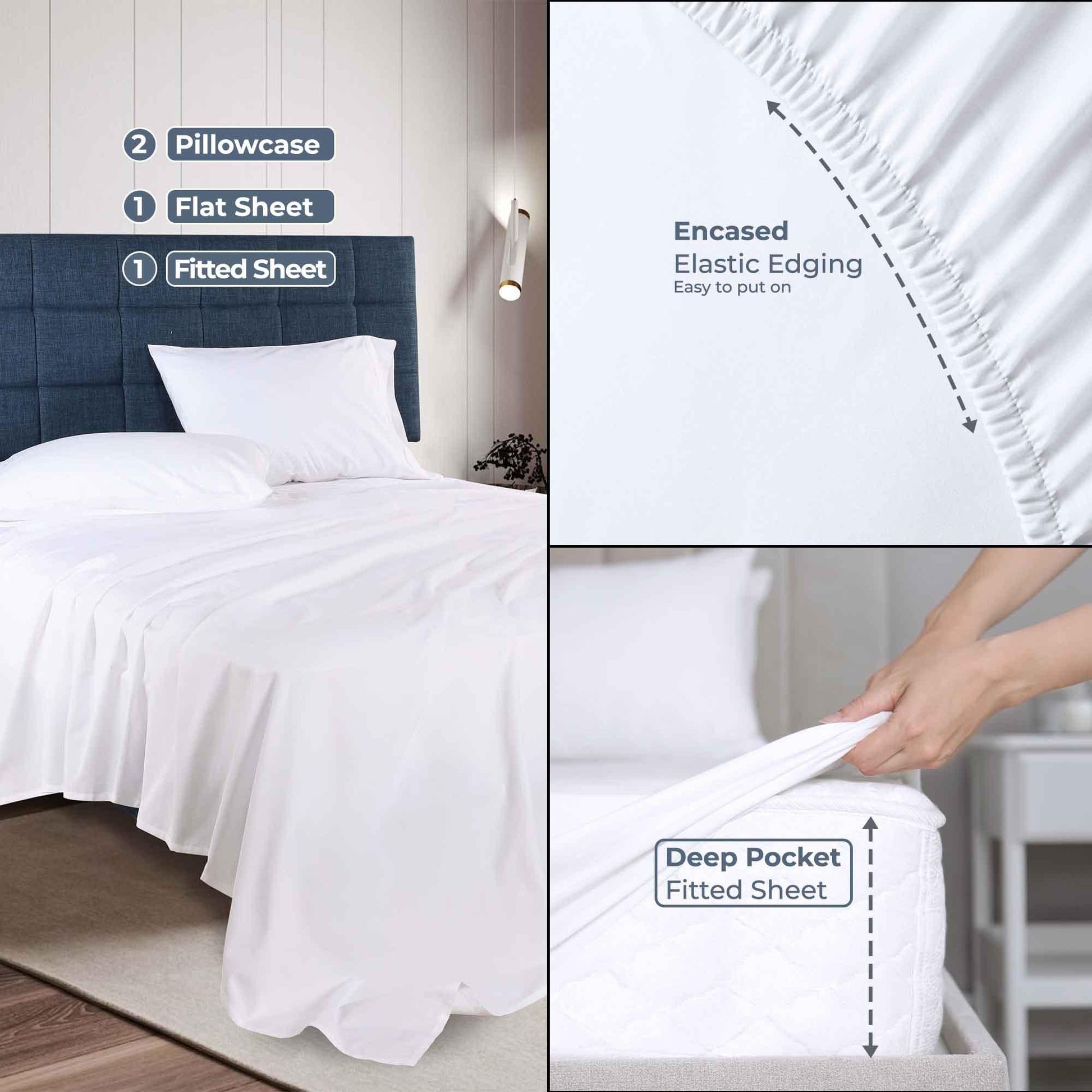 - Two (2) Pillowcases (Twin XL size has One (1) Pillowcase).