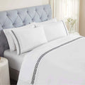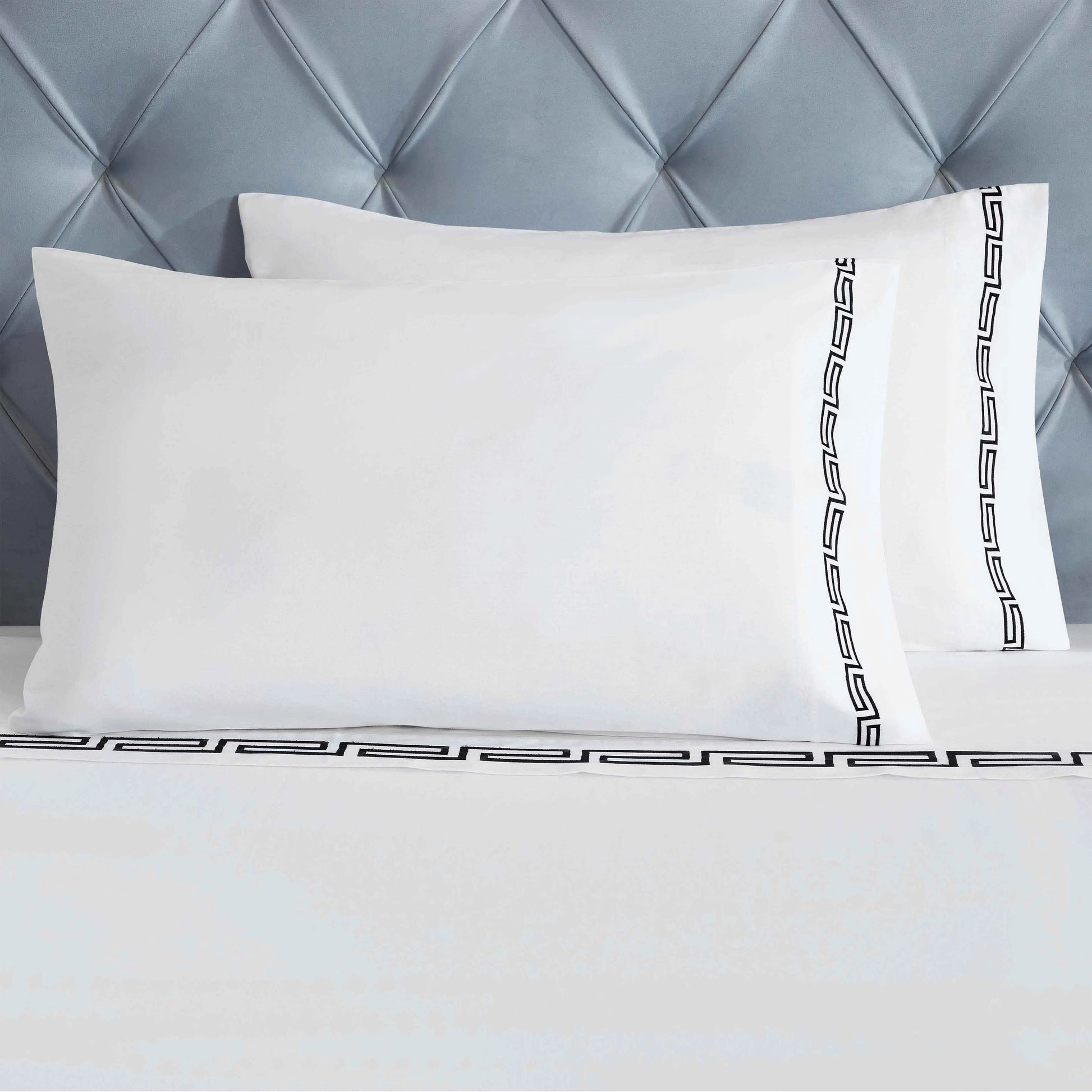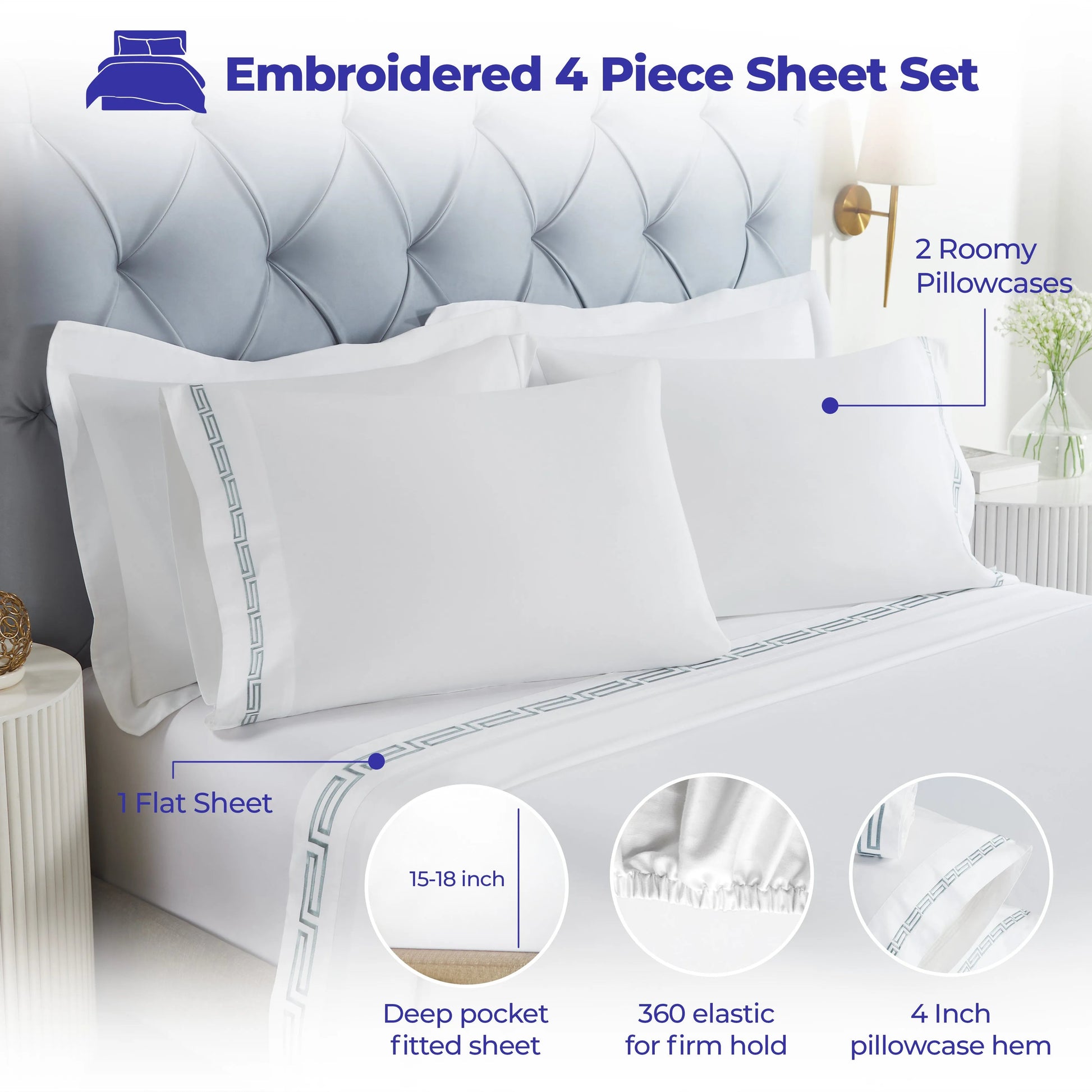 100% Cotton Bed Sheet Set Greek Key Embroidered Deep Pocket Harrison