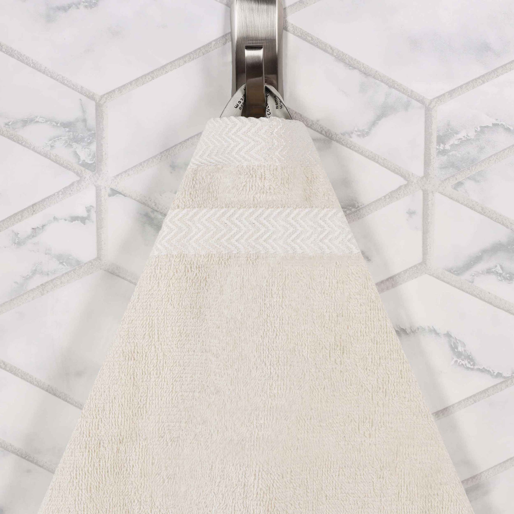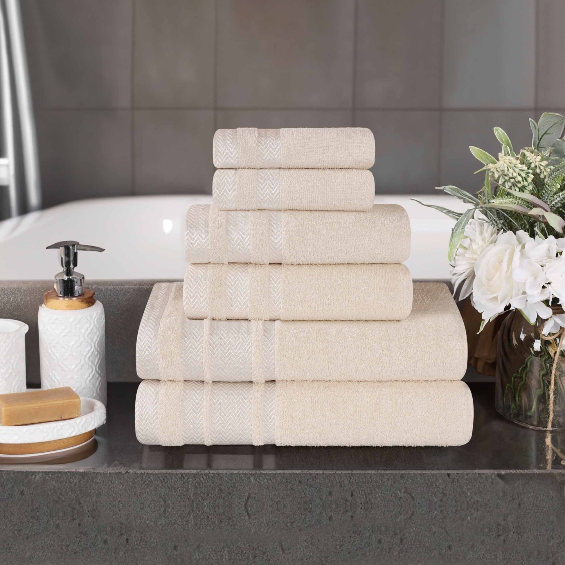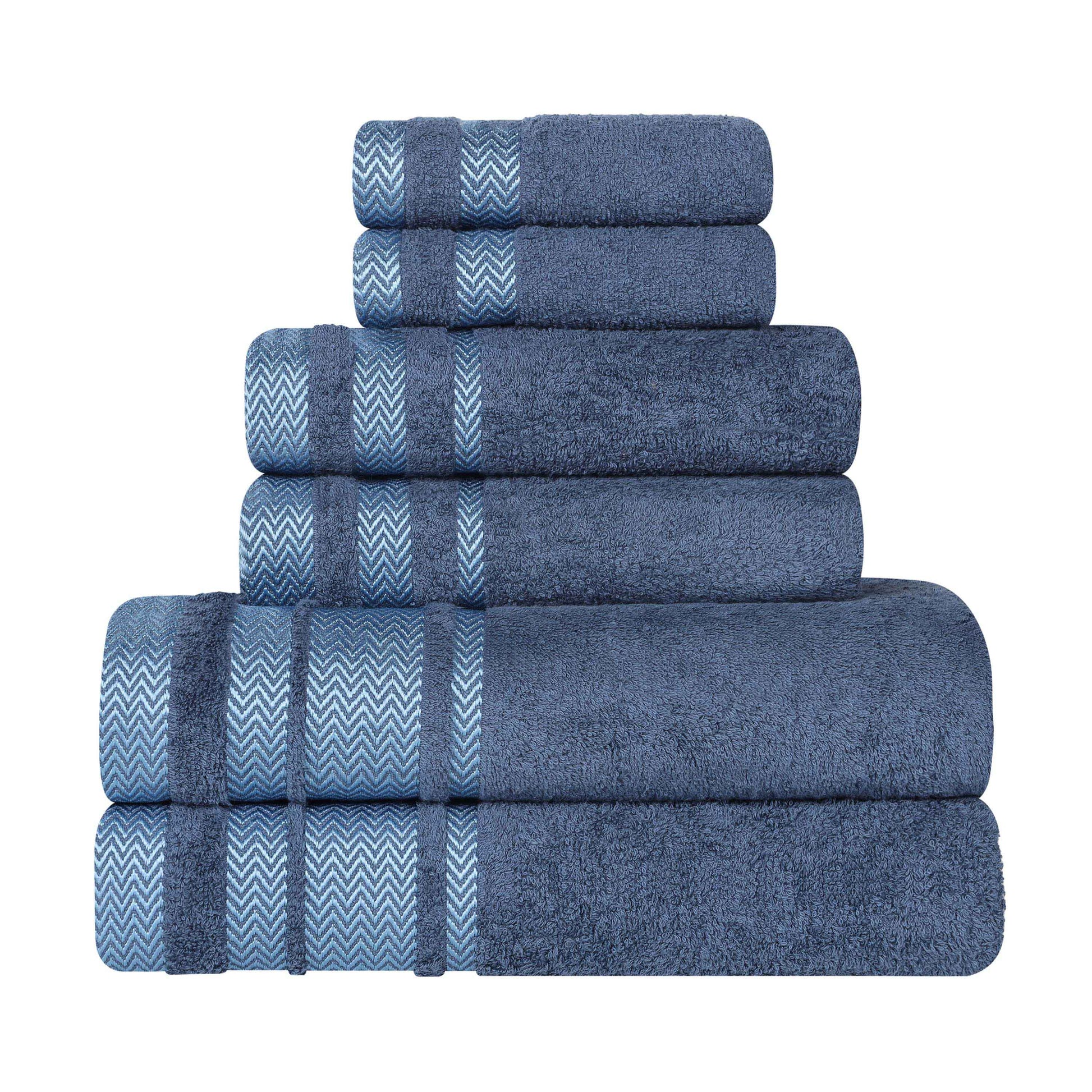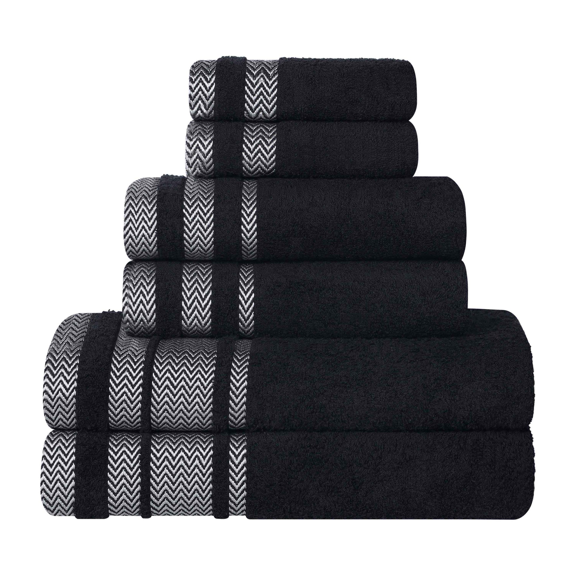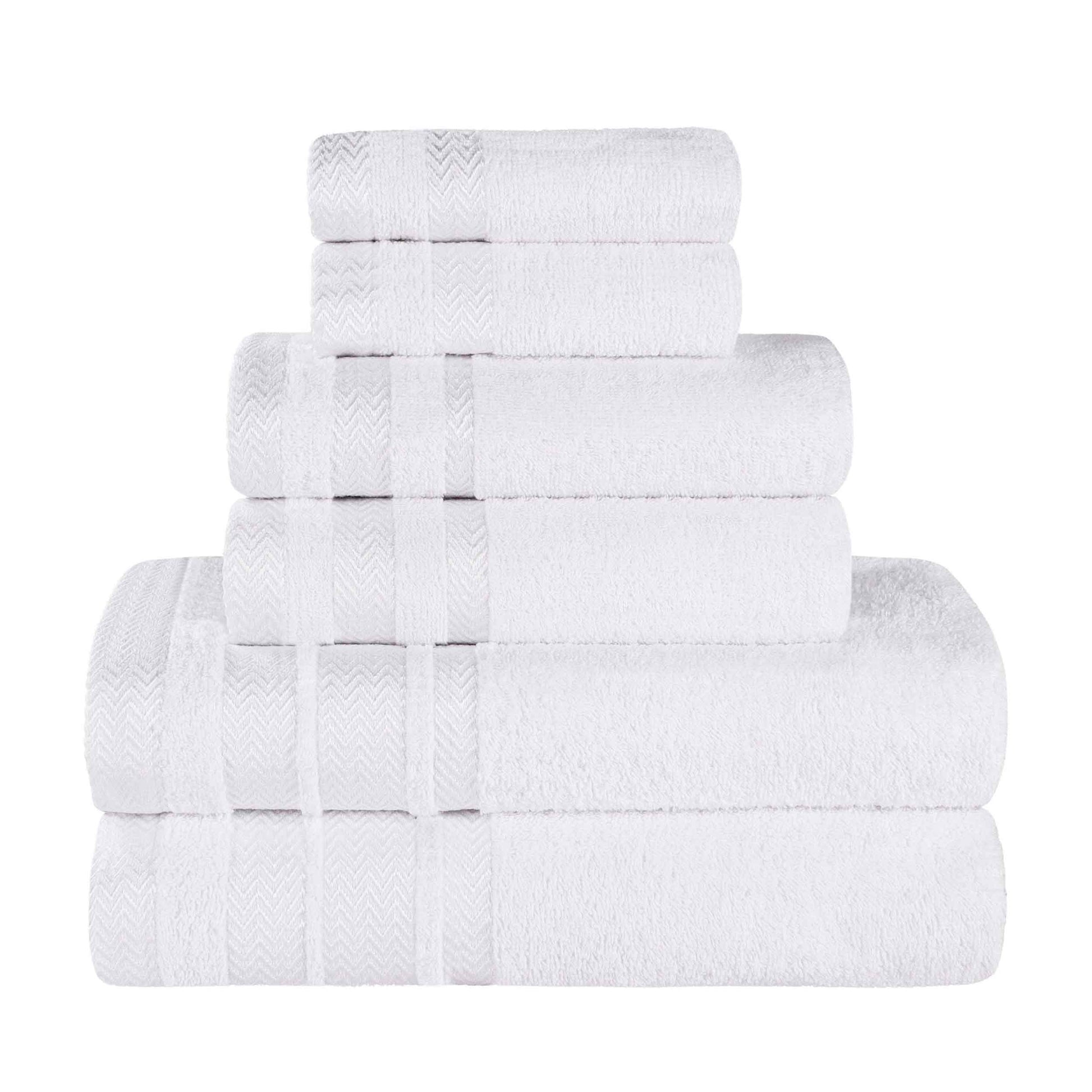 Add a stylish touch to your bathroom decor with our Hays 6 Piece Towel Set. Each piece in this versatile set boasts a whimsical, shiny dobby border and hemmed edges for unparalleled style and durability. These 100% cotton towels are crafted with a terry loop weave for a softer, more absorbent, and luxurious towel. Available in an assortment of classic colors, these towels also feature a convenient hanging loop to lend a tailored finish to your bathroom decor.