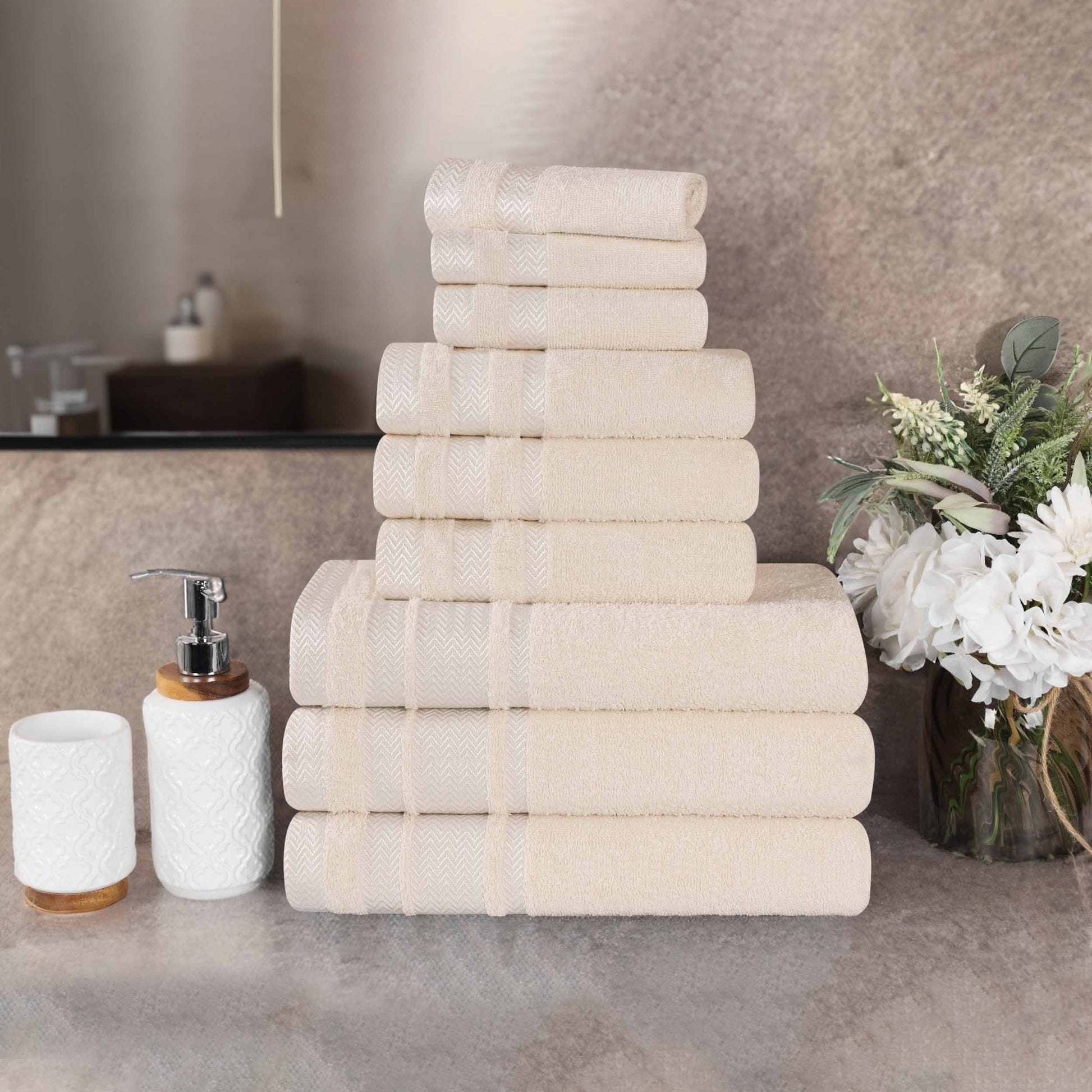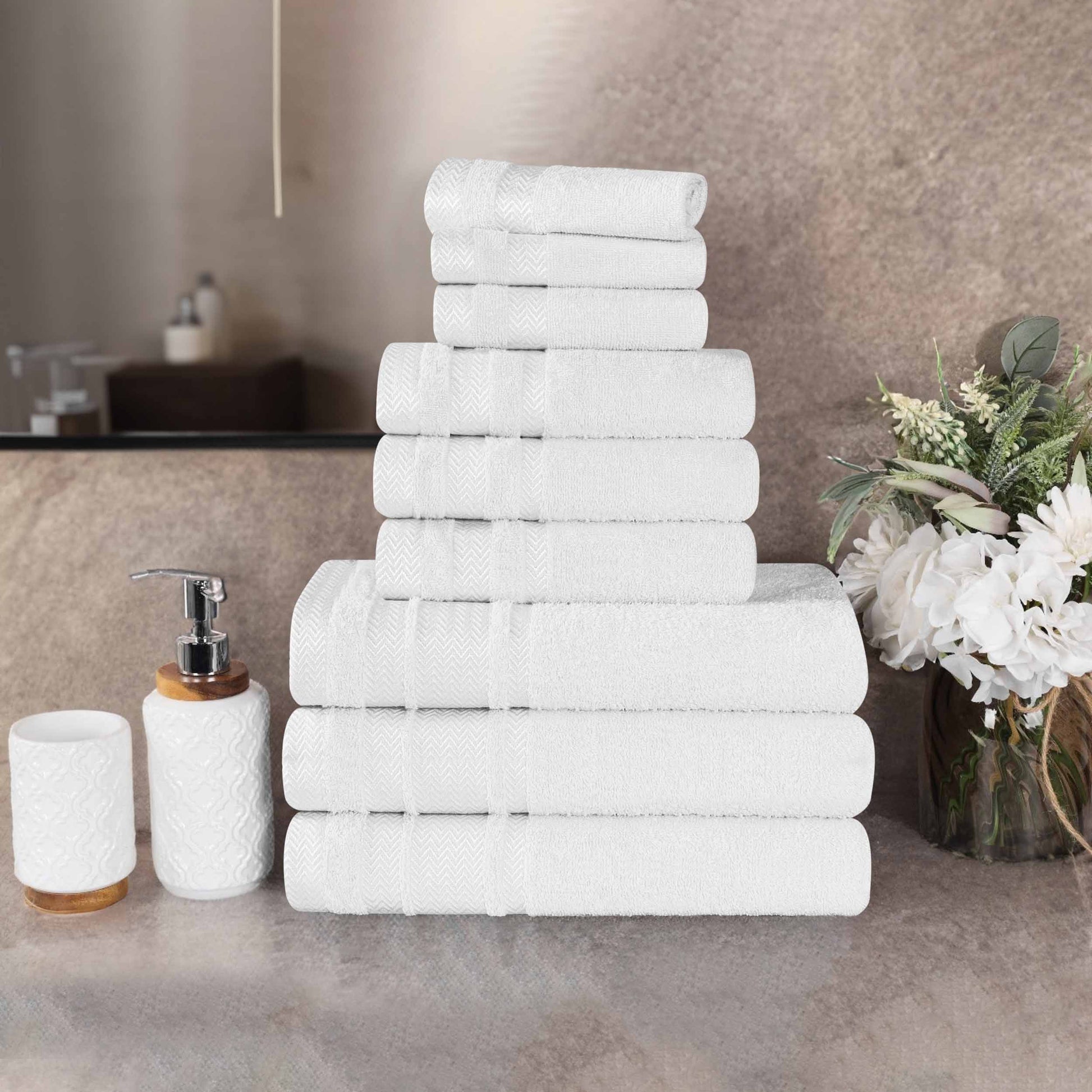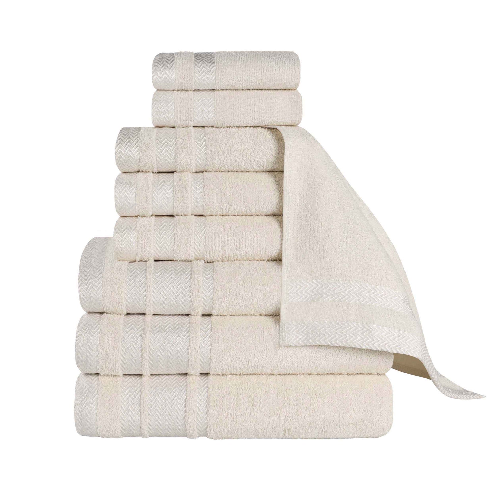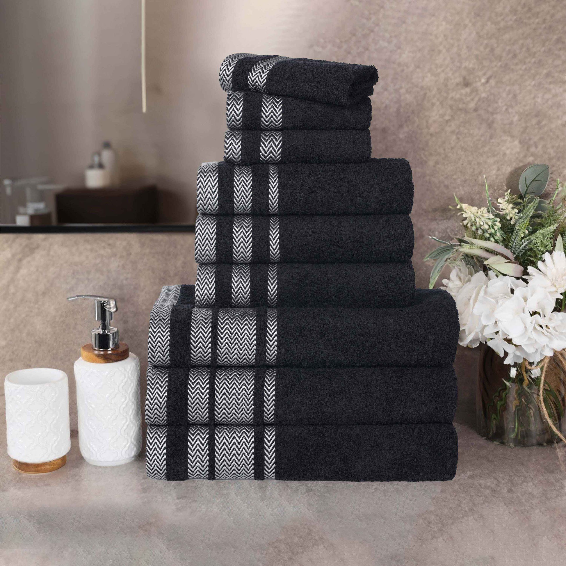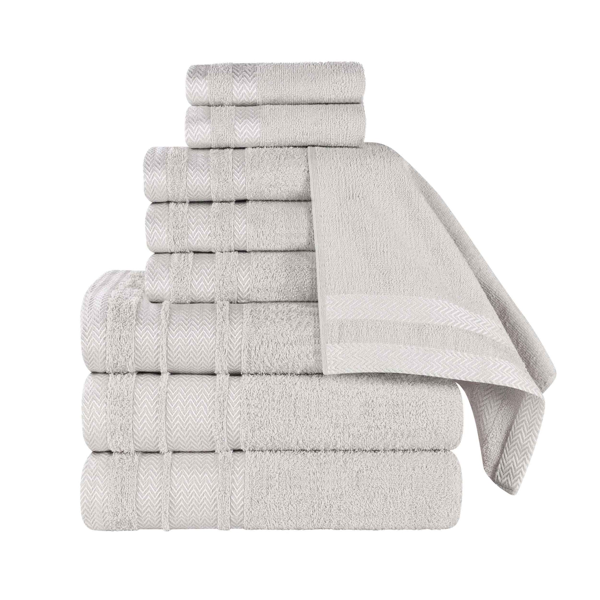 Style your bathroom with the beautifully designed Hays Cotton 9 Piece Towel Set. Our soft and fluffy cotton towels have a medium weight to keep you warm and get you dry quickly. These 100% cotton towels are crafted with a terry loop weave for a softer, more absorbent, and luxurious towel. For an added bonus, these towels retain their softness after every wash. Instantly update your master bathroom, powder room, or guest bathroom to a relaxing retreat with this elegant towel set.