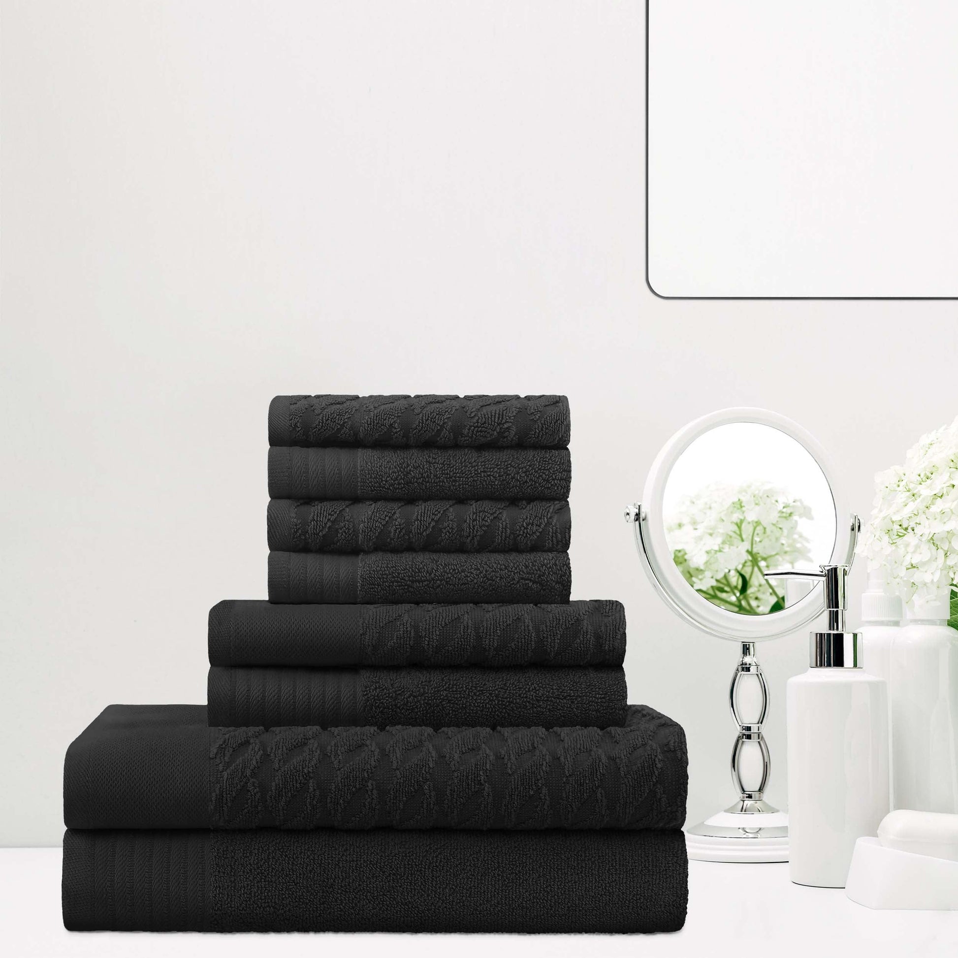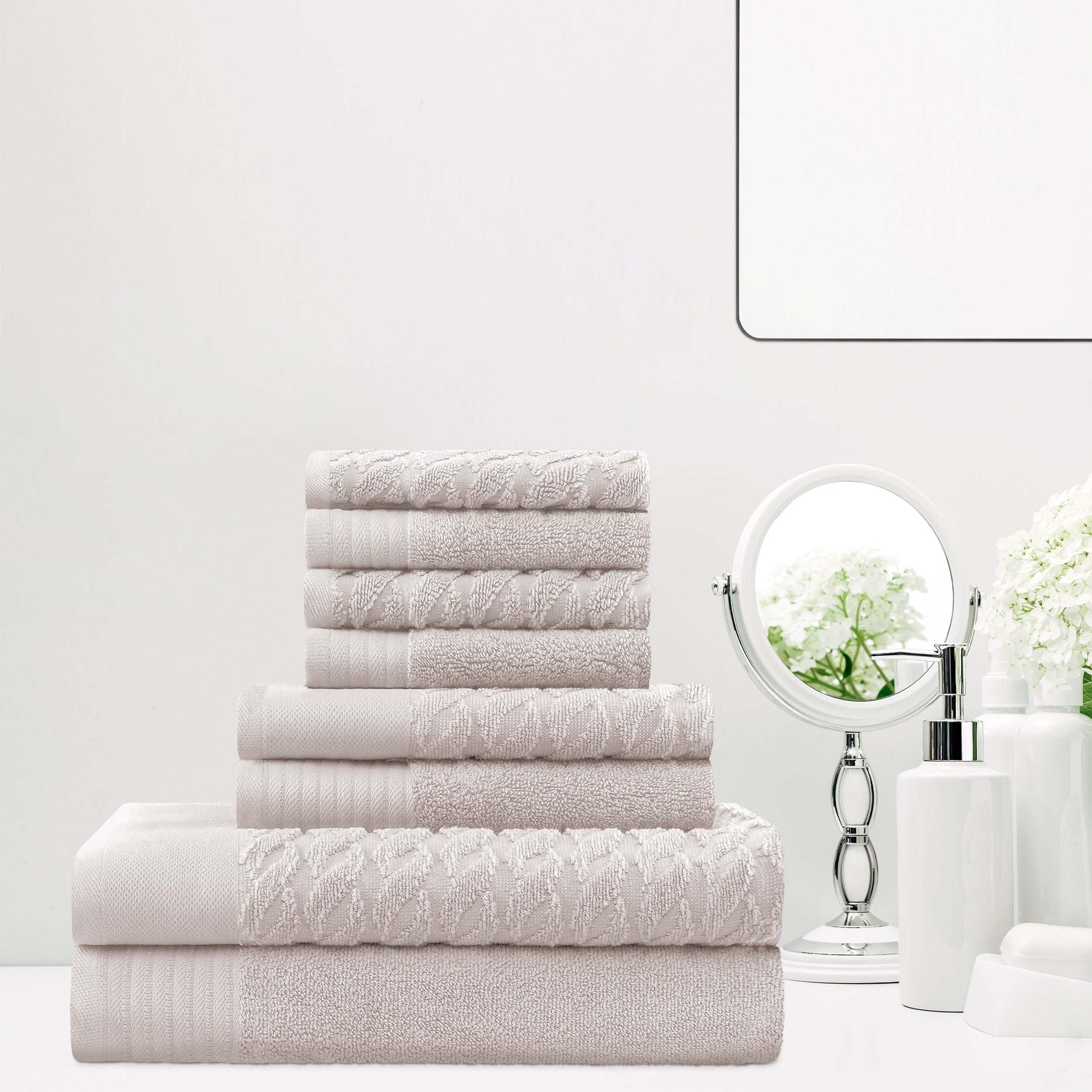 Turkish Cotton Jacquard Herringbone and Solid 8 Piece Towel Set