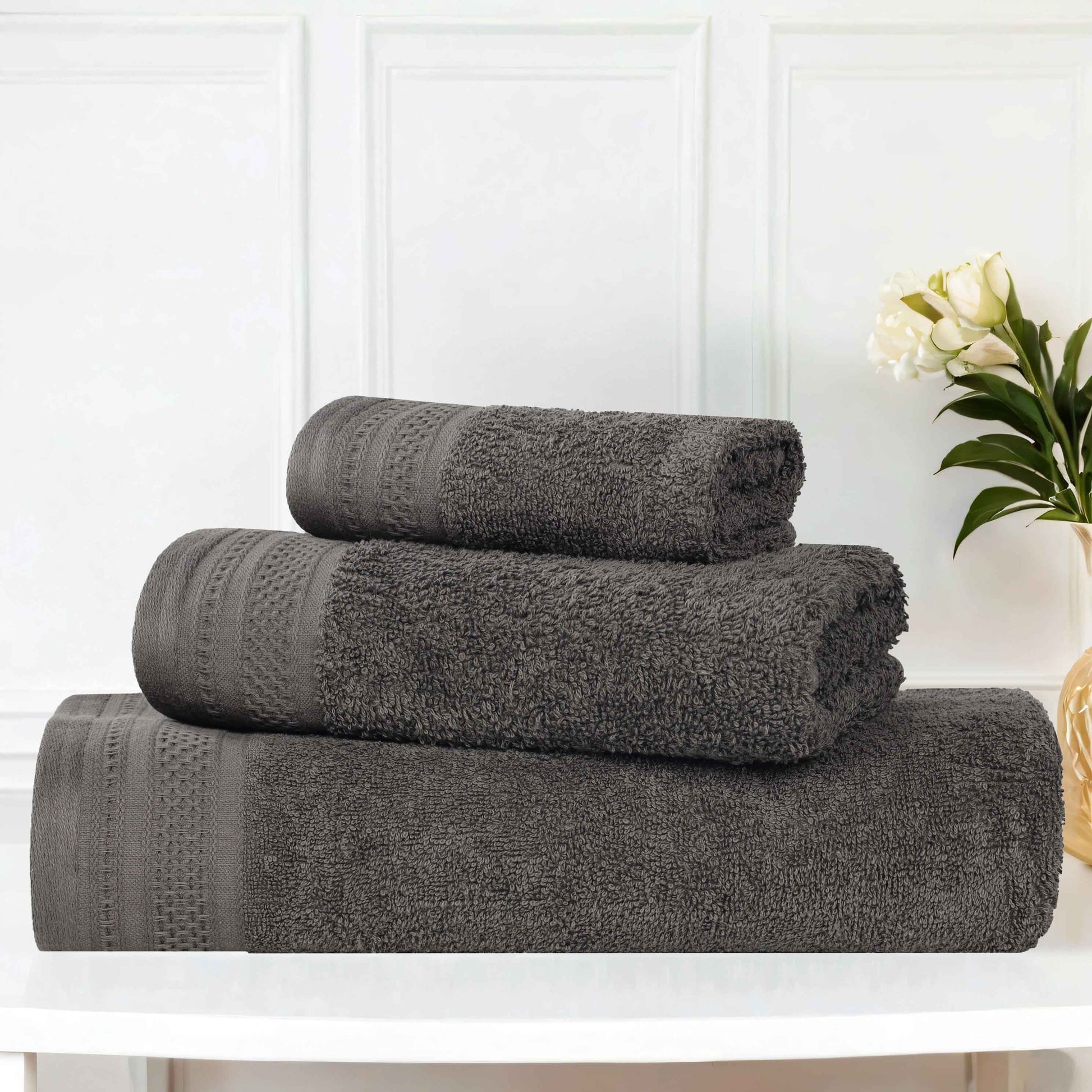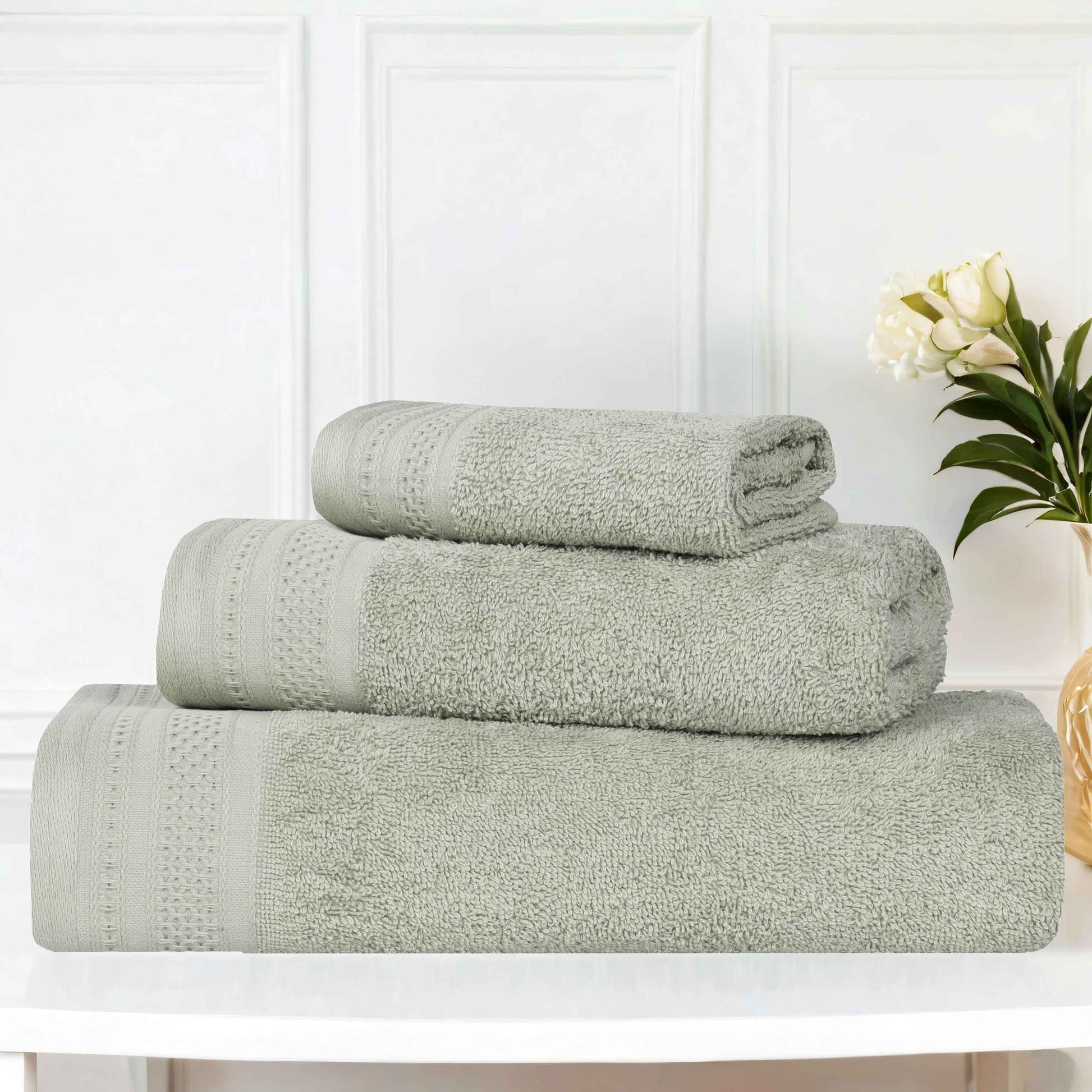 Honeycomb Textured Waffle Border Cotton 3 Piece Towel Set