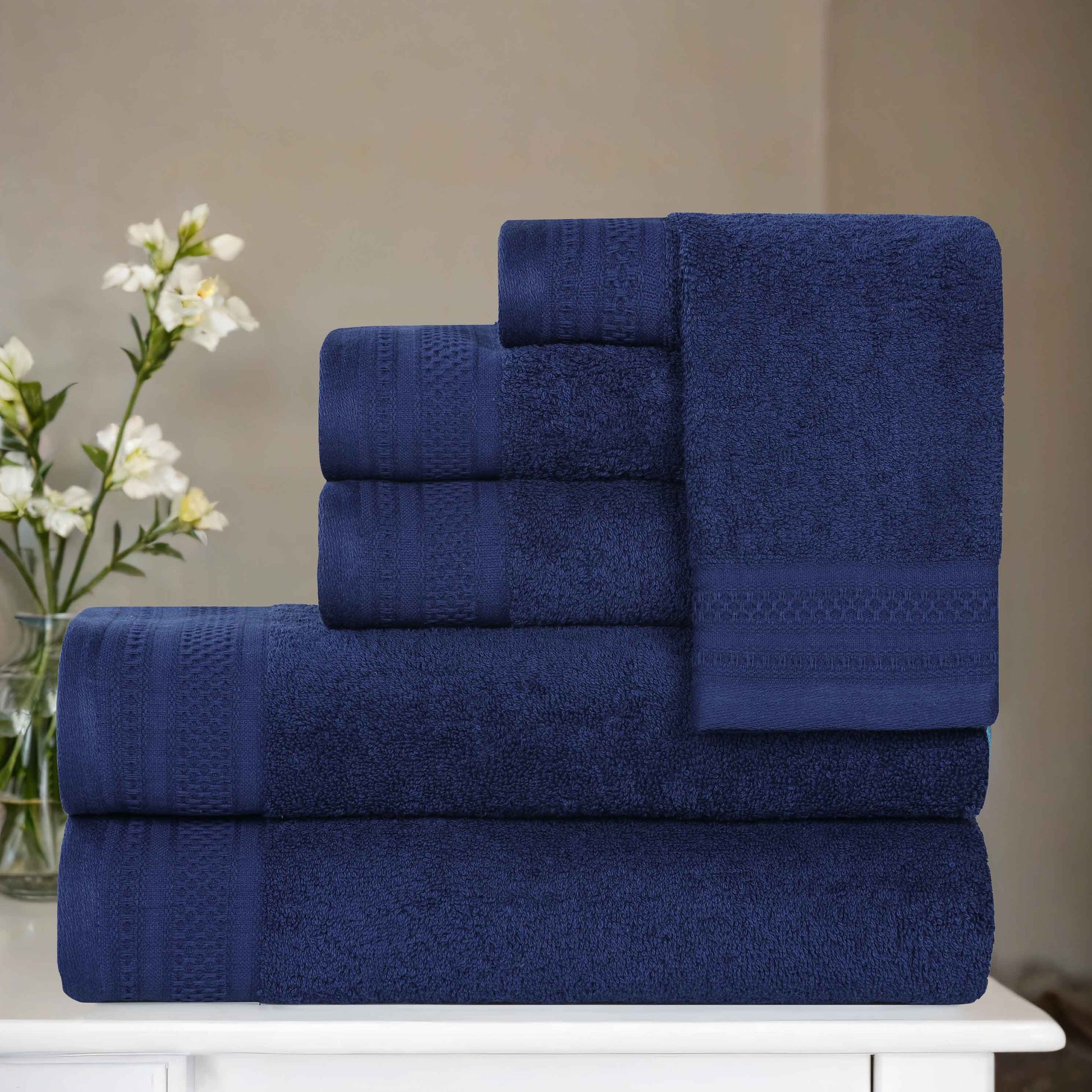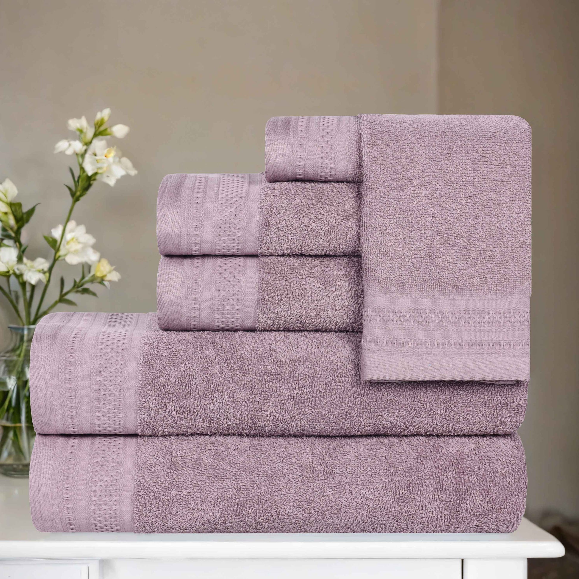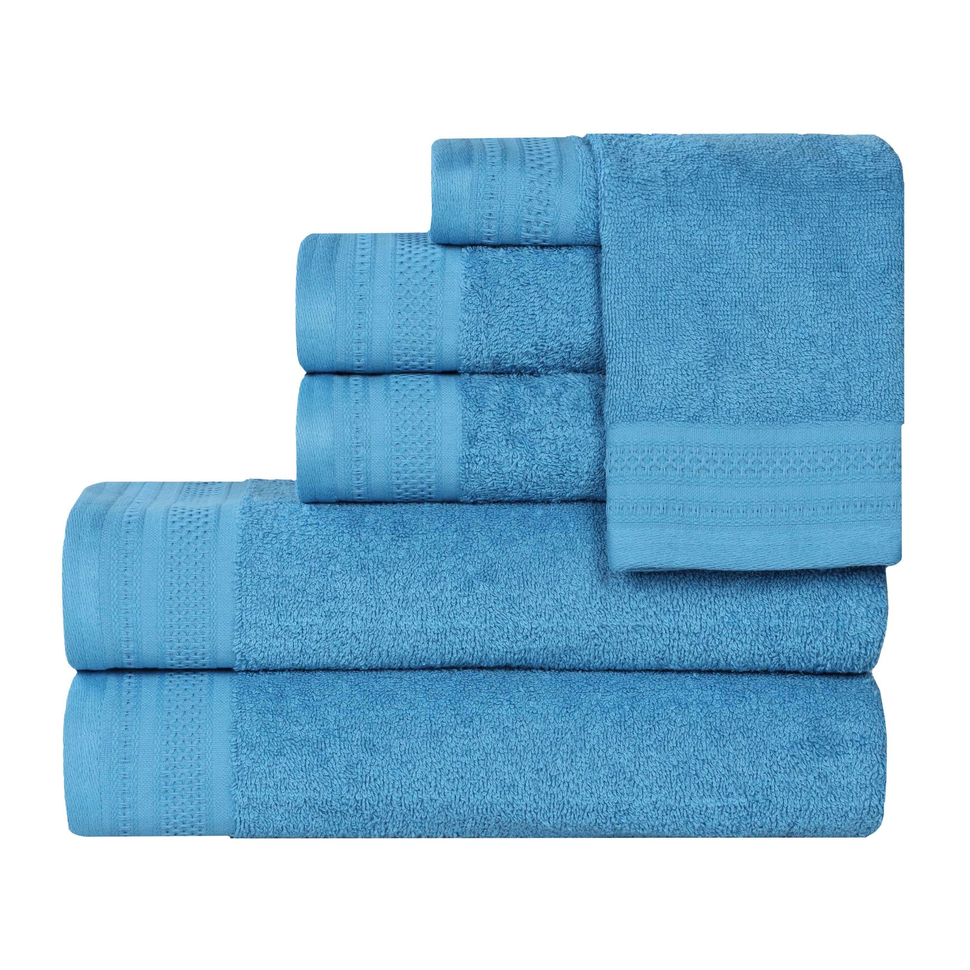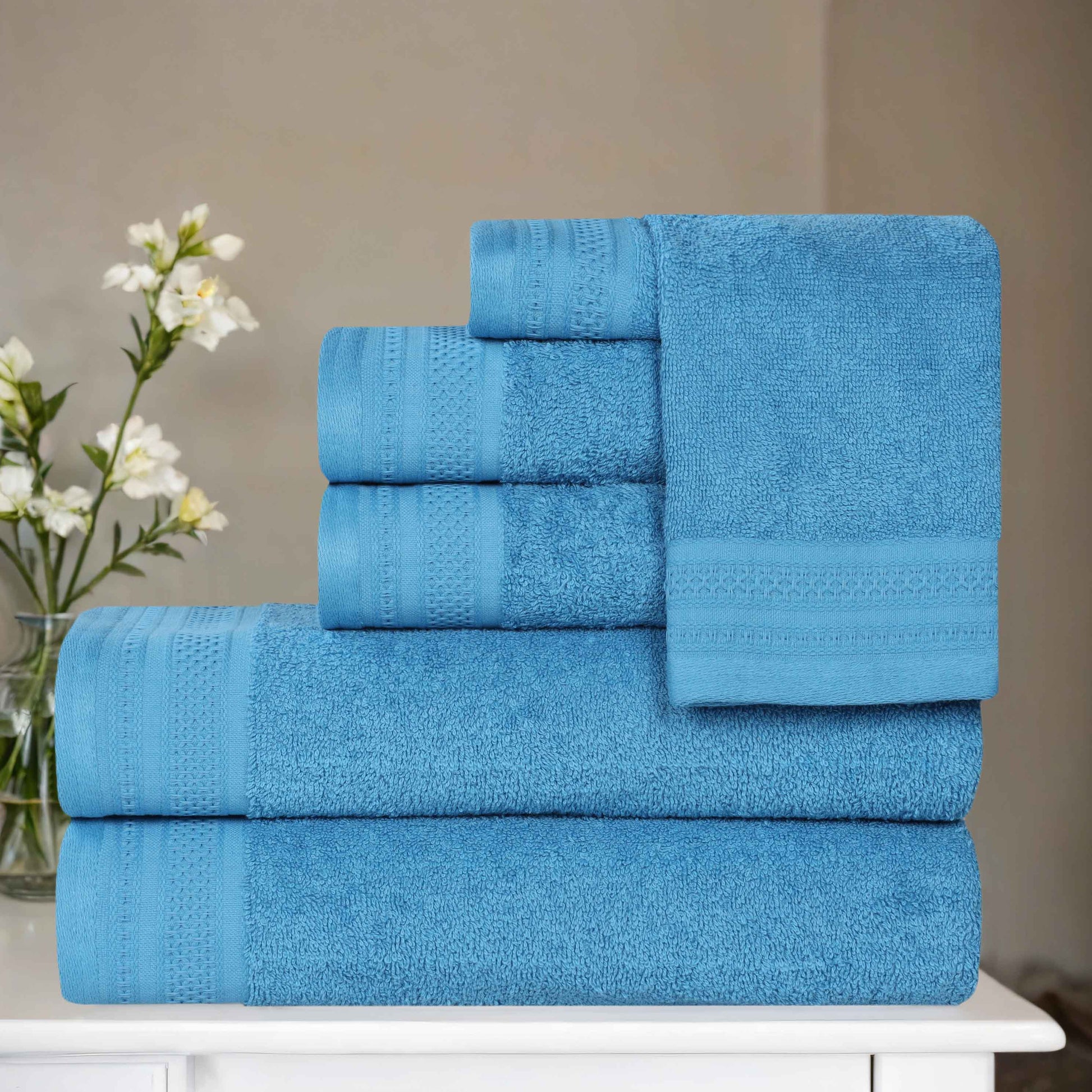 Honeycomb Textured Waffle Border Cotton 6 Piece Towel Set