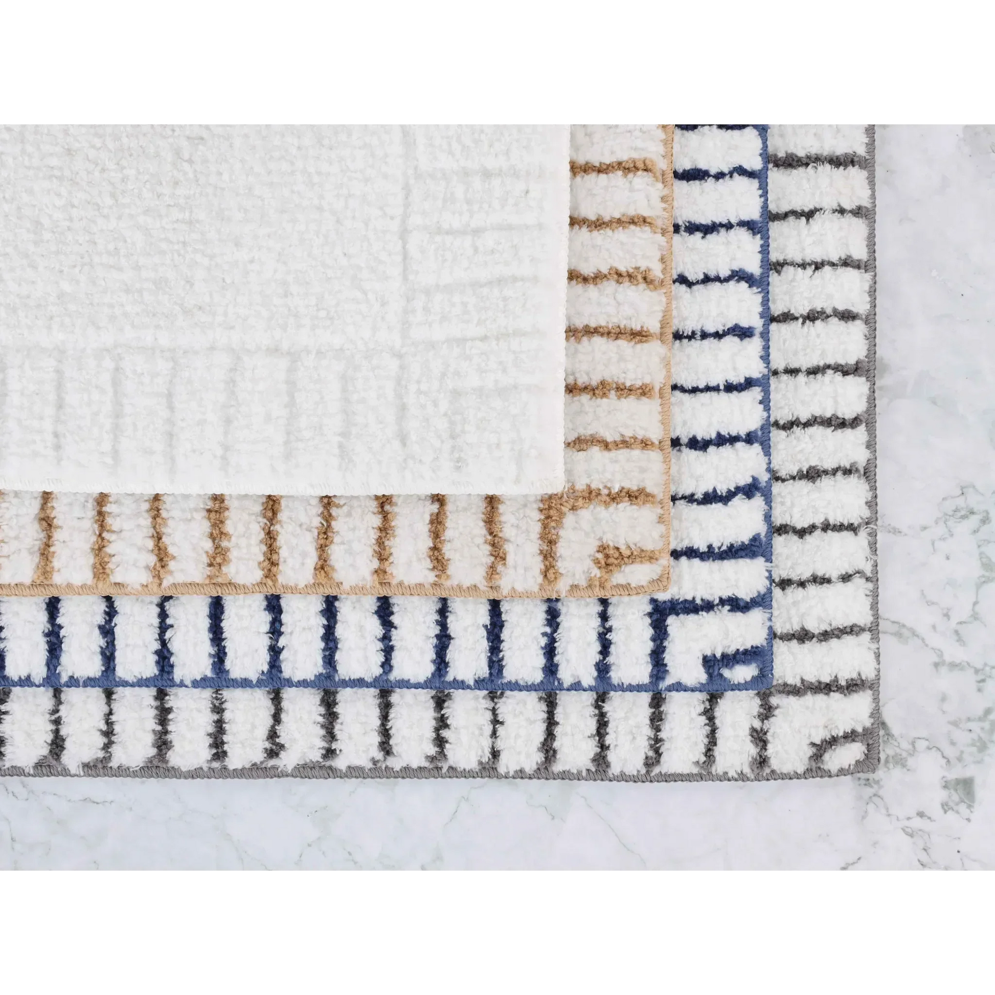 Inaya Modern Striped Tufted Shag Machine Washable Bath Rugs, Set of 2