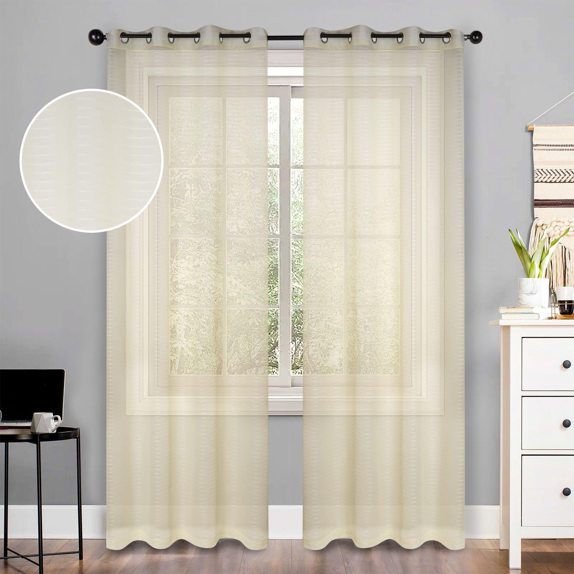 Jackson Striped Sheer Window Curtain Panels, Set of 2