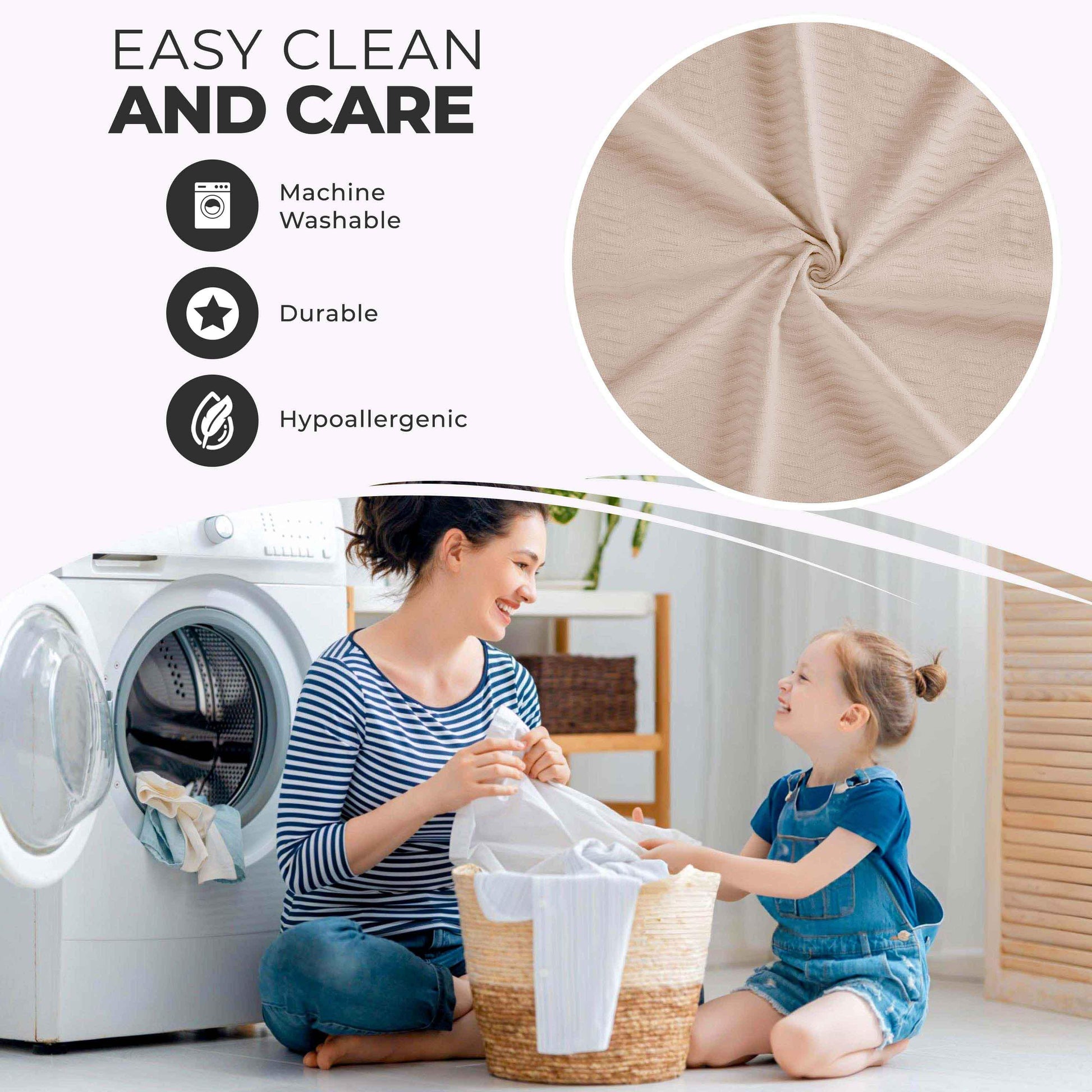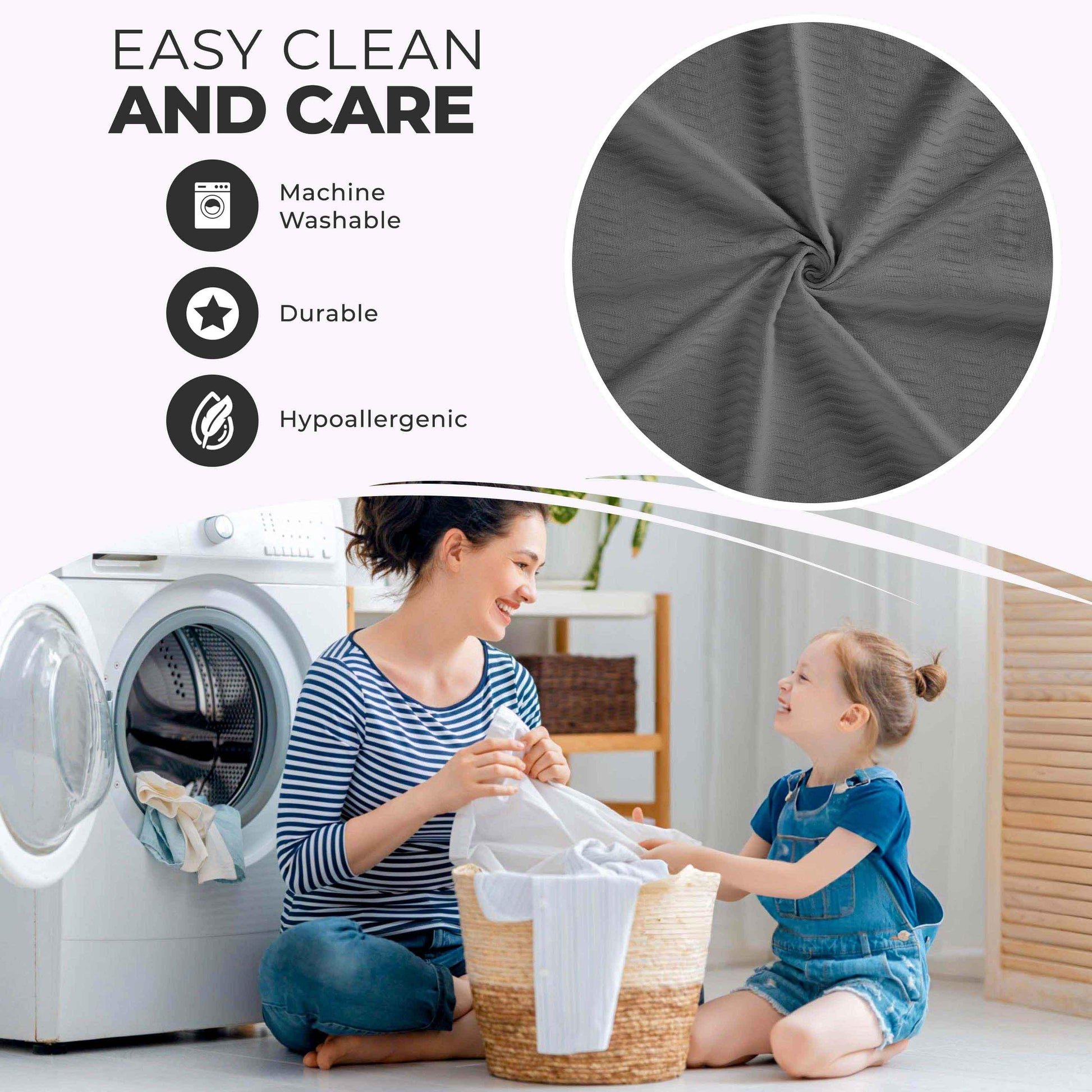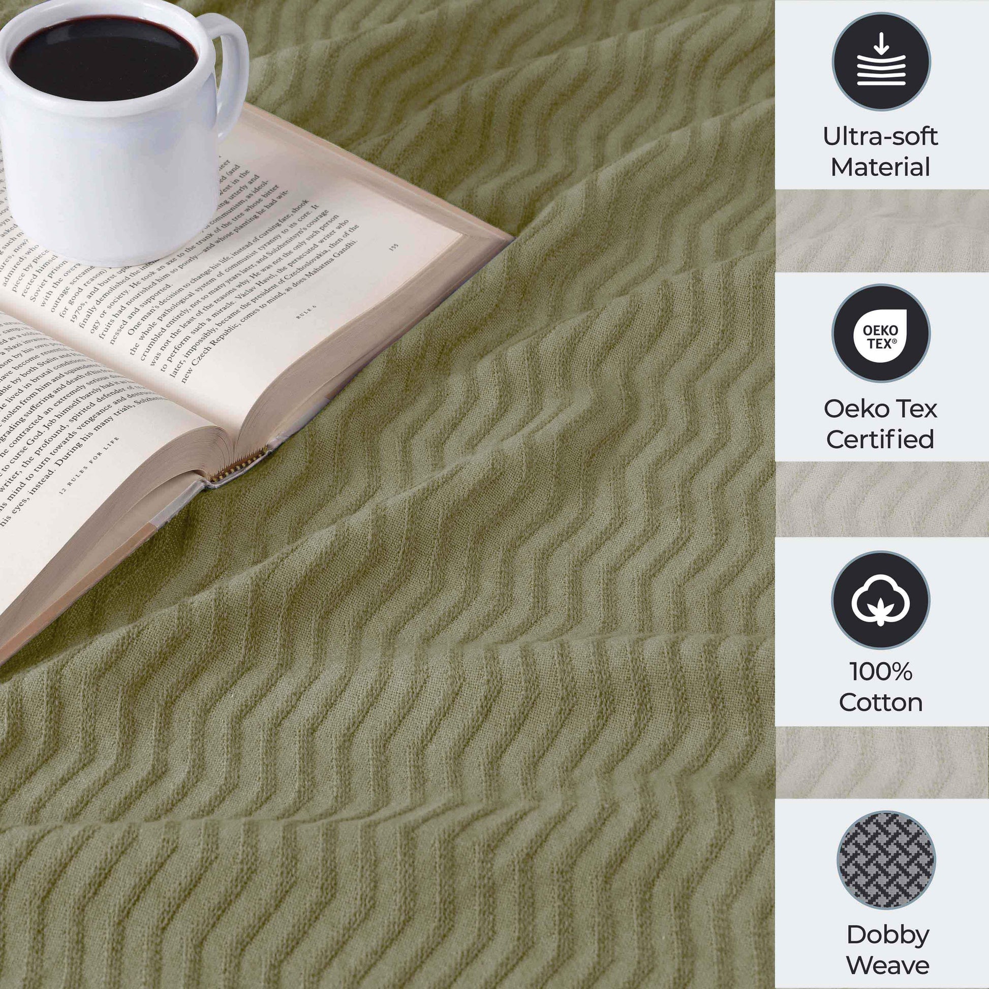 - Additional Features: Dobby jacquard weave boasts refined texture. Self-binding edges and mitered corners for added durability. Breathable all-season comfort; Lightweight ultra-soft material with a smooth, raised texture.