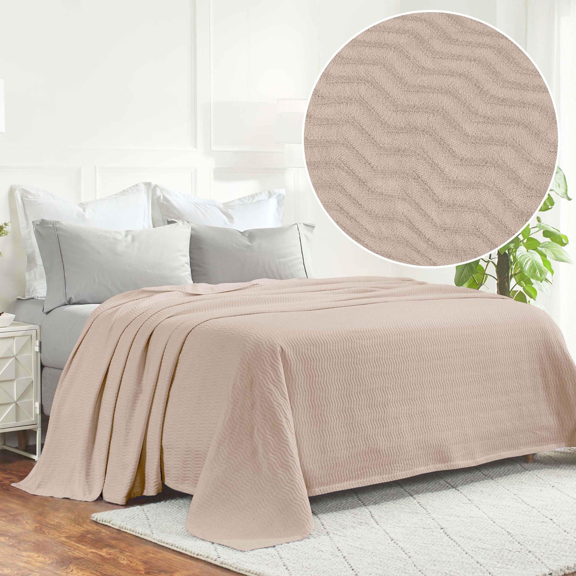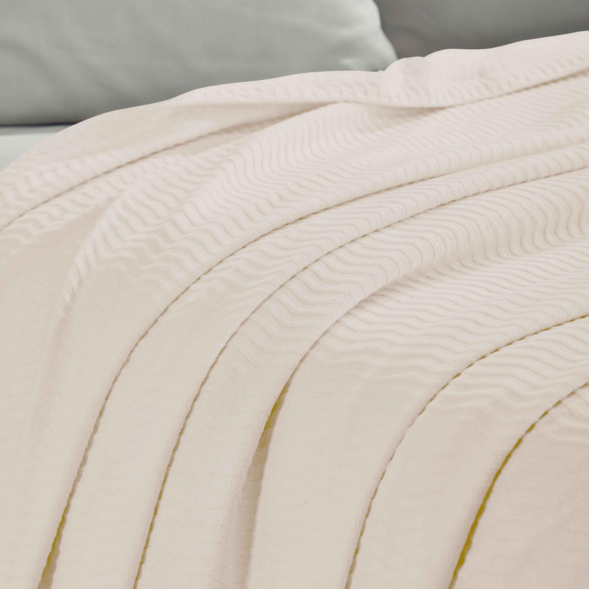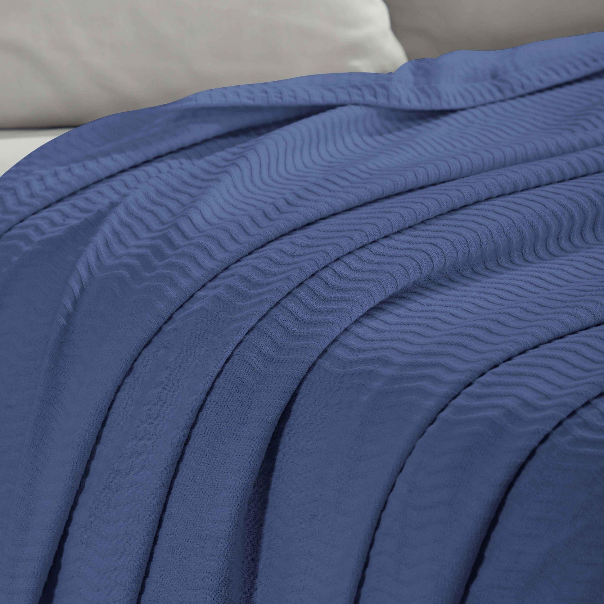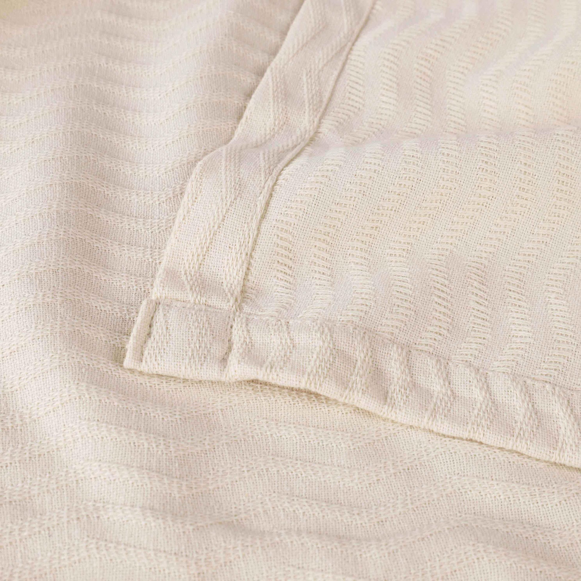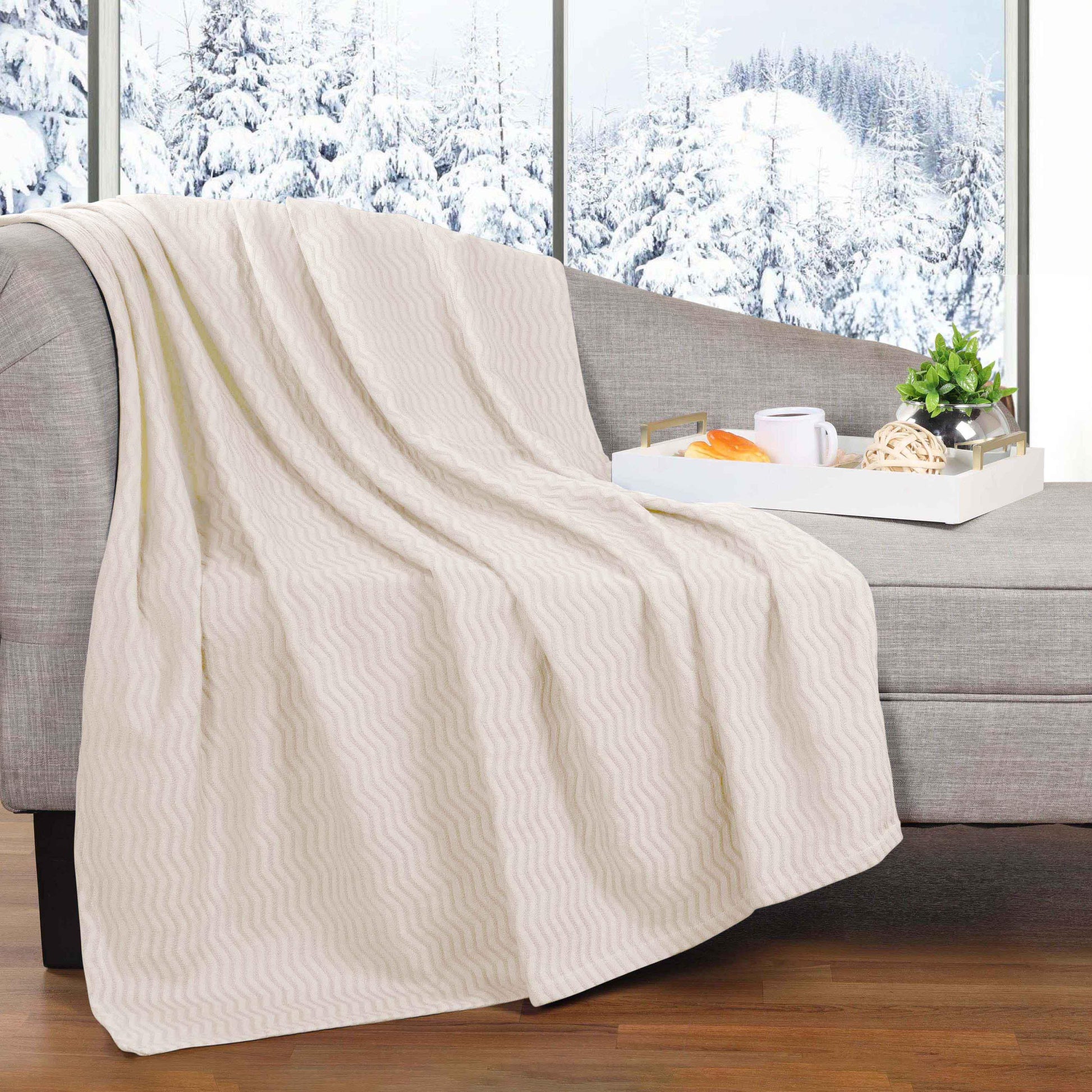 Subtle and alluring, the unique design and irresistible comfort of our Jena Cotton Blanket will keep you cozy when you need it the most. Crafted from naturally soft cotton, this blanket has a luxurious feel and comfortable design. Lightweight and breathable, this bedding essential keeps you covered and warm while you sleep or lounge. This blanket is available in solid color options with a raised jacquard weave design and vertical chevron pattern to instantly update your bedroom or living room. Change the look of your favorite space with this modern style cotton blanket.