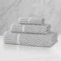 Juno Cotton Blend Textured Checkered Ribbed Border 3 Piece Towel Set