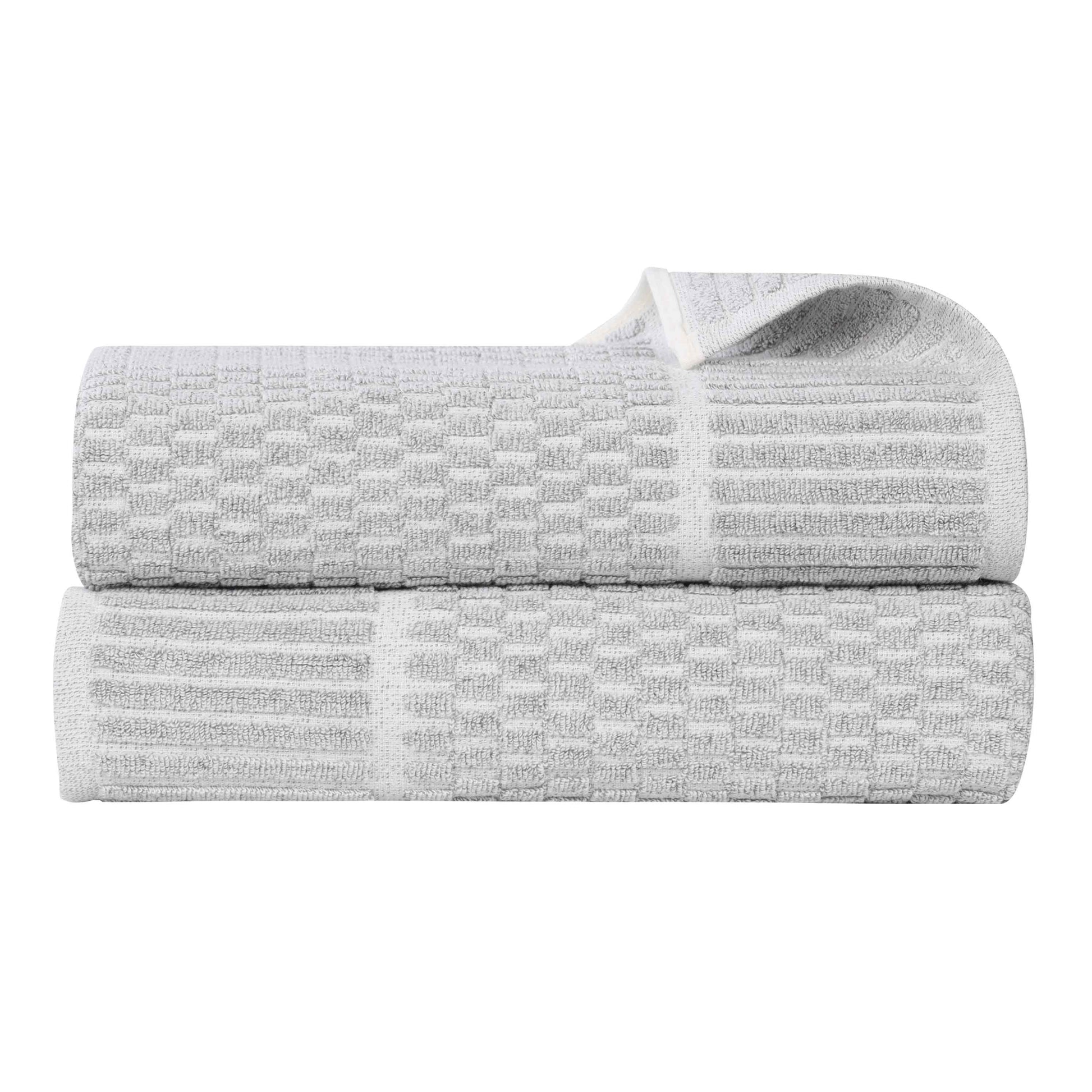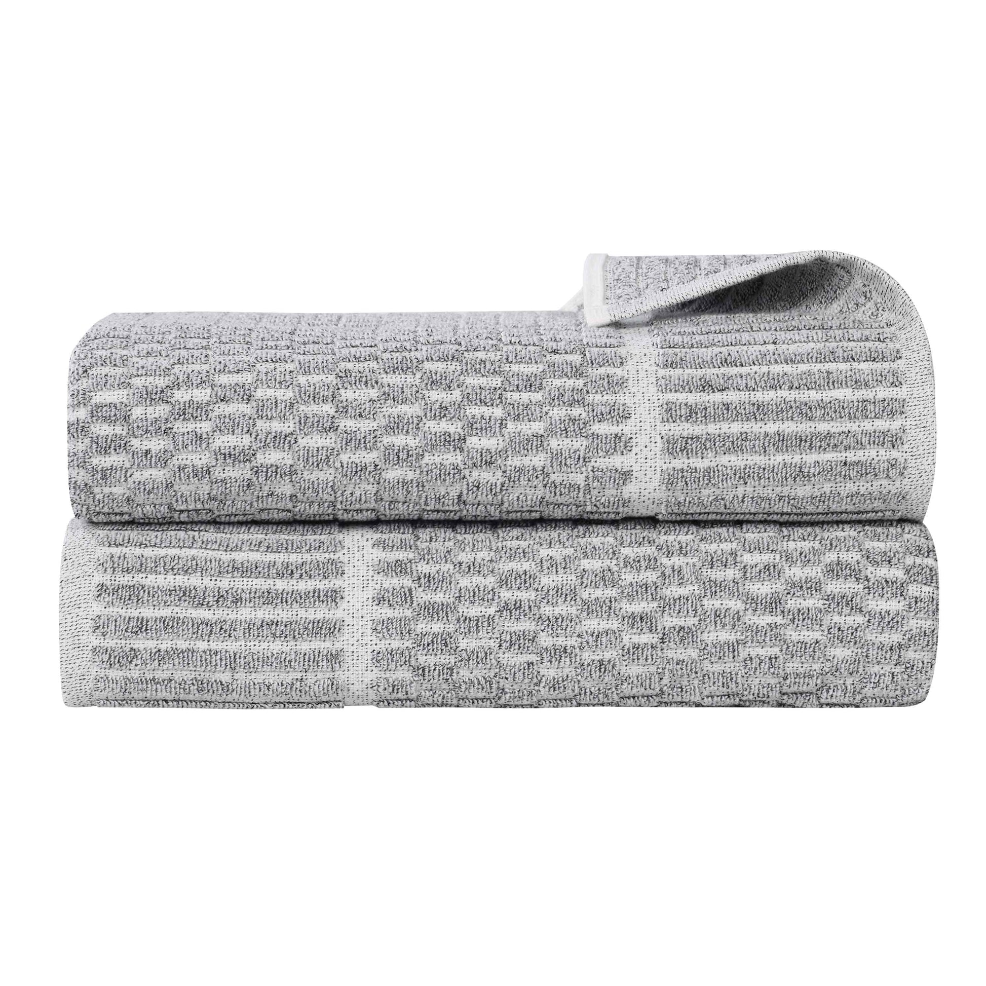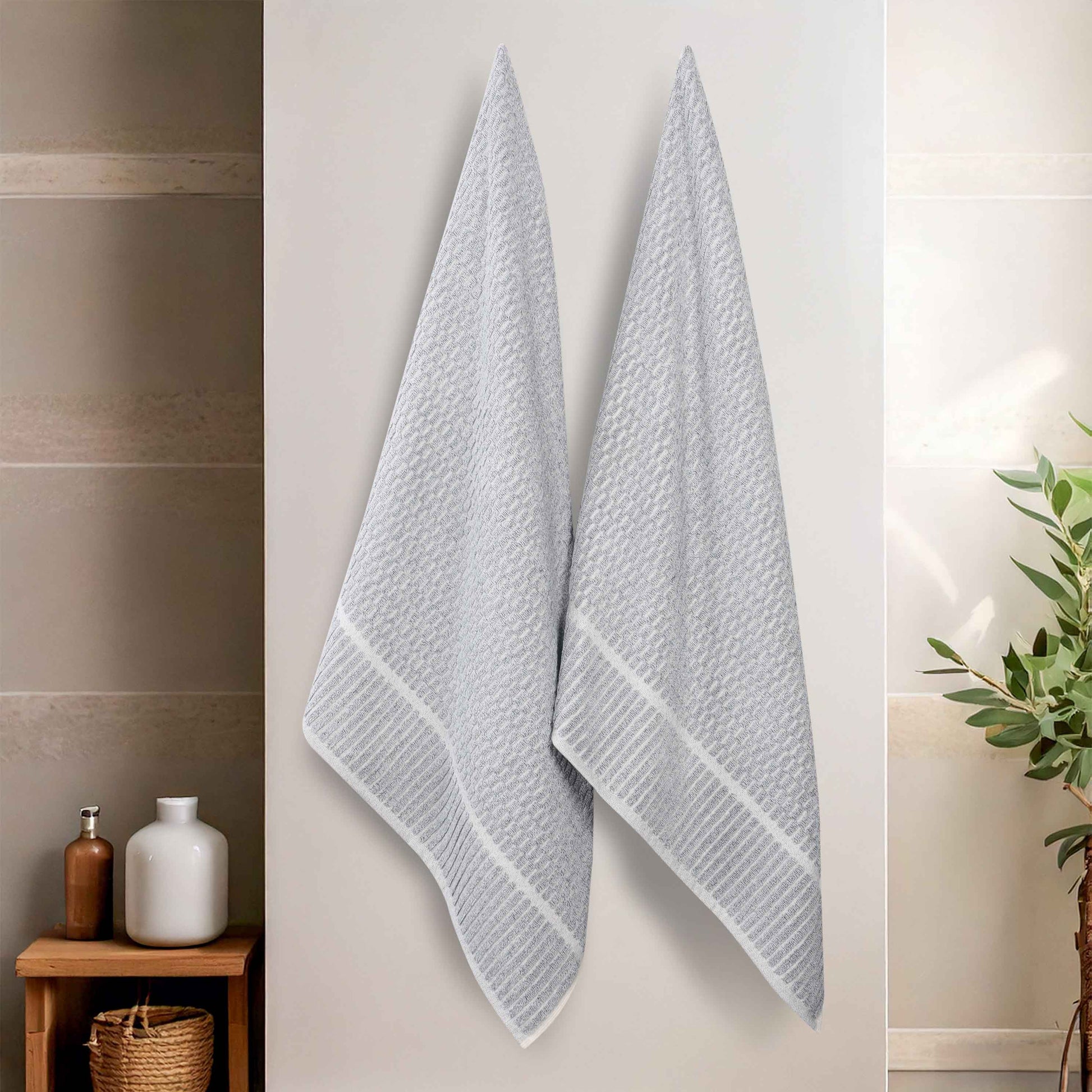 Juno Cotton Blend Textured Checkered Ribbed Border Bath Sheets, Set of 2