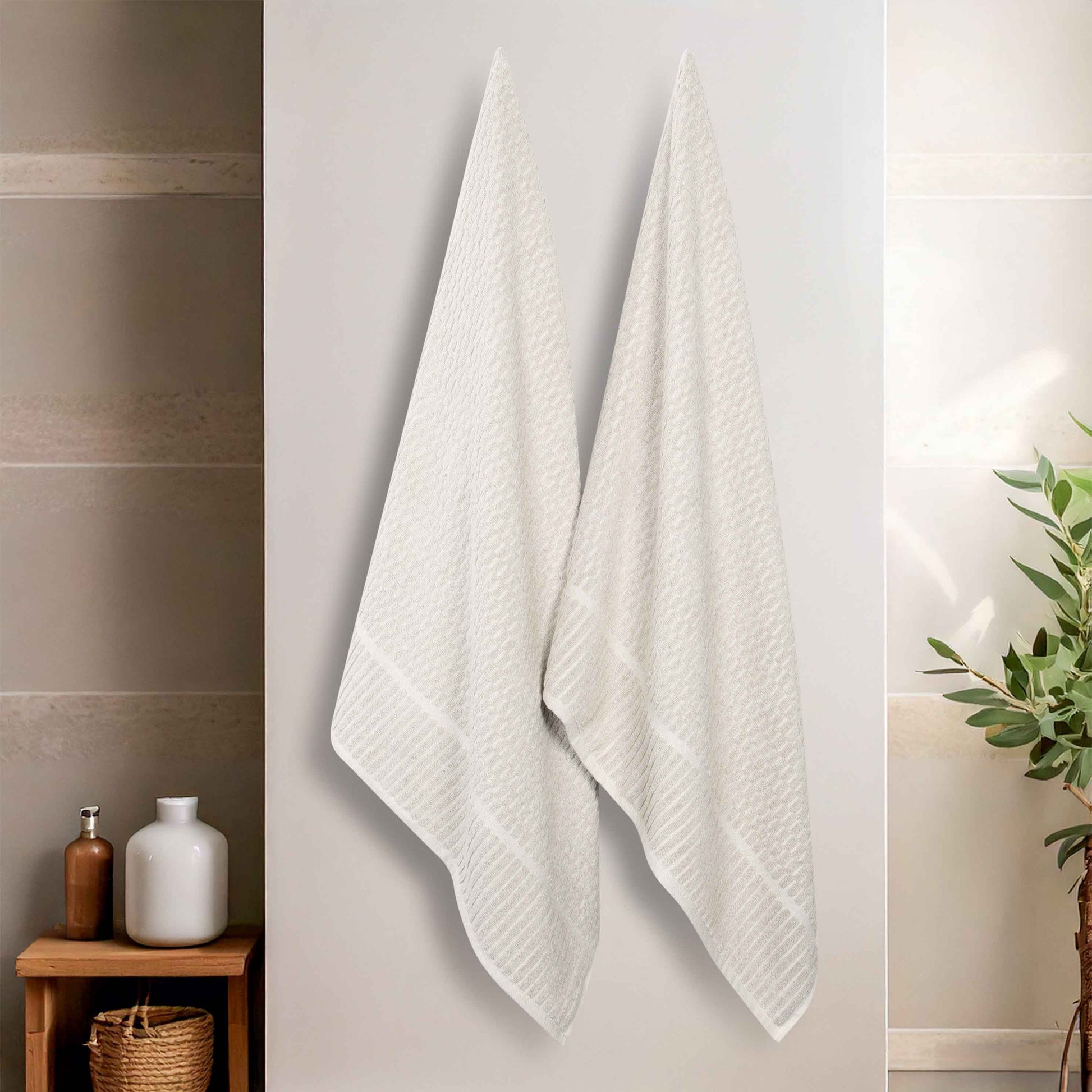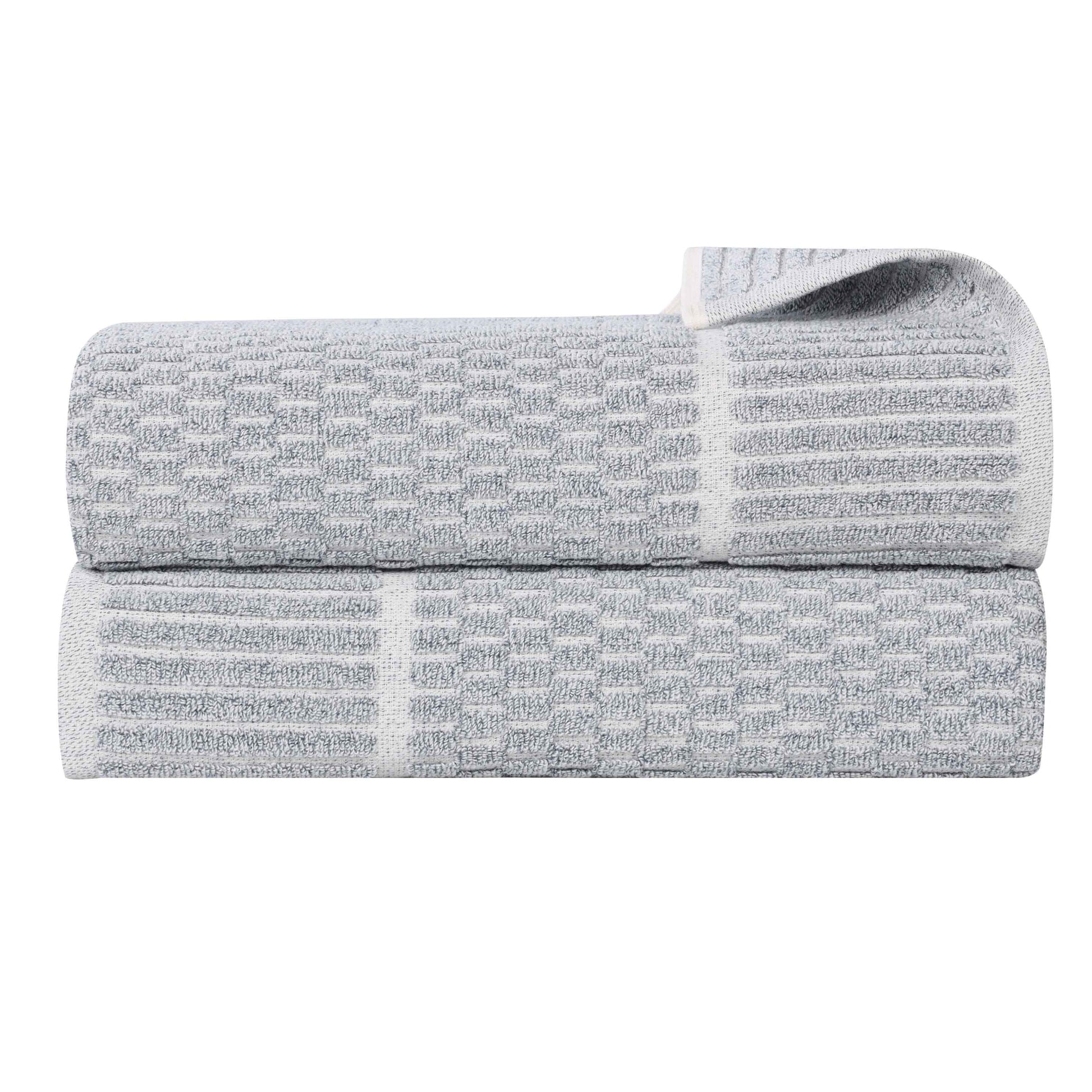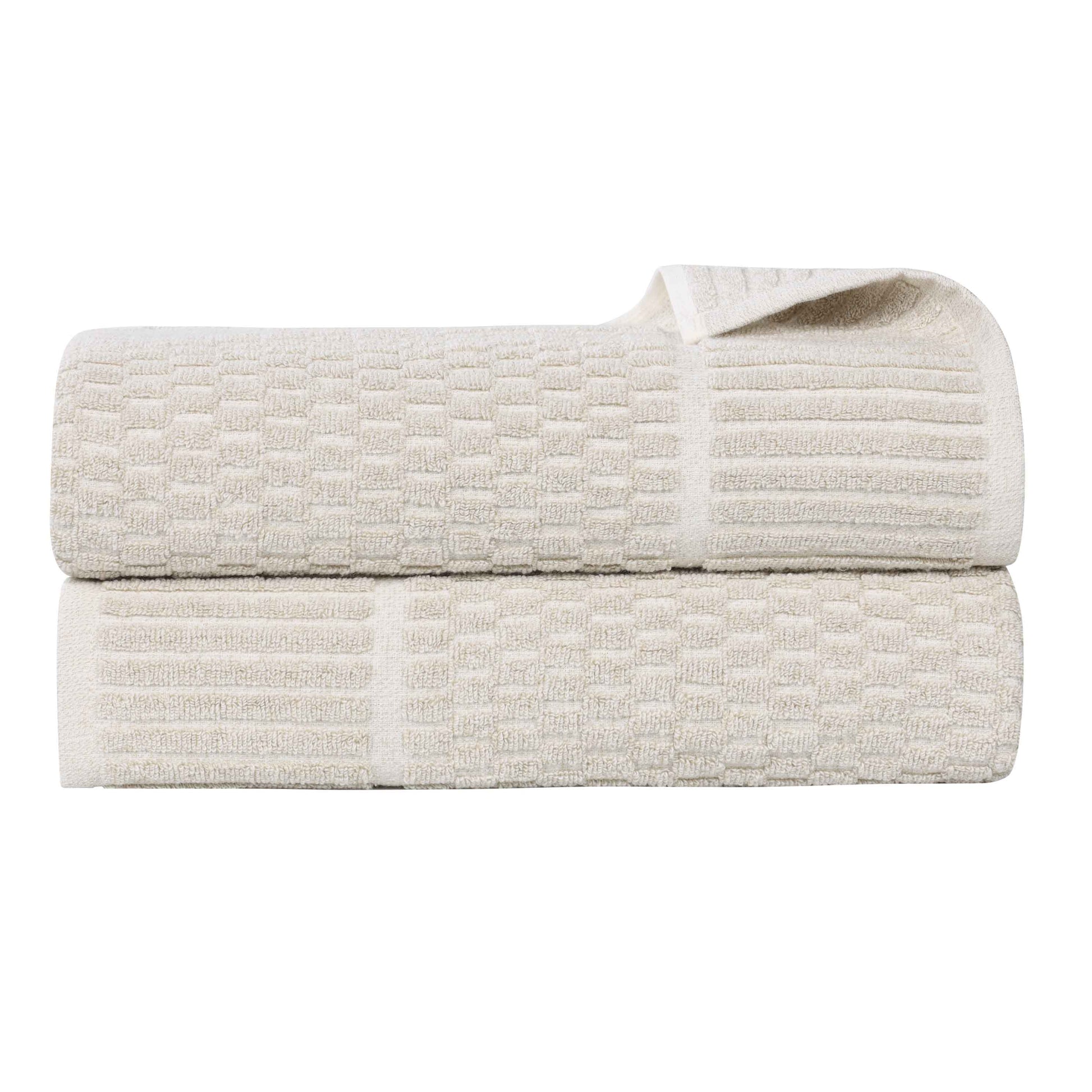 Juno Cotton Blend Textured Checkered Ribbed Border Bath Sheets, Set of 2