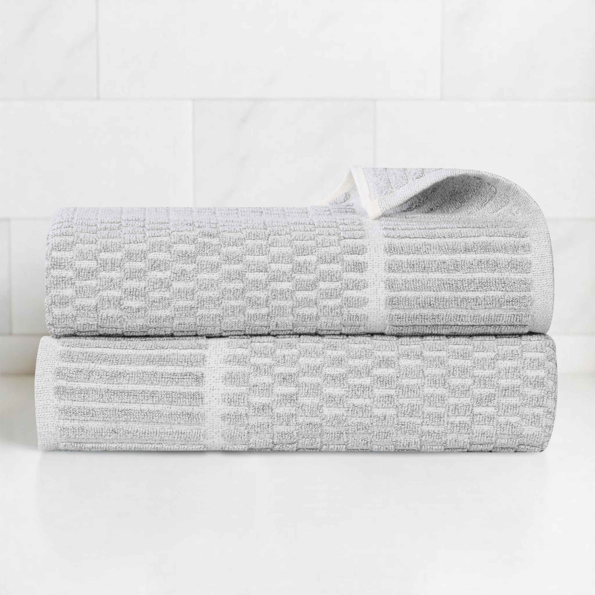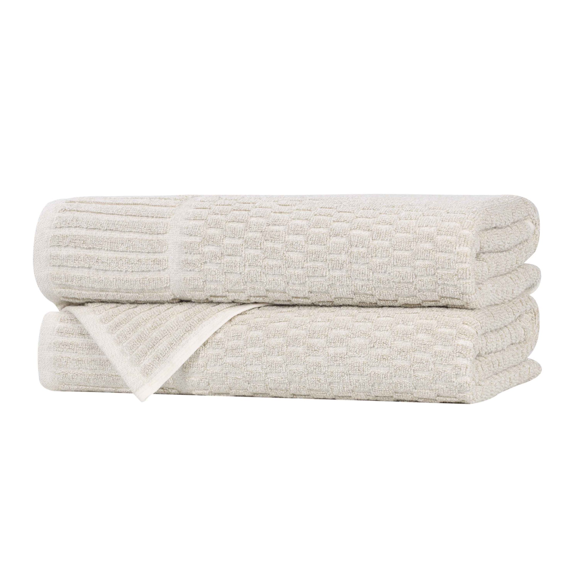 Cotton Blend Textured Checkered Bath Towel Set of 2