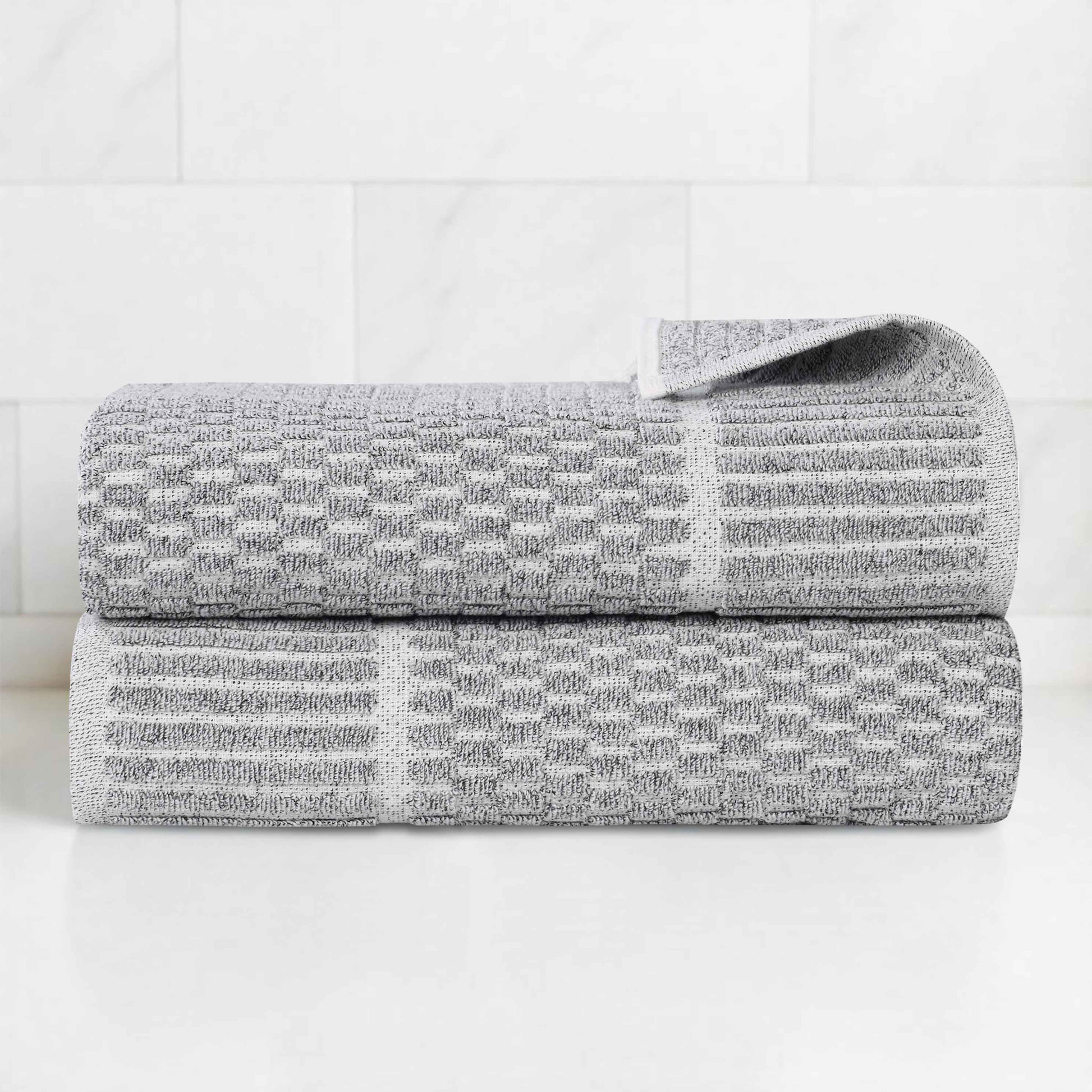 Upgrade your towel routine with the Cotton Blend Textured Checkered Bath Towel Set of 2.