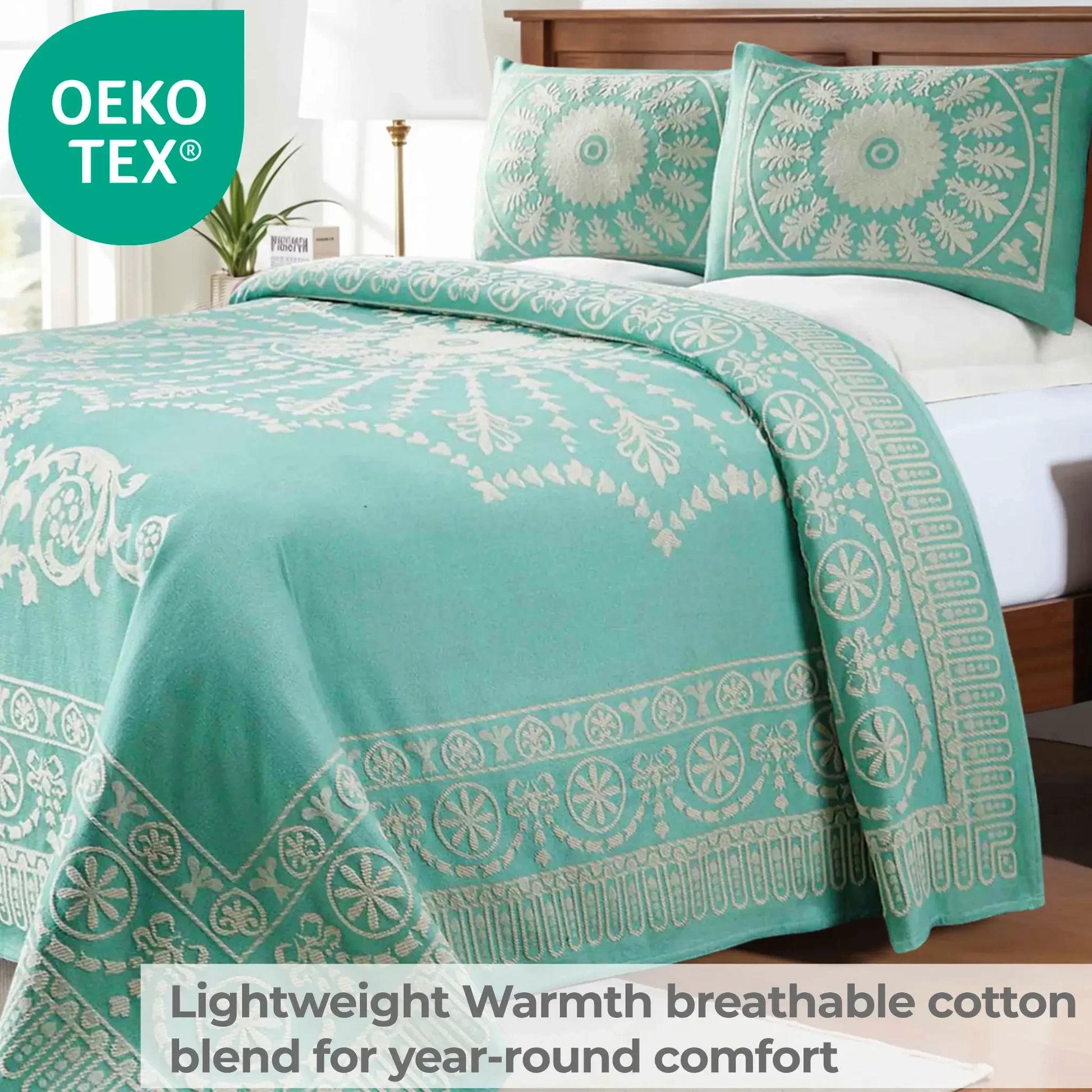 Kymbal Cotton Blend Woven Medallion Jacquard Bedspread Set