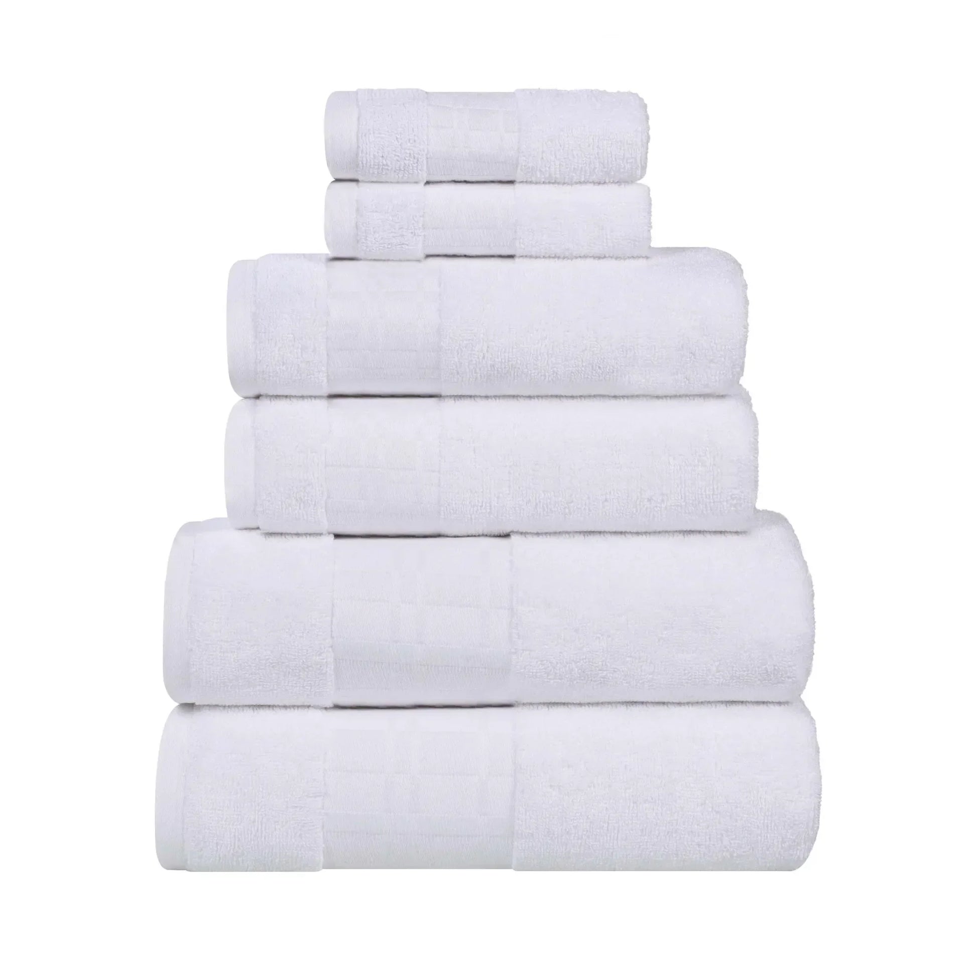 Luxurious and modern, our Larissa Cotton 6-Piece Assorted Towel Set brings beauty and exceptional softness to your contemporary bathroom. This classy towel set comes with two bath towels, two hand towels, and two face towels with an elegant geometric border that adds a fashionable style to your home. Made from ultra-soft cotton fibers, this set is highly-absorbent and smooth on the skin. Featuring a hanging loop for convenient drying, this bundle will pair perfectly with any traditional, modern or transitional decor styles.