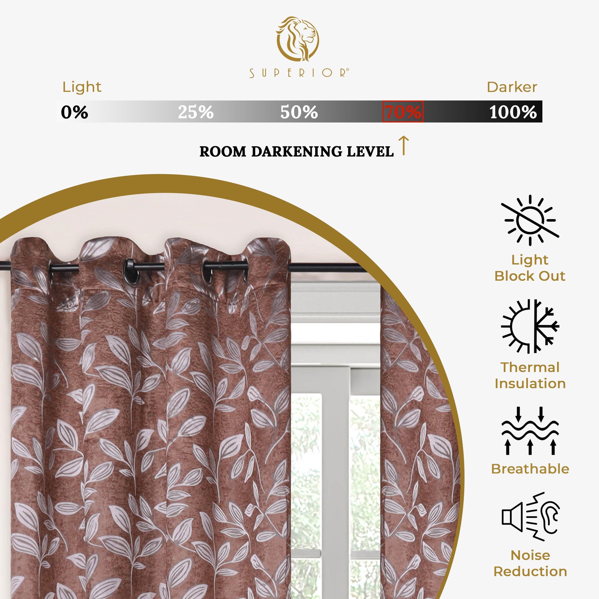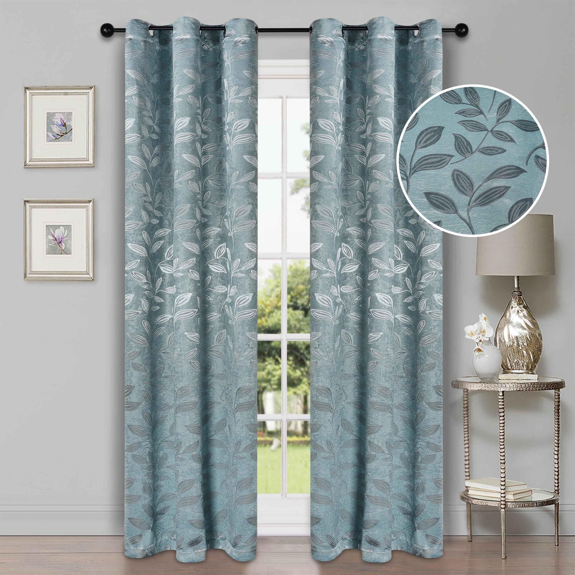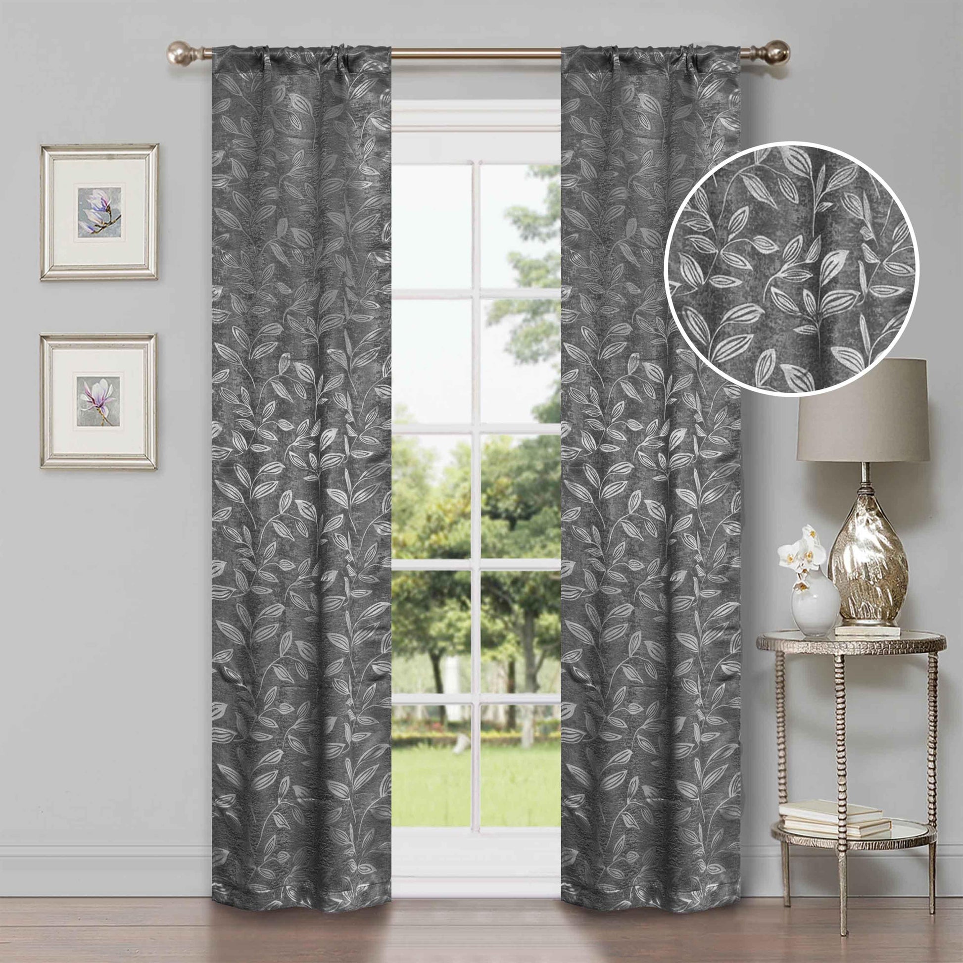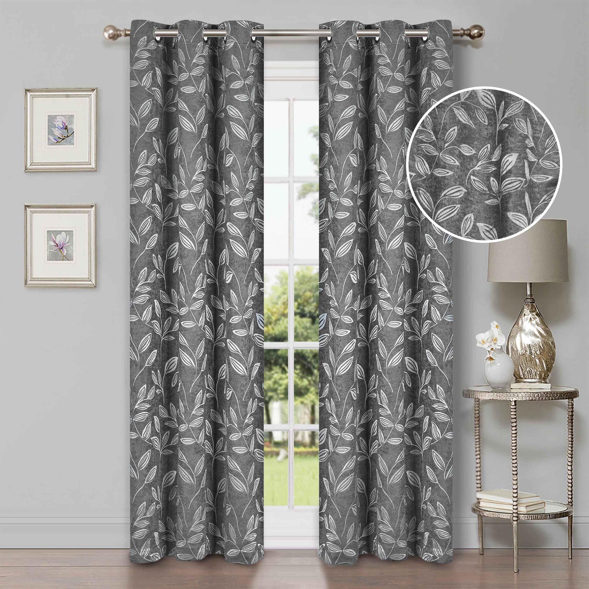 Leaves Machine Washable Room Darkening Blackout Curtains, Set of 2
