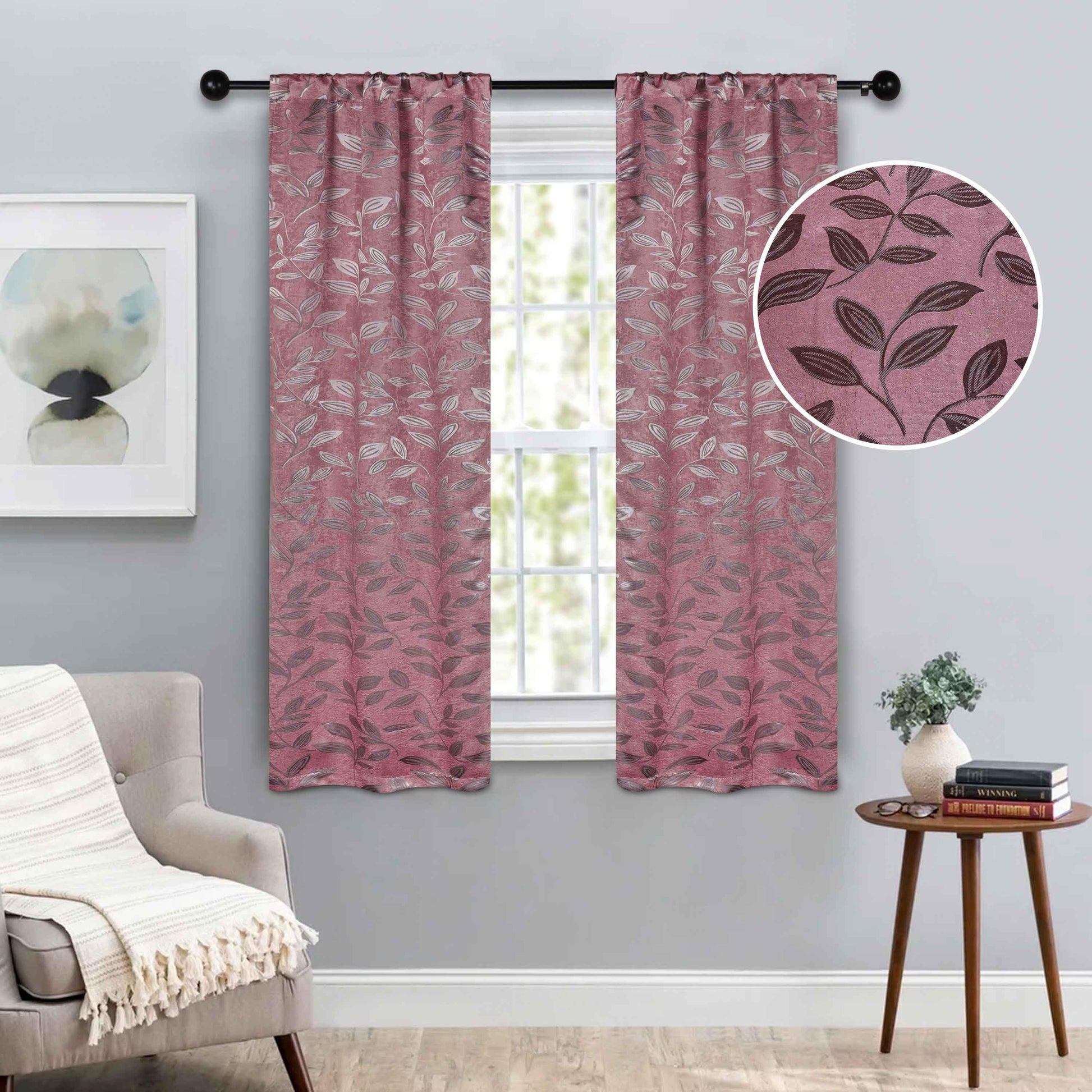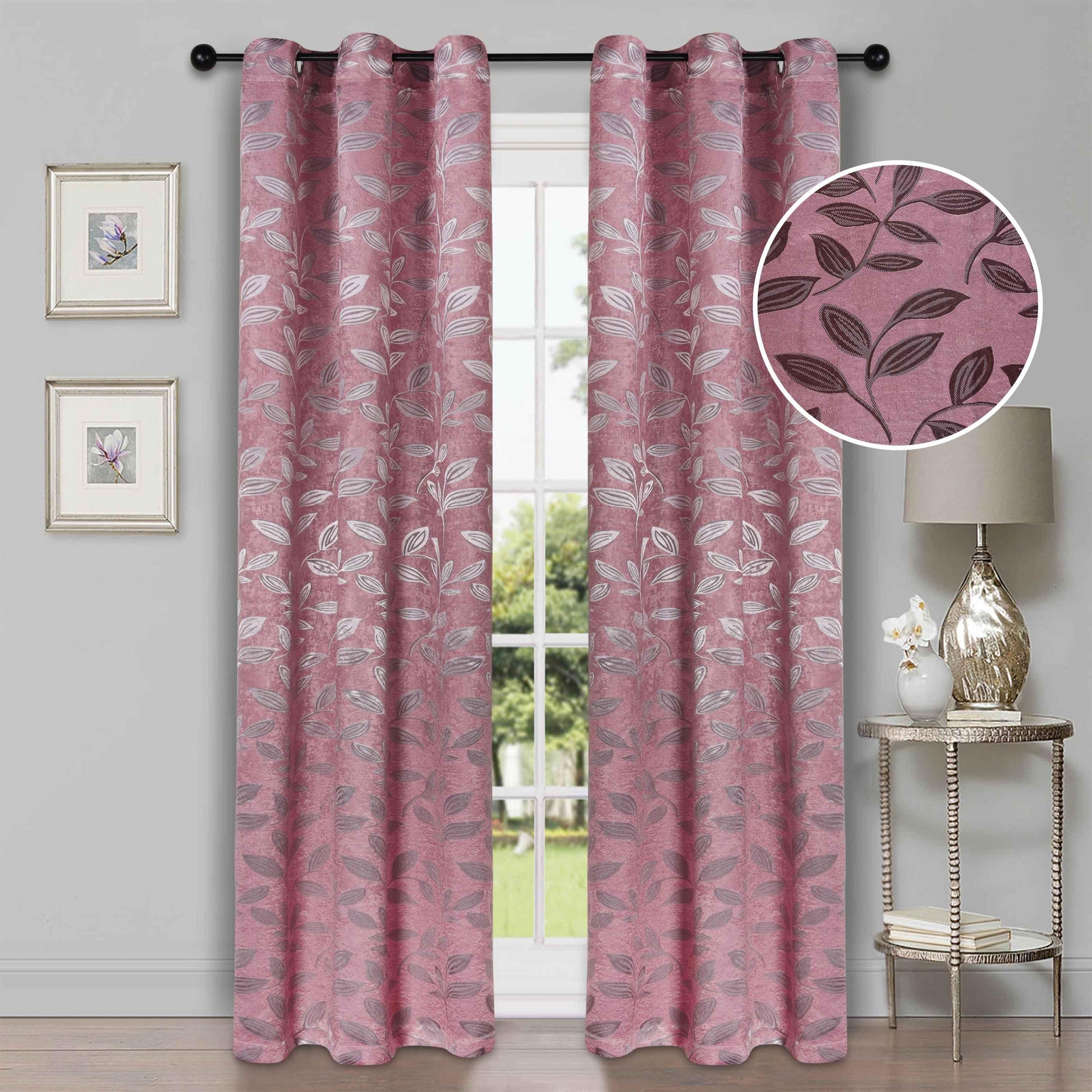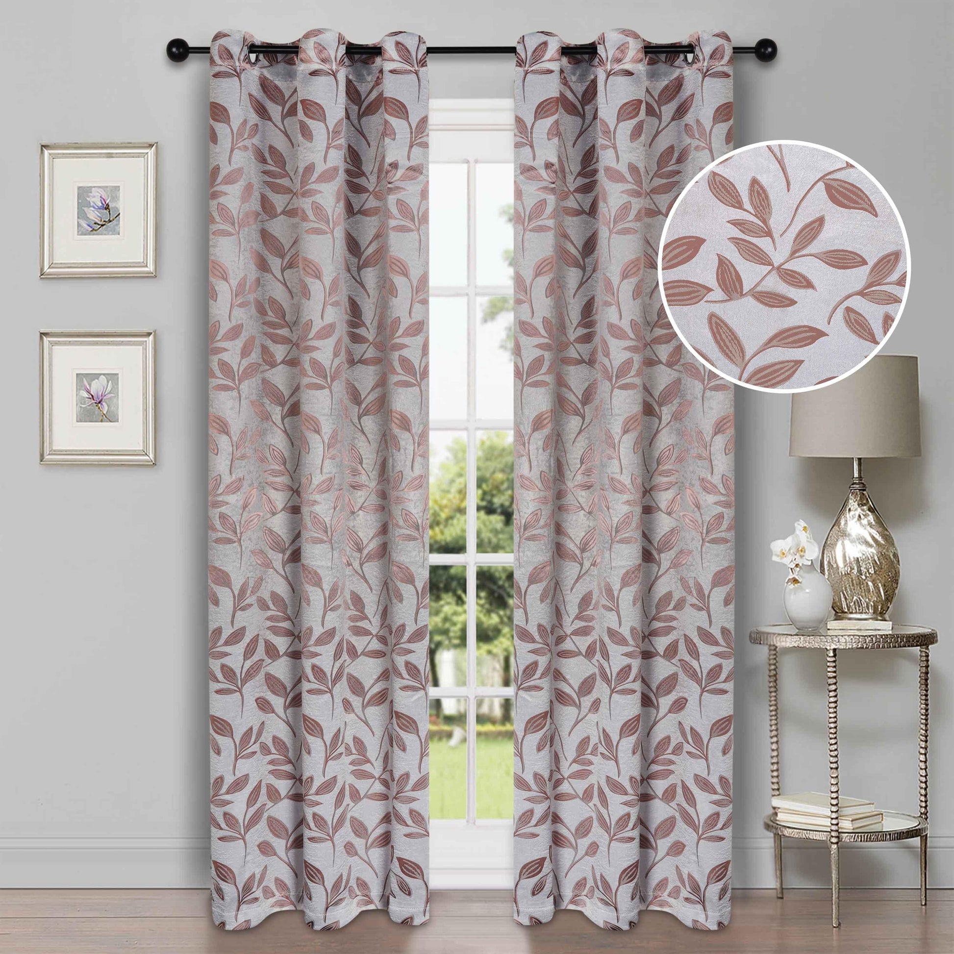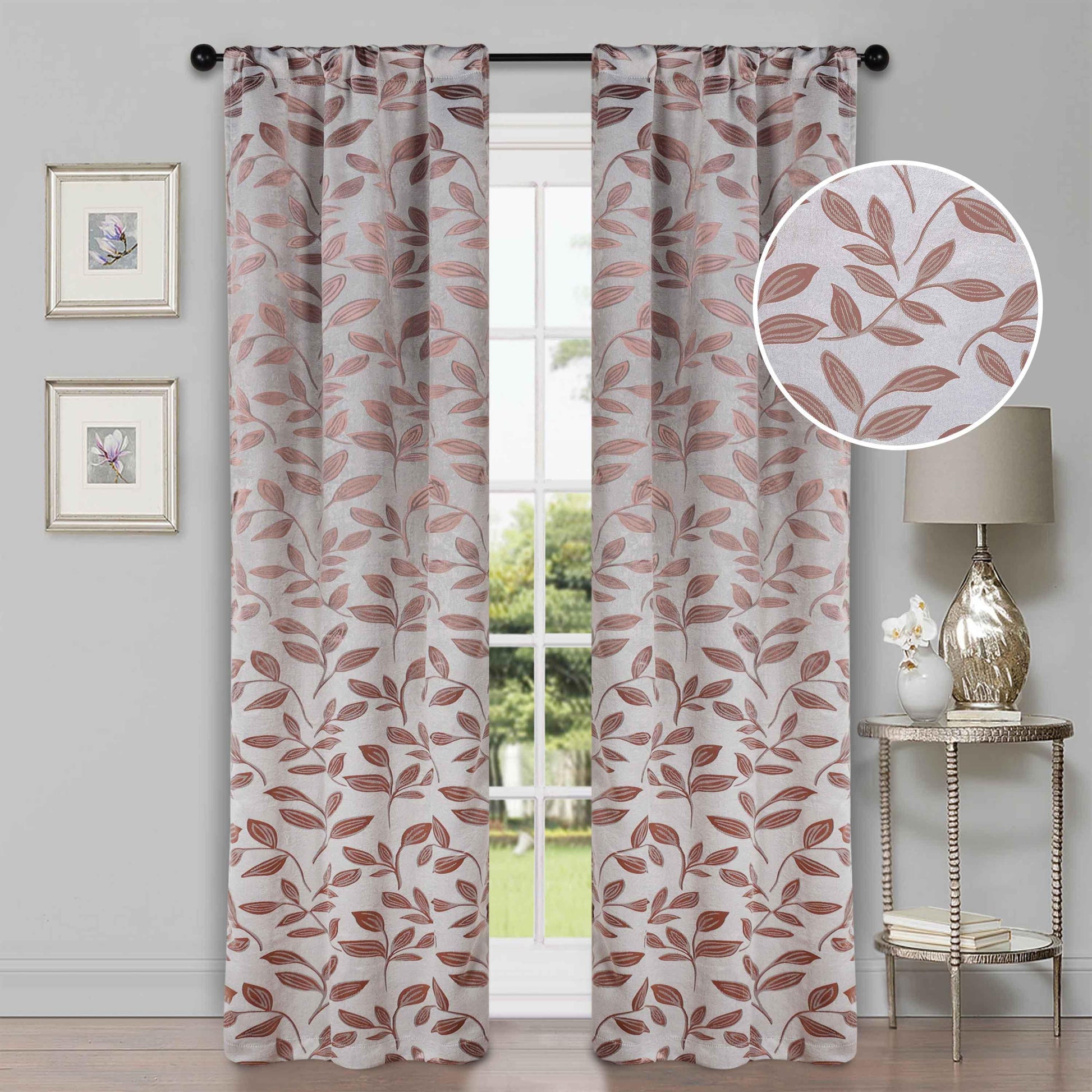 Leaves Machine Washable Room Darkening Blackout Curtains, Set of 2
