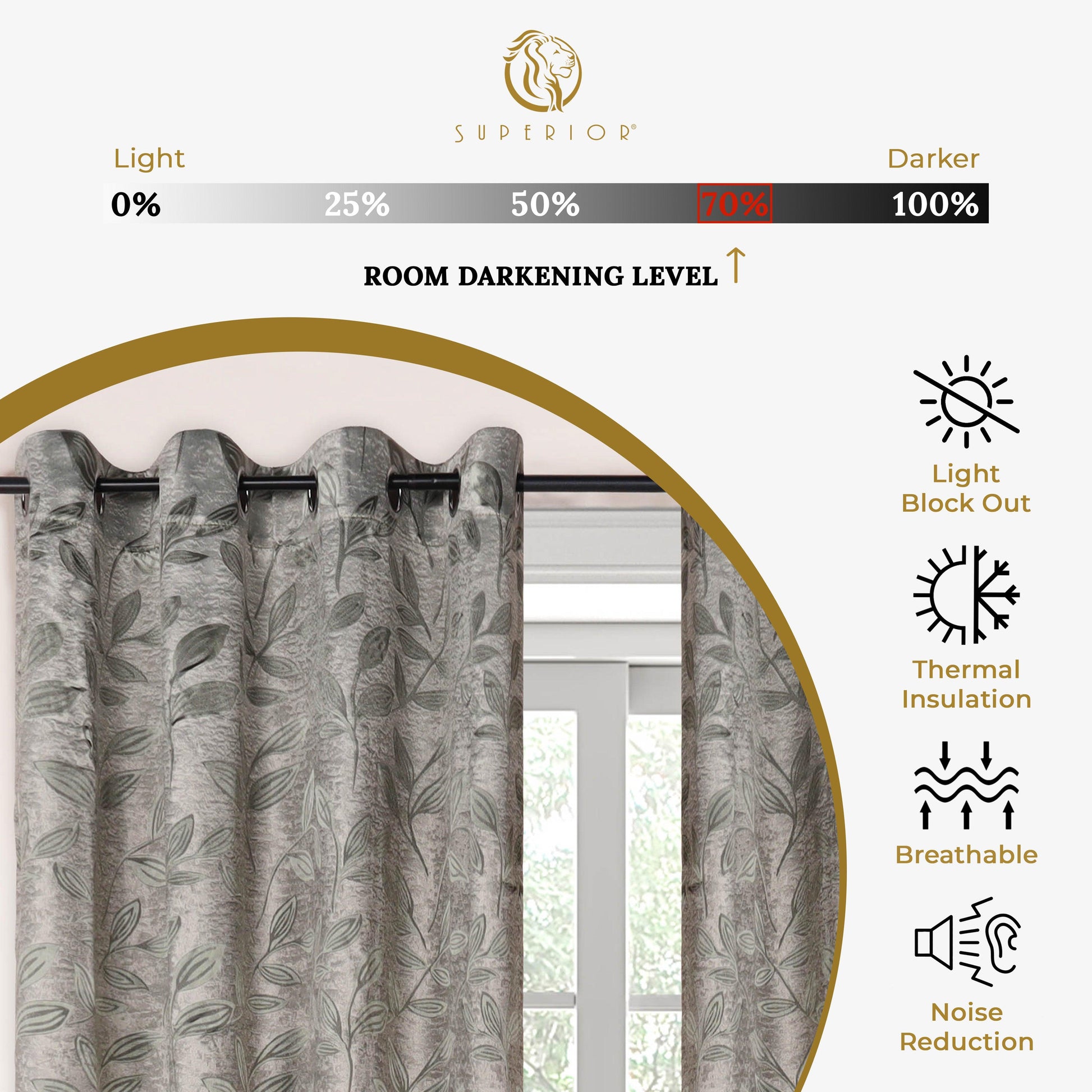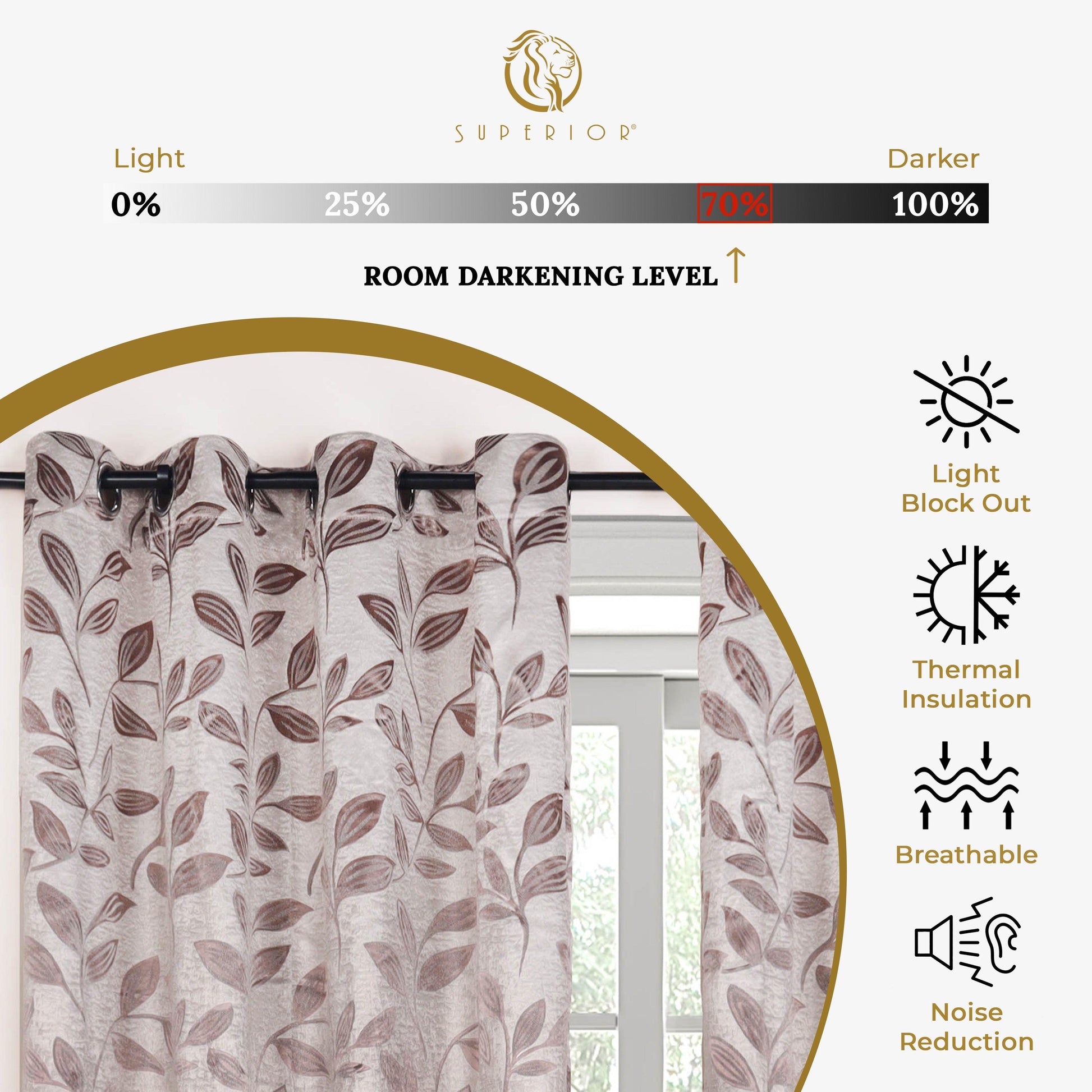 Stylish and highly practical, the Superior Leaves Modern Bohemian Blackout Curtain Set is the perfect addition to your home. The Polyester material is incredibly durable and naturally hypoallergenic and wrinkle-resistant. The rust-free grommet header or rod pocket (depending on size) makes these panels easy to install while giving them a modern flourish that will elevate the beauty of your home. These blackout curtains block up to 70% of sunlight and UV rays and are thermal insulating. The stunning botanical accent of these curtains will suit Modern, Bohemian, Vintage, or Casual homes.