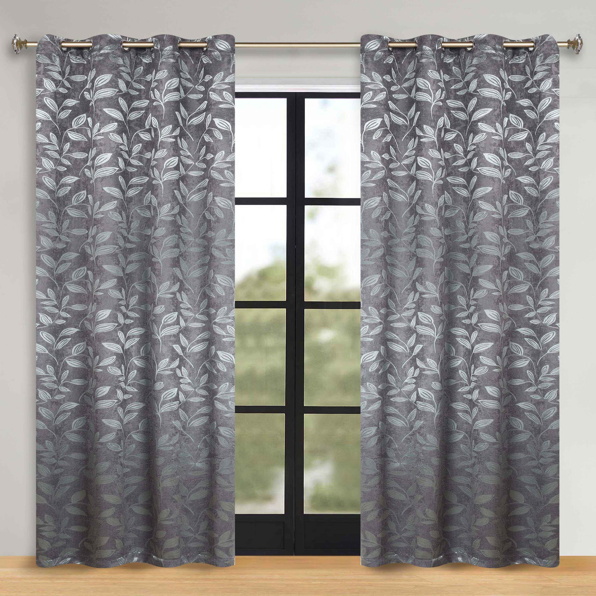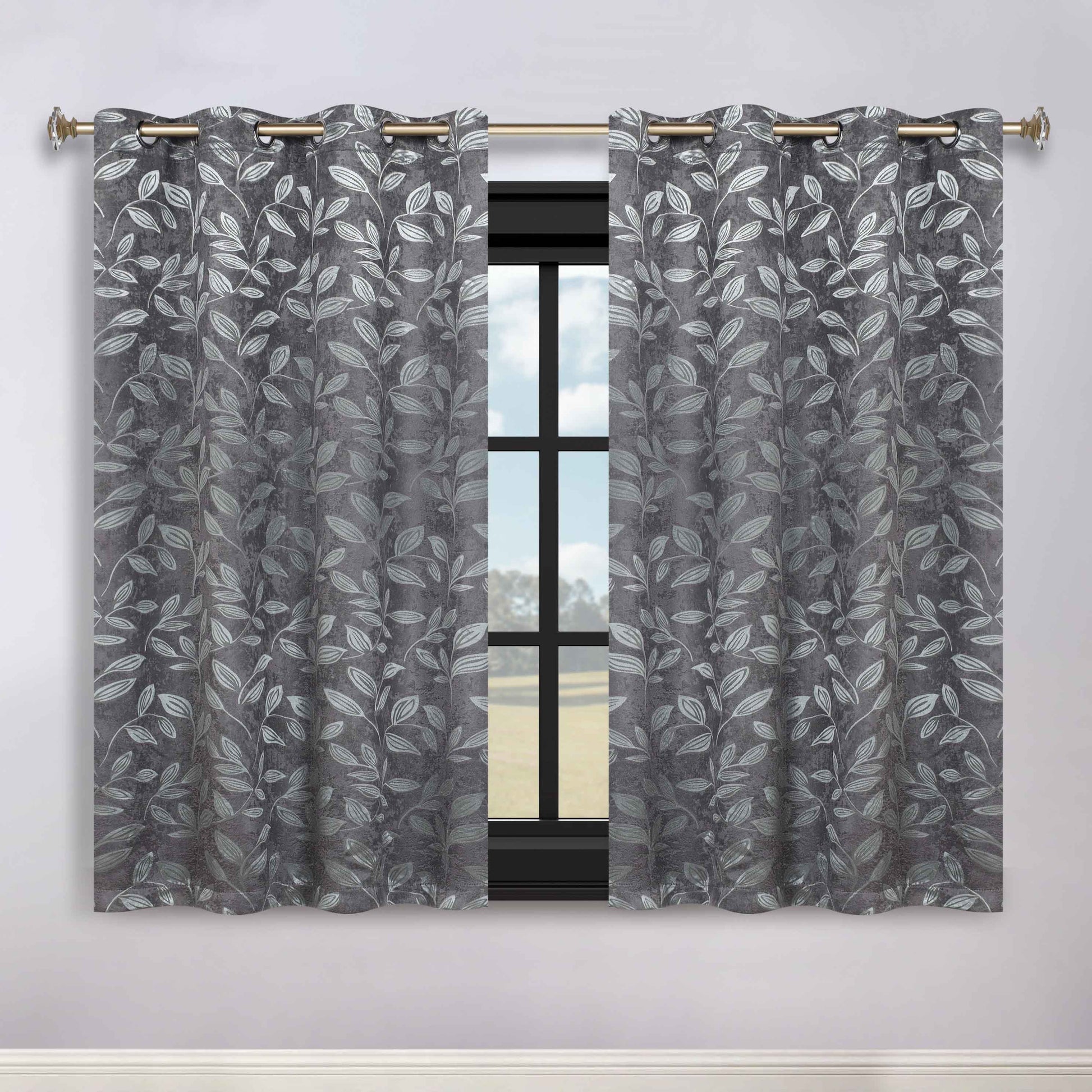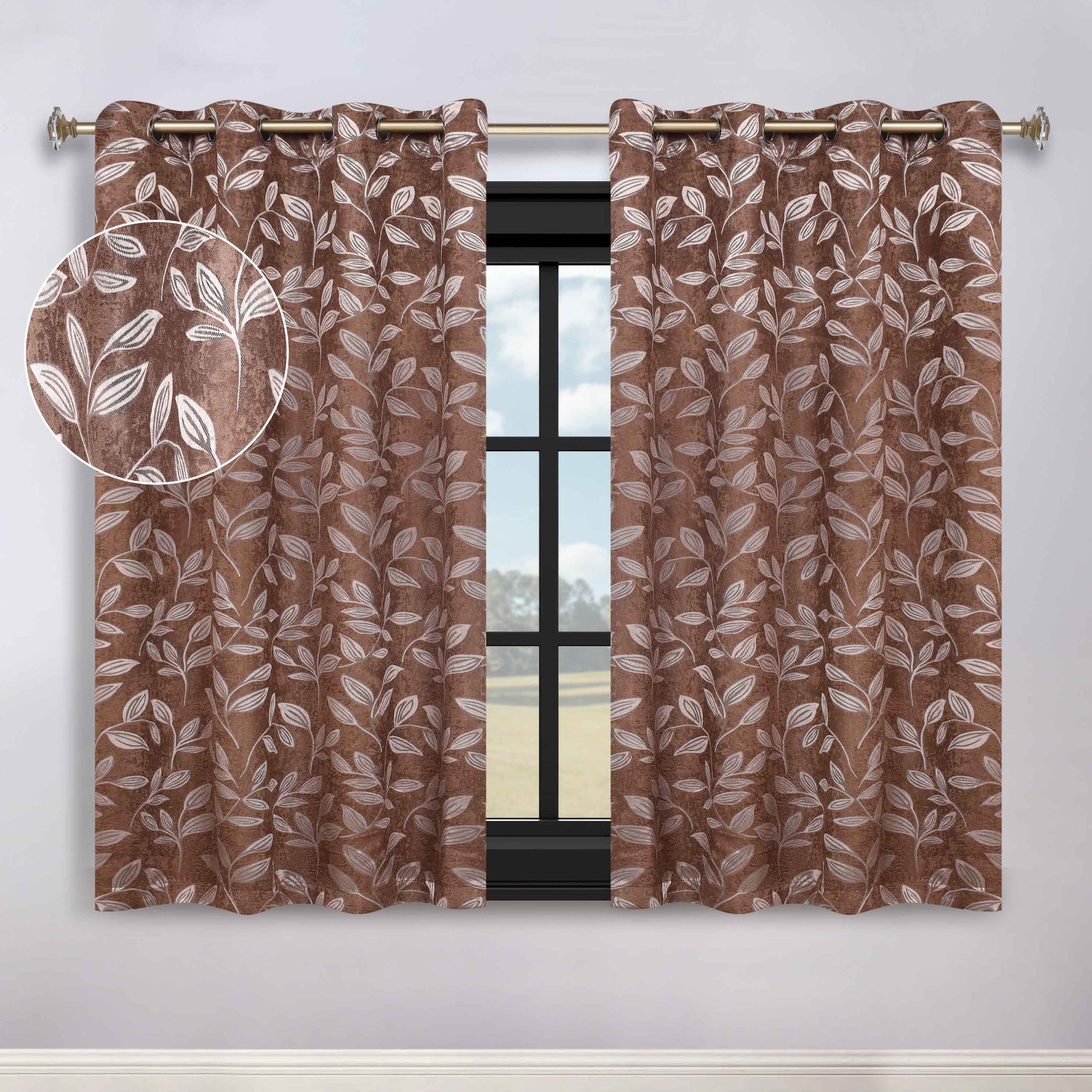 Leaves Room Darkening Washable Blackout Curtain Panels, Set of 2