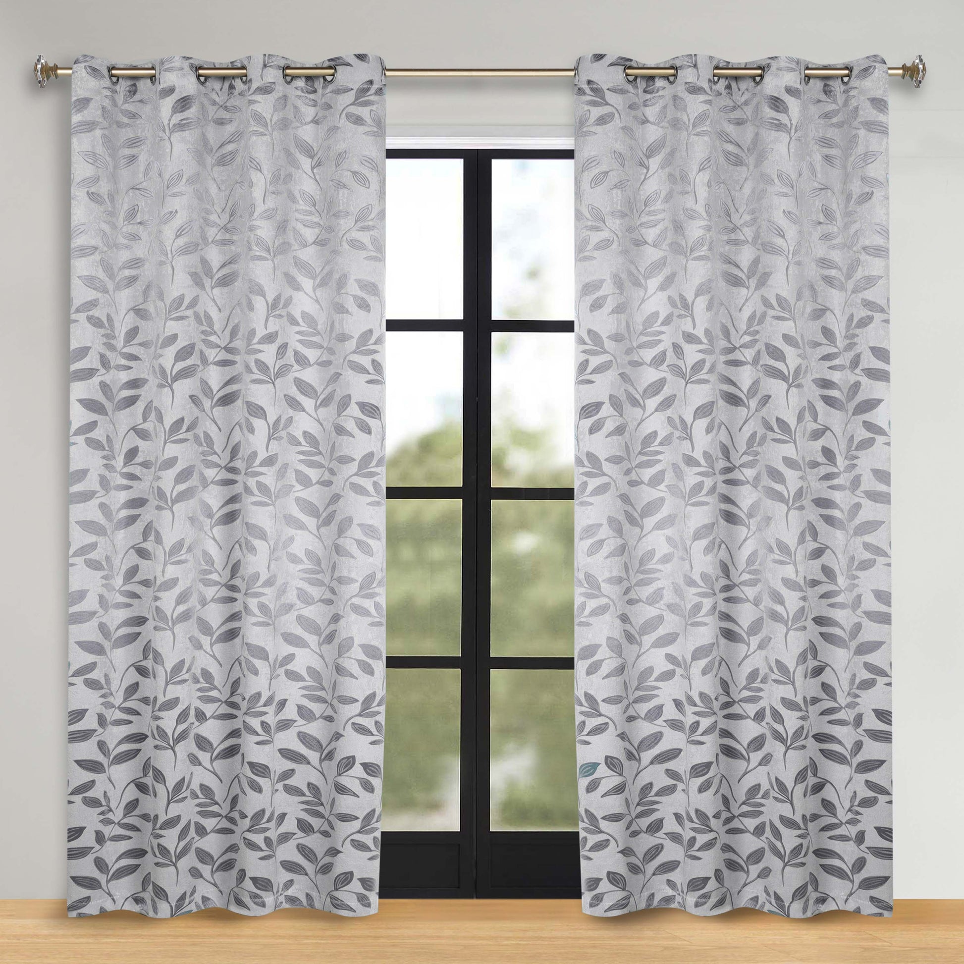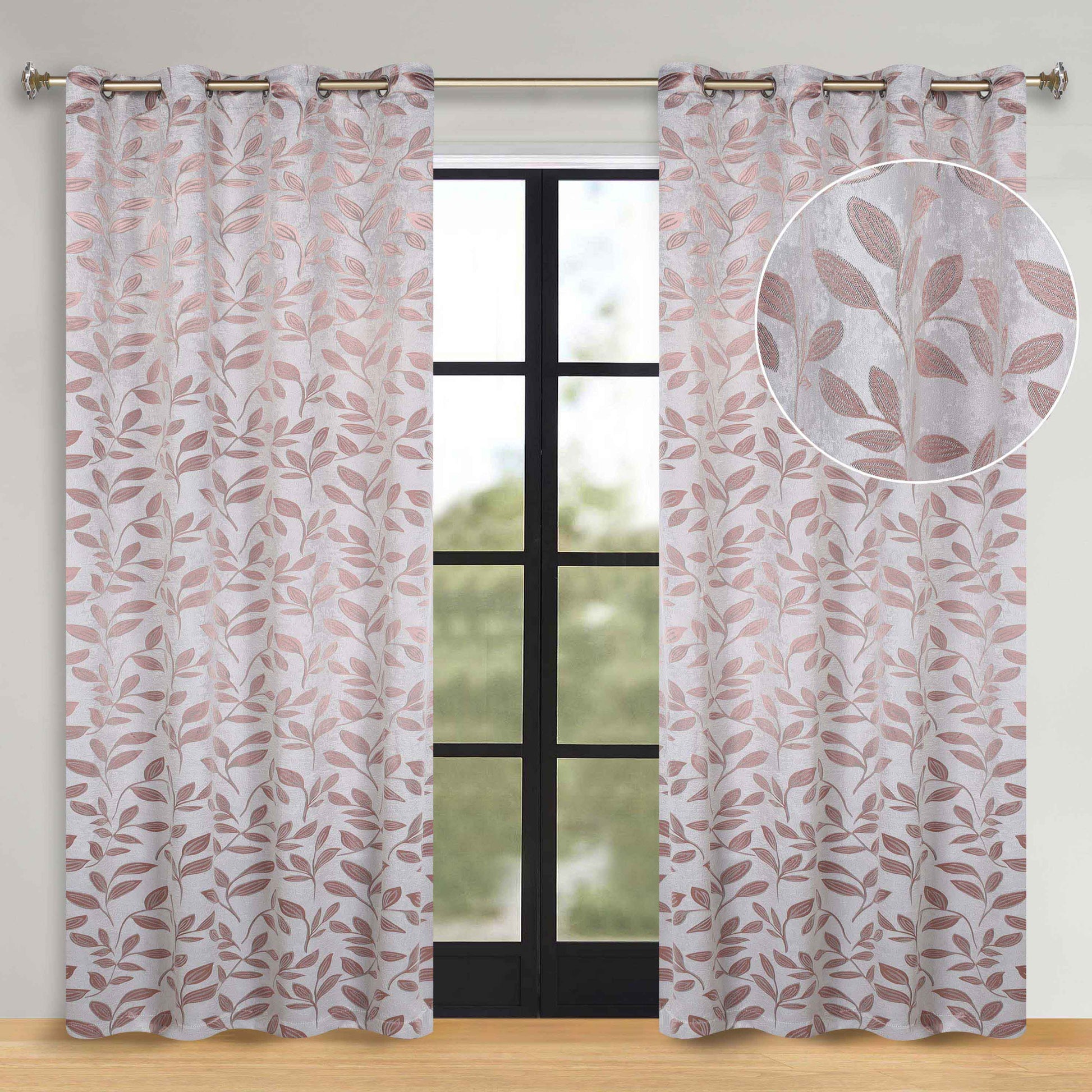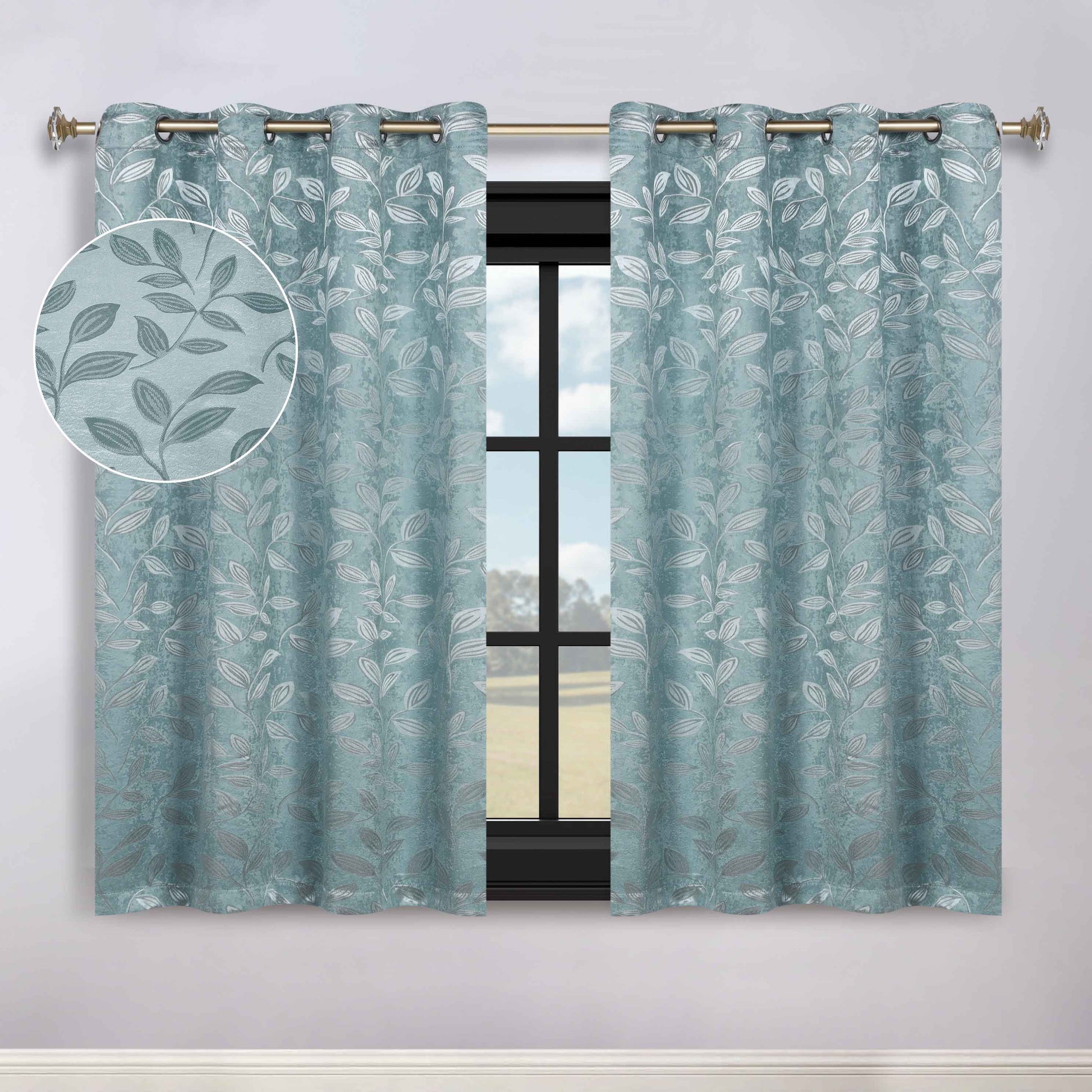 Leaves Room Darkening Washable Blackout Curtain Panels, Set of 2