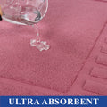 - Additional Features: Heavy thickness for extra absorbency and comfort. Luxuriously dense material helps protect your floors and keep your feet dry. Tie together any shower space, master bath, powder room or guest bathroom décor.