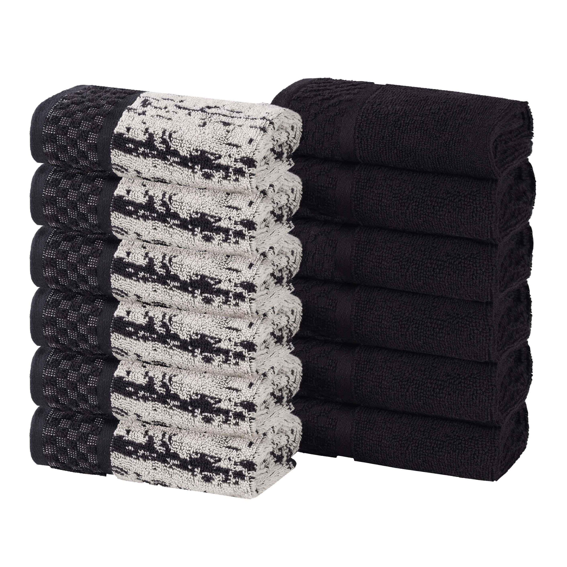 Lodie Cotton Jacquard Solid and Two-Toned Face Towel Washcloth Set of 12