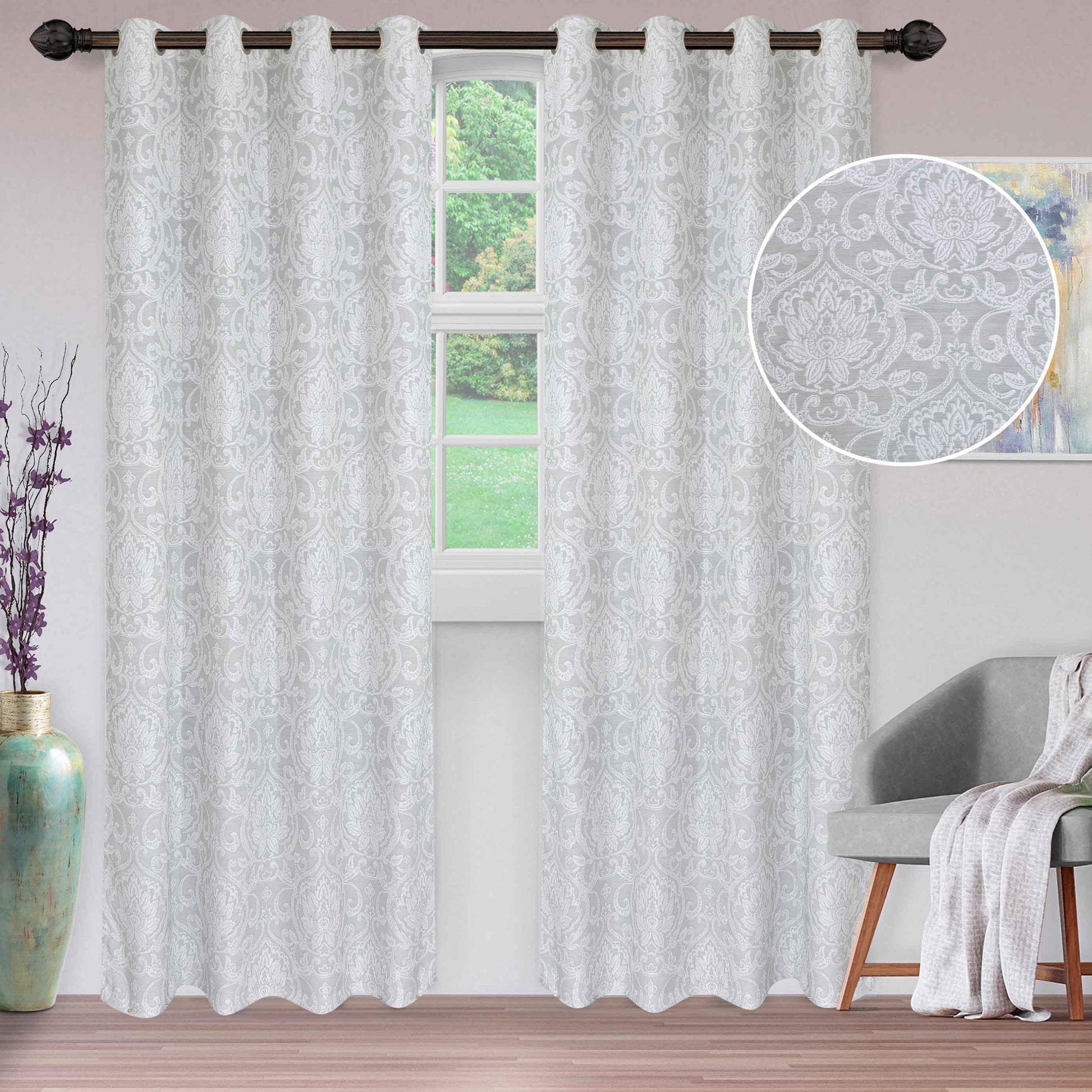 Lotus Jacquard Floral Damask Semi Sheer Curtain Panel Set