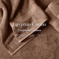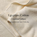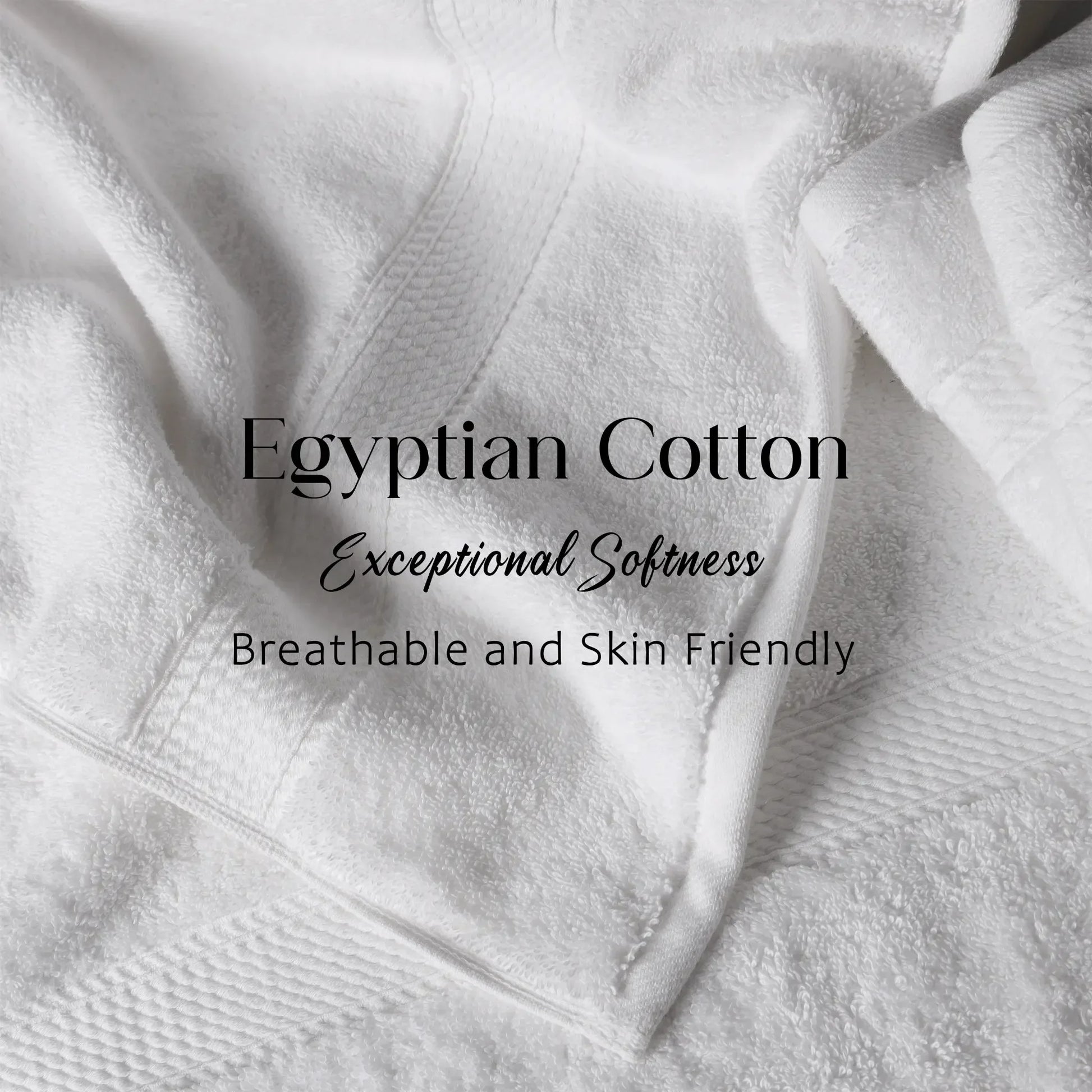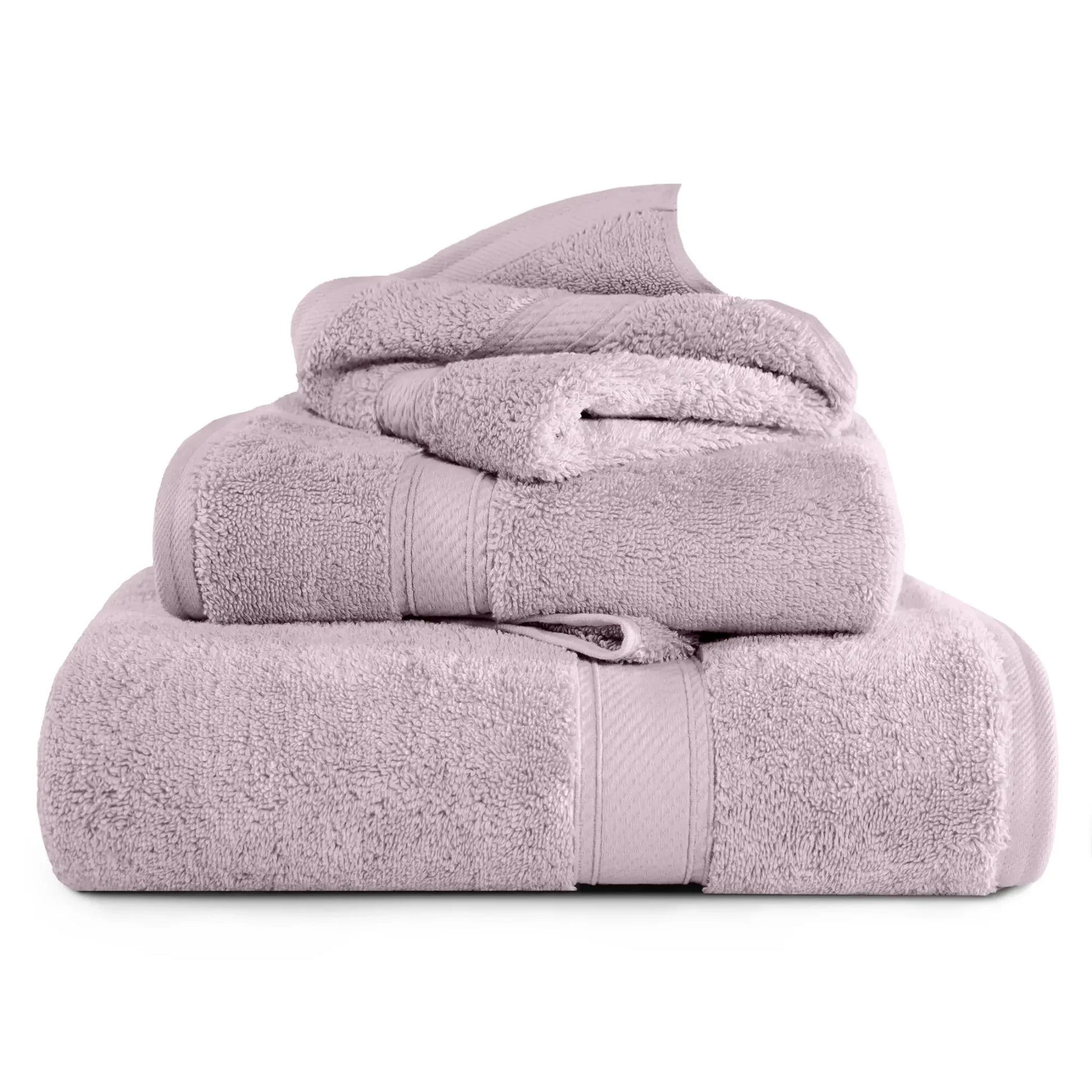 Made from heavyweight Egyptian cotton, this bath and hand towel set includes one washcloth, one thick hand towel, and one soft, absorbent bath towel.