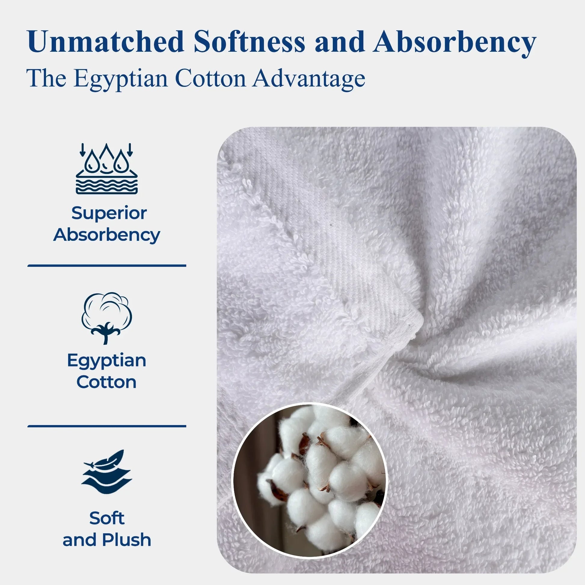 - Plush Egyptian Cotton Bath Towels: Features a Thick, Heavyweight Pile for Maximum Absorbency and A Truly Spa-Like Softness.