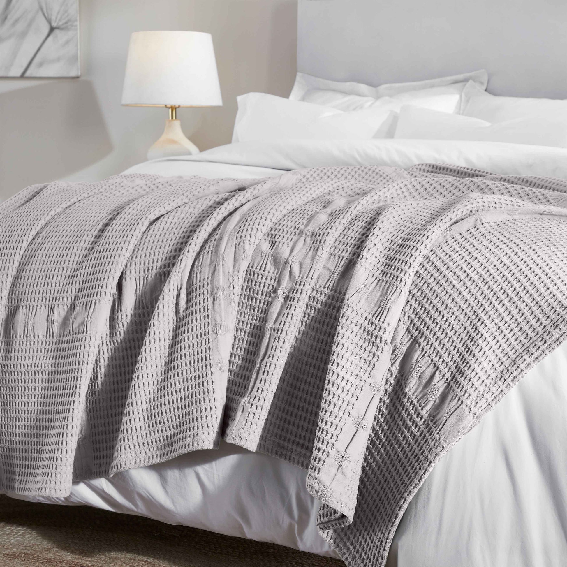 Elevate the style and comfort of your living space with our Mai Waffle Weave Cotton Blanket. This luxuriously soft cotton blanket displays a waffle, honeycomb design that is perfect for everyday use. These blankets are versatile and durable to keep you wrapped in comfort whenever you need it the most. Available in a variety of sizes and soothing color options, update your home decor with this timeless, modern blanket. Perfectly placed on any bed or sofa, this beautiful blanket is warm enough to use on its own or can be used as a layering accent.