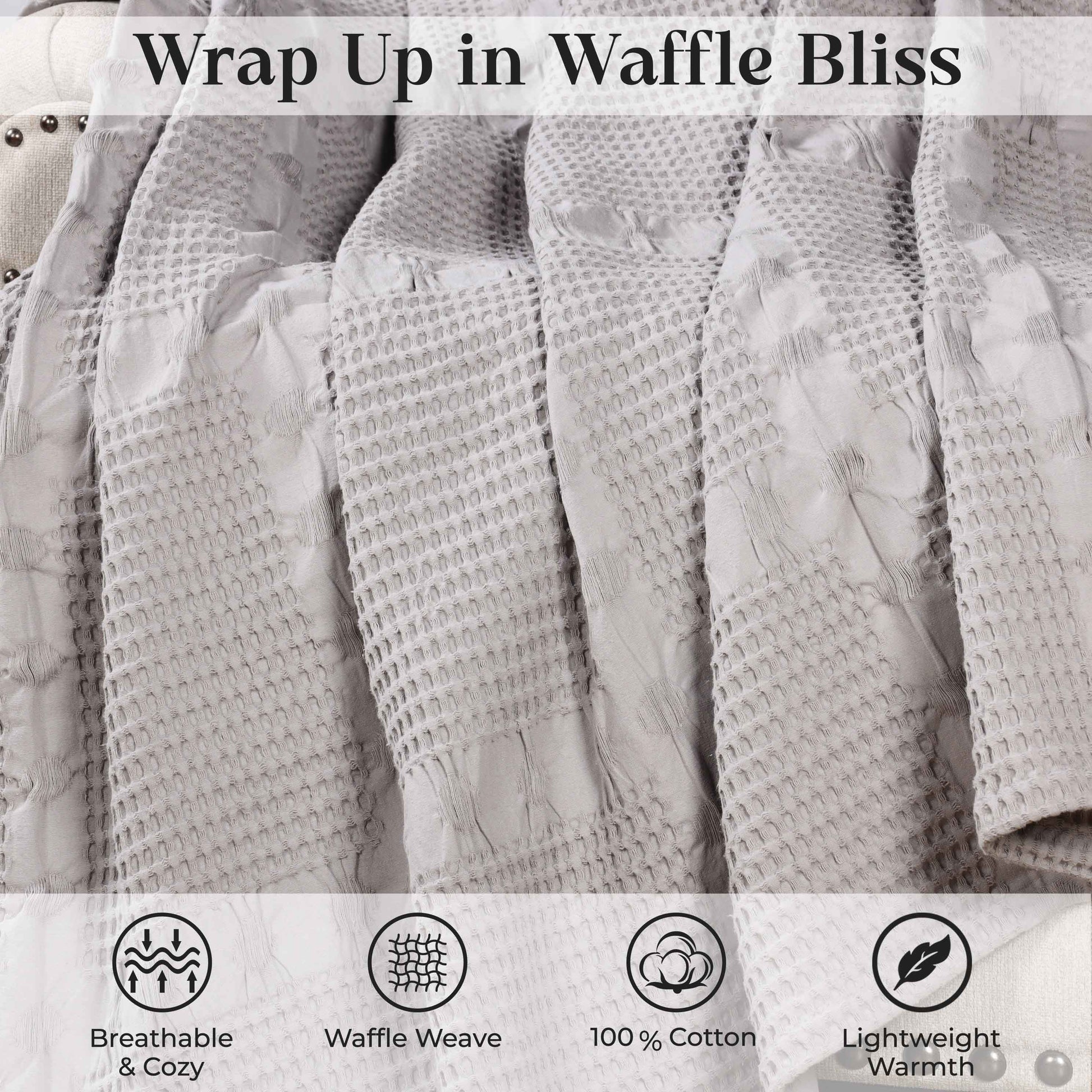 - Additional Features: Waffle weave boasts refined texture. Medium weight for a comfy and breathable wrap. Self-binding edges and mitered corners for added durability. Perfect for master bedroom, guest room, kids' room, sofa or as a decorative accent on home furnishings.