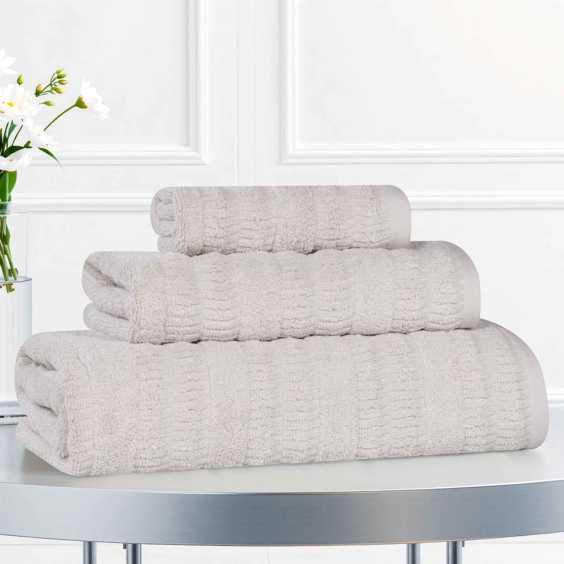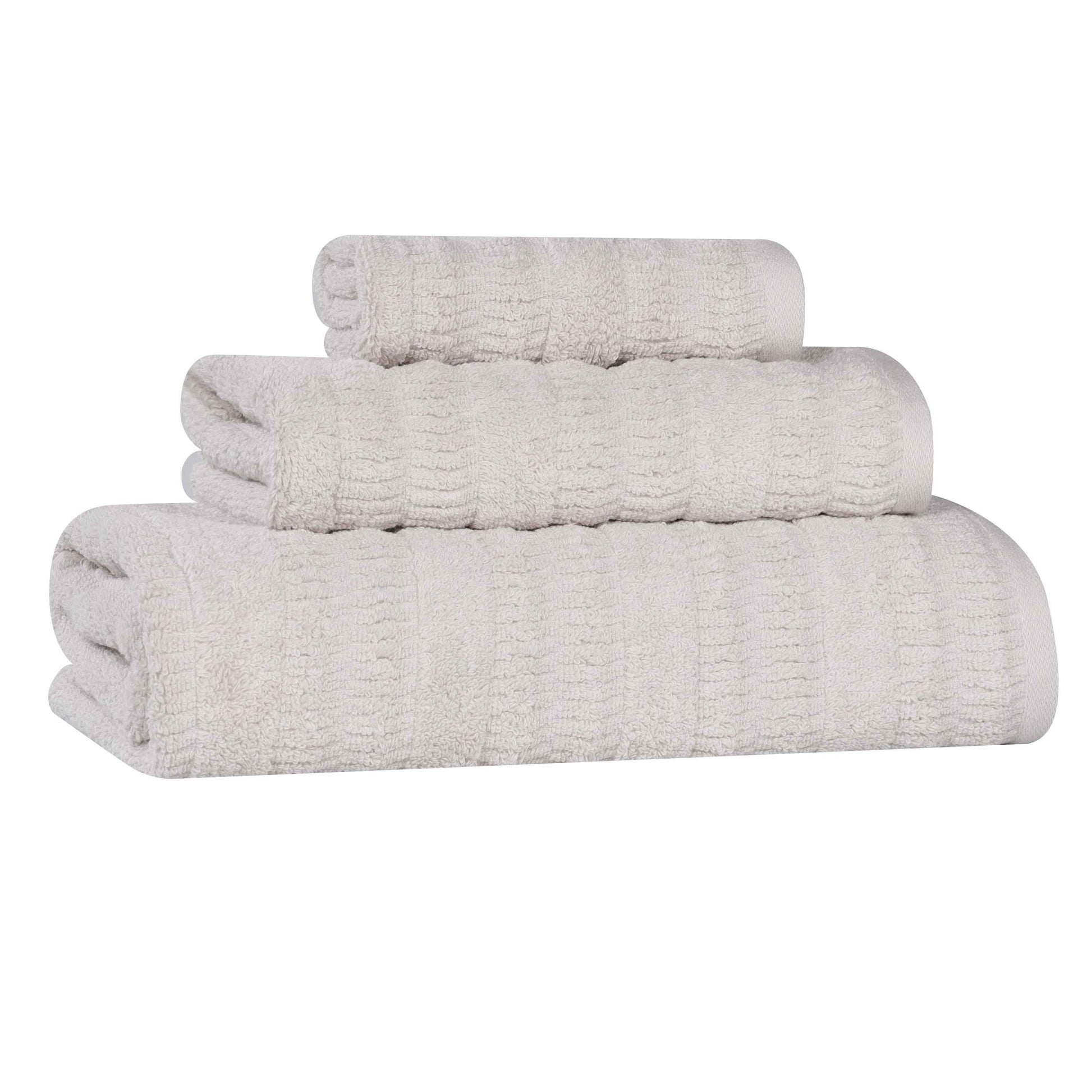 Indulge in the ultimate spa-like experience within the comfort of your home with our Mika Smart Twist Viscose Cotton Blend 3 Piece Towel Set. Meticulously crafted from viscose cotton blend with a low-twist technique, these towels envelop you in a silky-soft embrace, while their exceptional absorbency ensures a quick and comfortable dry. The unique ribbed design, featuring high and low textured lines, transforms your everyday routine into a moment of tranquil escape. Available in a curated selection of colors, these durable, quick-drying towels effortlessly blend comfort, style, and sophistication.