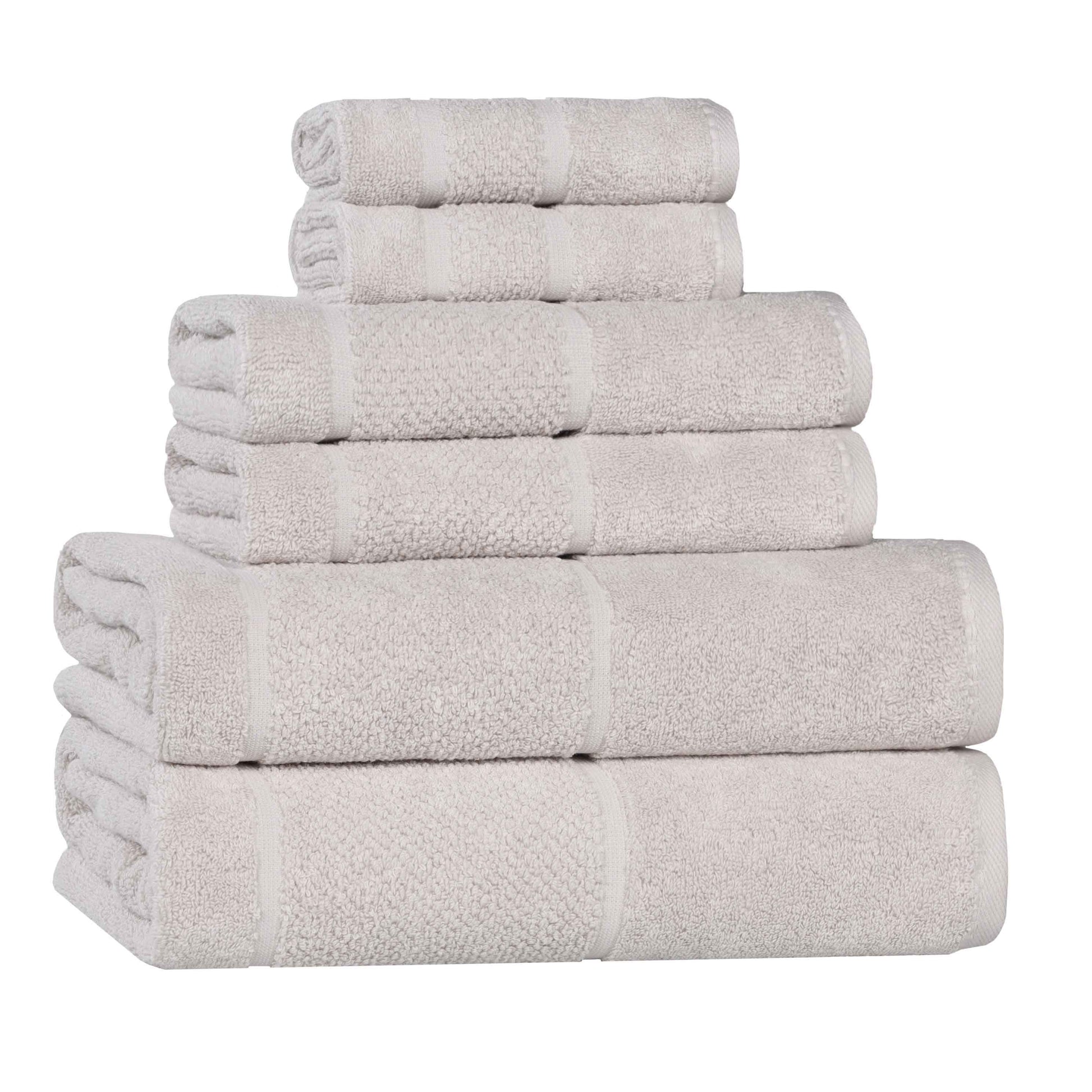 This complete collection is one of the best towel sets for bathroom updates, featuring a timeless solid design and a refined, thick border. As a comprehensive bath towel and washcloth set, this bath towel bundle provides everything you need to create an elegant and inviting sanctuary in your home.