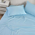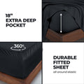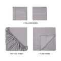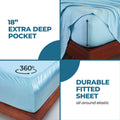The set includes one flat sheet, one fitted sheet, and two pillowcases, all designed with an extra deep pocket elastic fitted sheet that accommodates mattresses from 18 to 21 inches thick for a flawless fit.