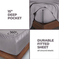 The modal fitted sheet is fully elasticized and designed to fit mattresses up to 18 inches thick, providing a sleek and tailored look without bunching or slipping. Its single-ply construction enhances durability while maintaining exceptional softness, ensuring your sheets stay smooth and beautiful wash after wash.