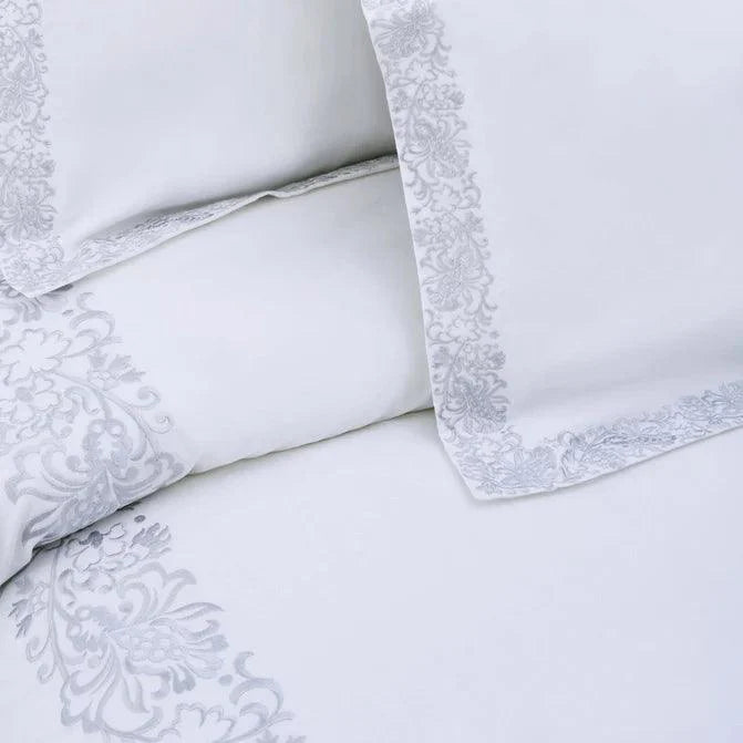 The 100% Cotton Moon Lawn Embroidered Duvet Cover Set is an embroidered Egyptian cotton duvet cover set that delivers luminous elegance, long-lasting comfort, and exquisite craftsmanship.