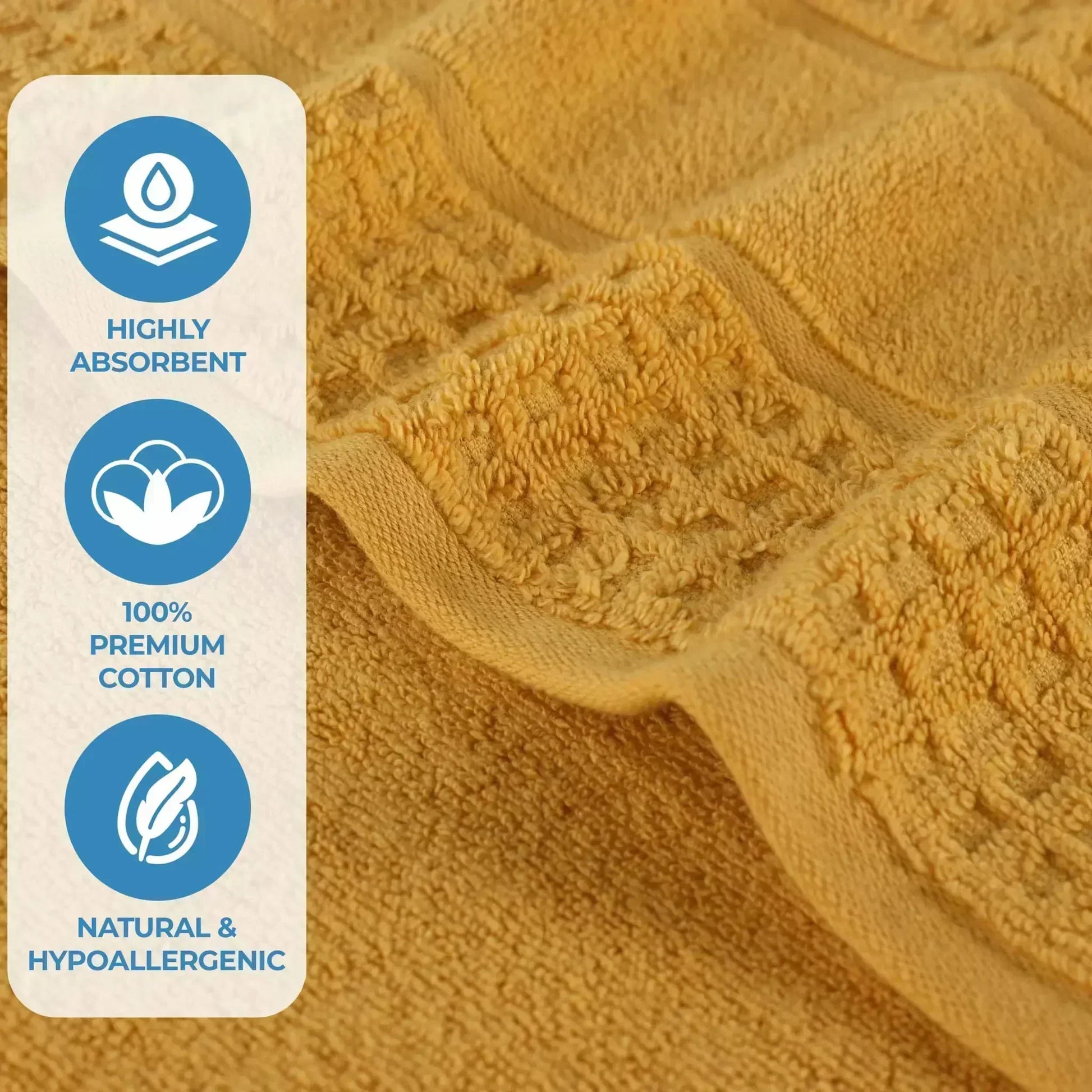 Indulge in exquisite relaxation and pamper yourself with our Napa 8 Piece Towel Set. These naturally soft cotton towels are crafted with a zero twist technique for a more absorbent and luxurious quality towel. Displaying a textured waffle honeycomb border, bring unique style to you guest or master bathroom with this set of bathroom essentials. Each towel is finished with secure hemmed edges to avoid fraying and a durable single-ply to withstand countless washes. Featuring a hanging loop on each piece, enjoy both convenience and comfort with this versatile set.