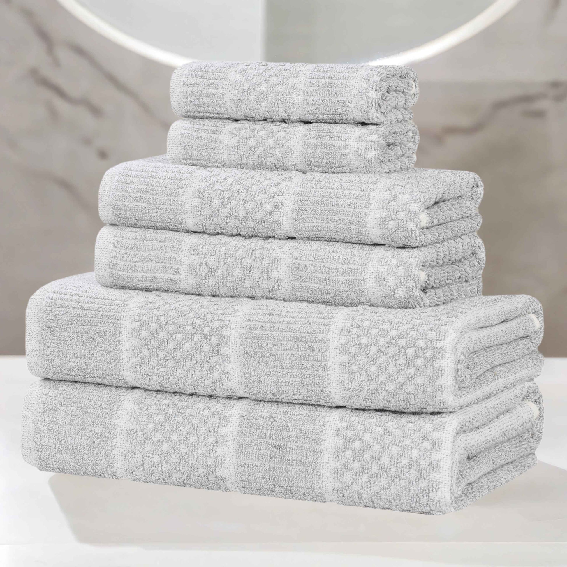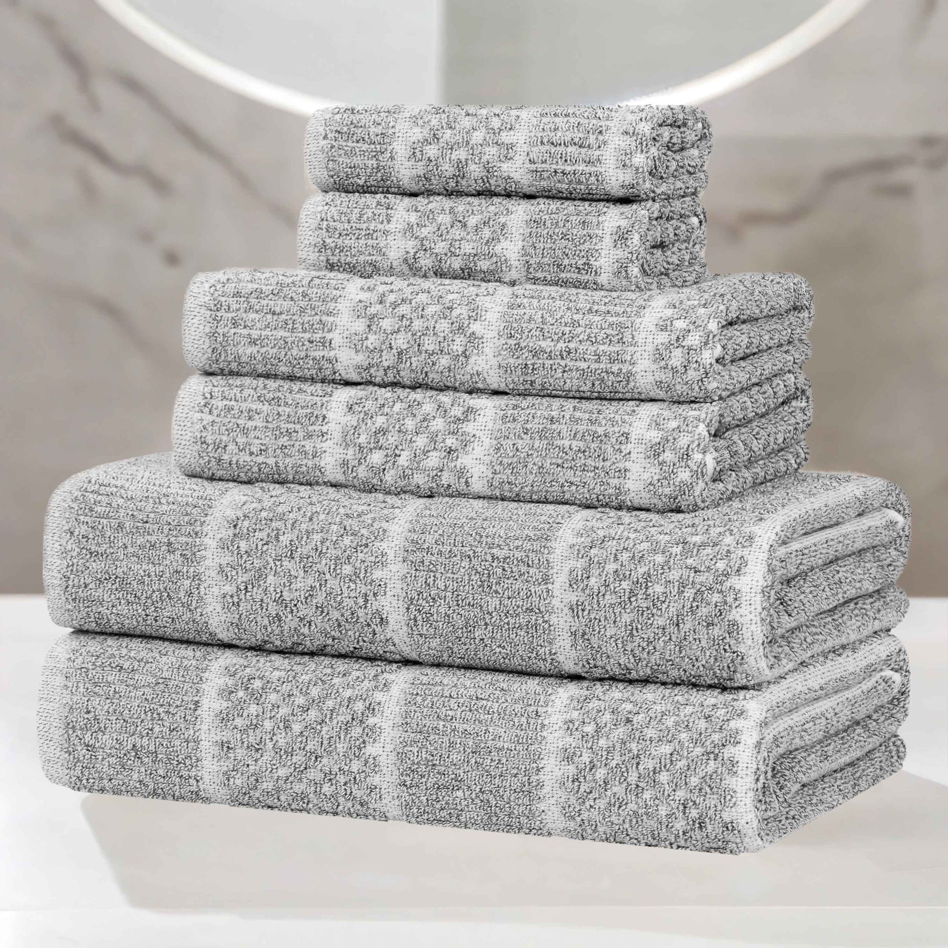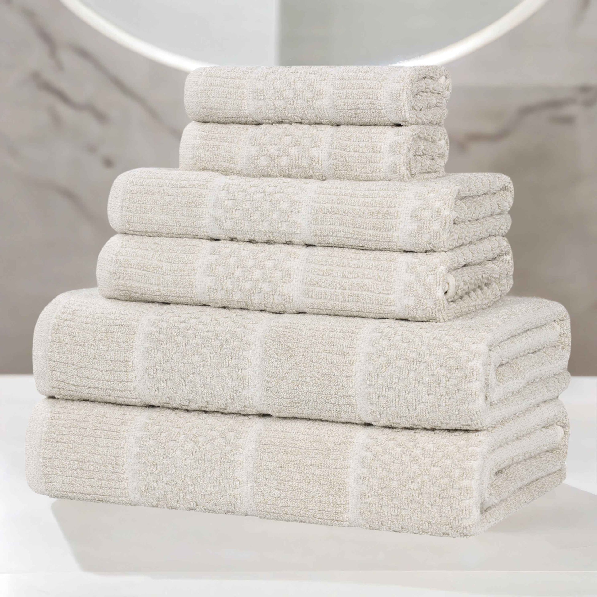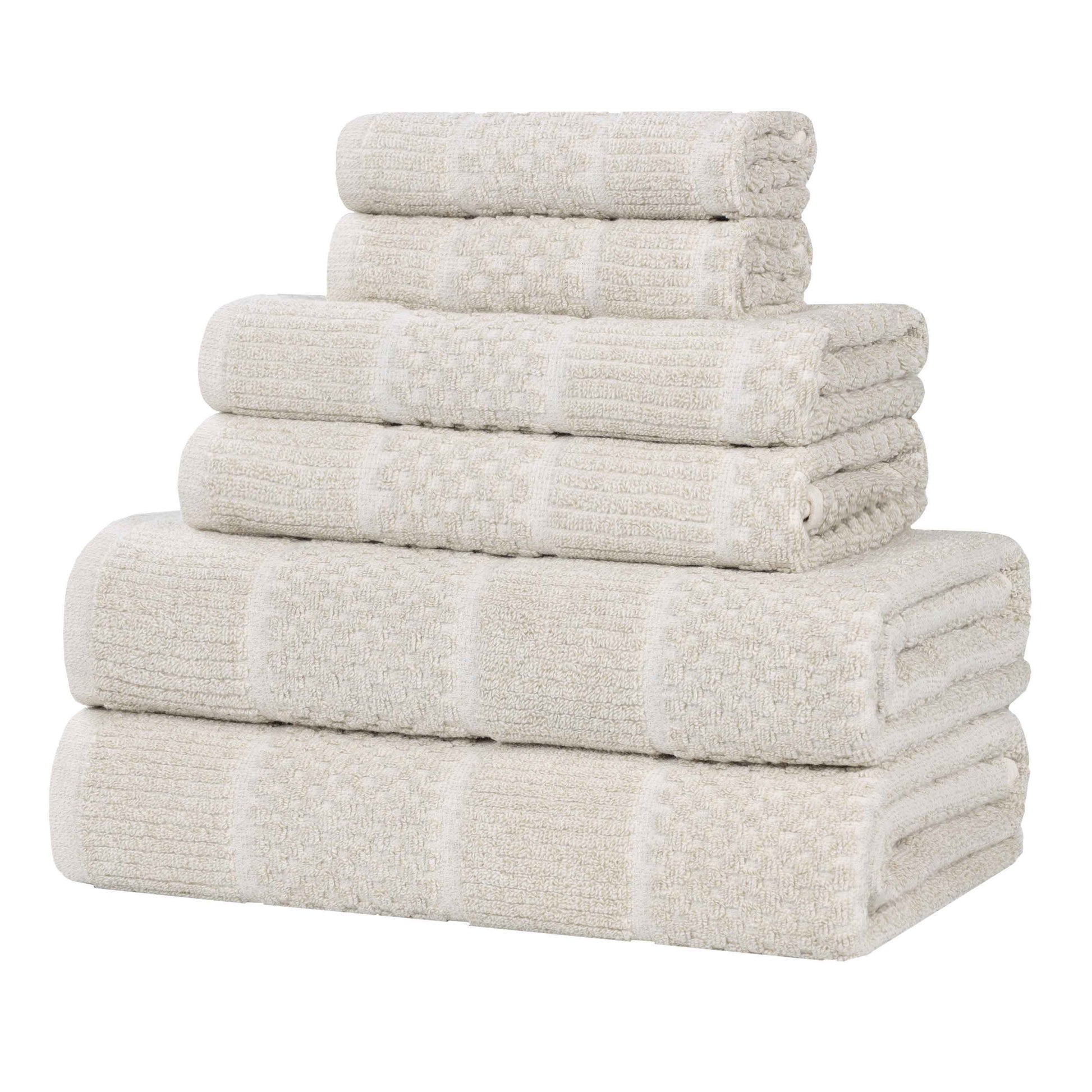 Naples Cotton Blend Textured Checkered and Ribbed 6 Piece Towel Set