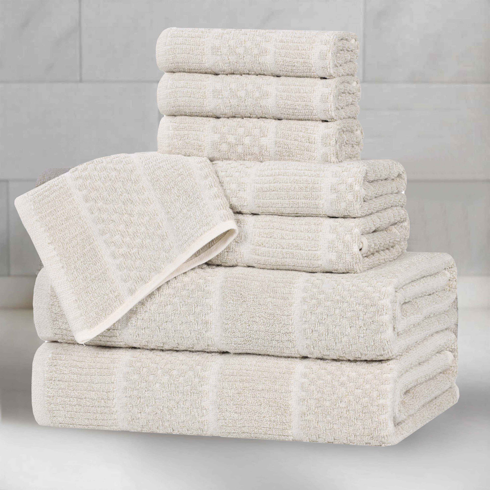 Naples Cotton Blend Textured Checkered and Ribbed 8 Piece Towel Set