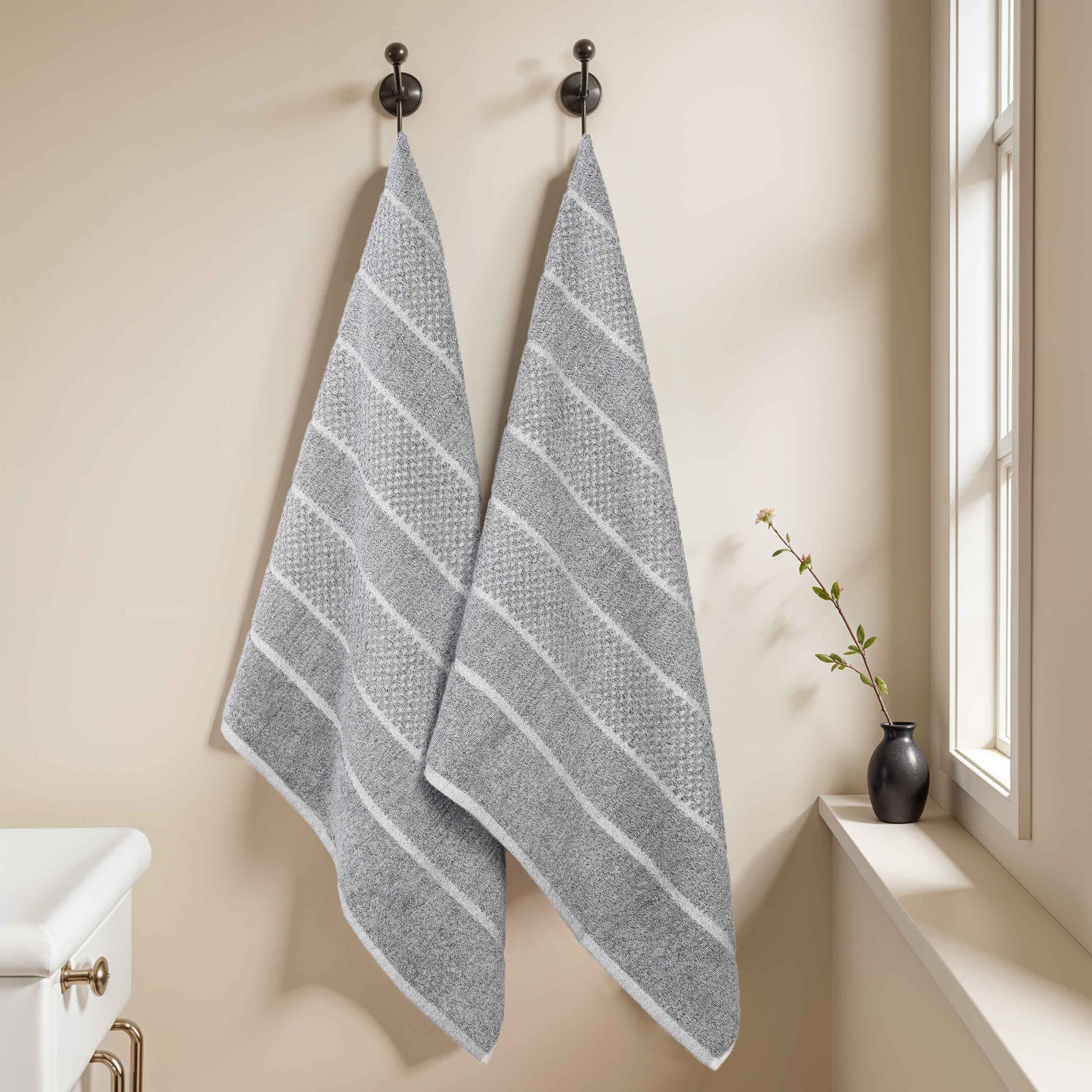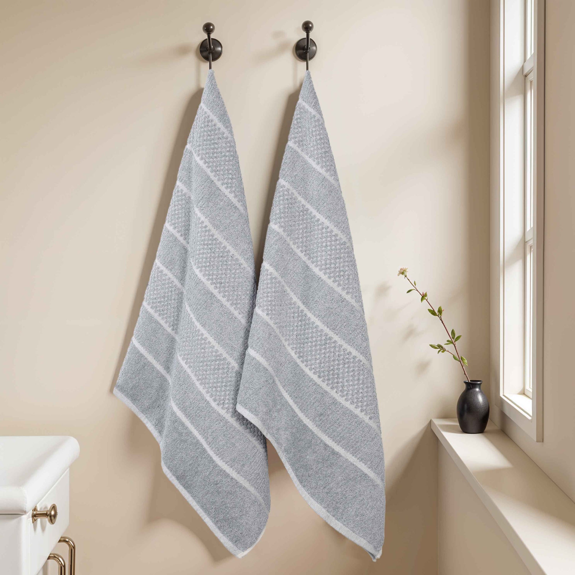 Naples Cotton Blend Textured Checkered & Ribbed Bath Sheets, Set of 2