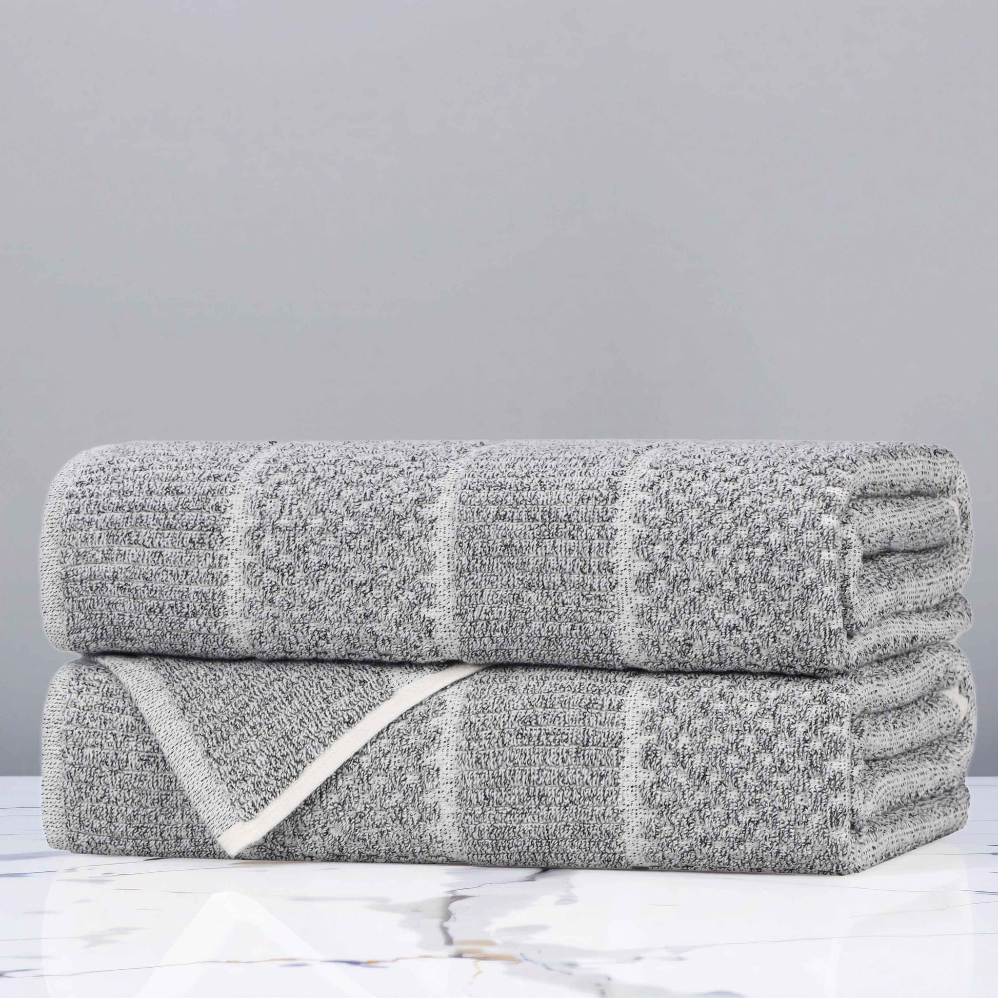 Redefine your bathroom with the Cotton Blend Checkered and Rib Bath Towel Set of 2, a premium addition to your towel ring.