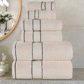 This towel bathroom set includes two face towels, two hand towels, and two bath towels, all crafted from ultra-soft, heavyweight Giza cotton that provides exceptional absorbency and plush texture.