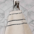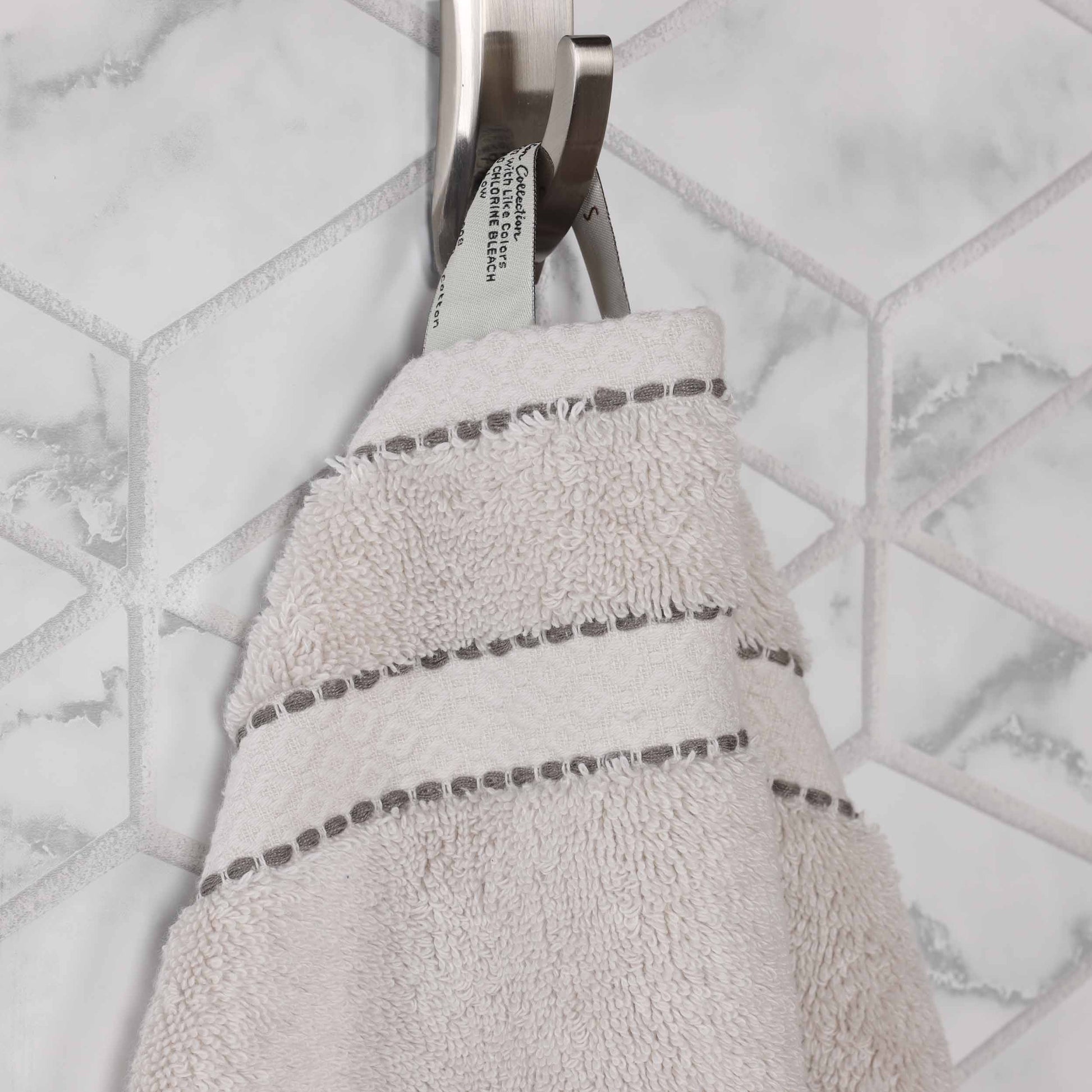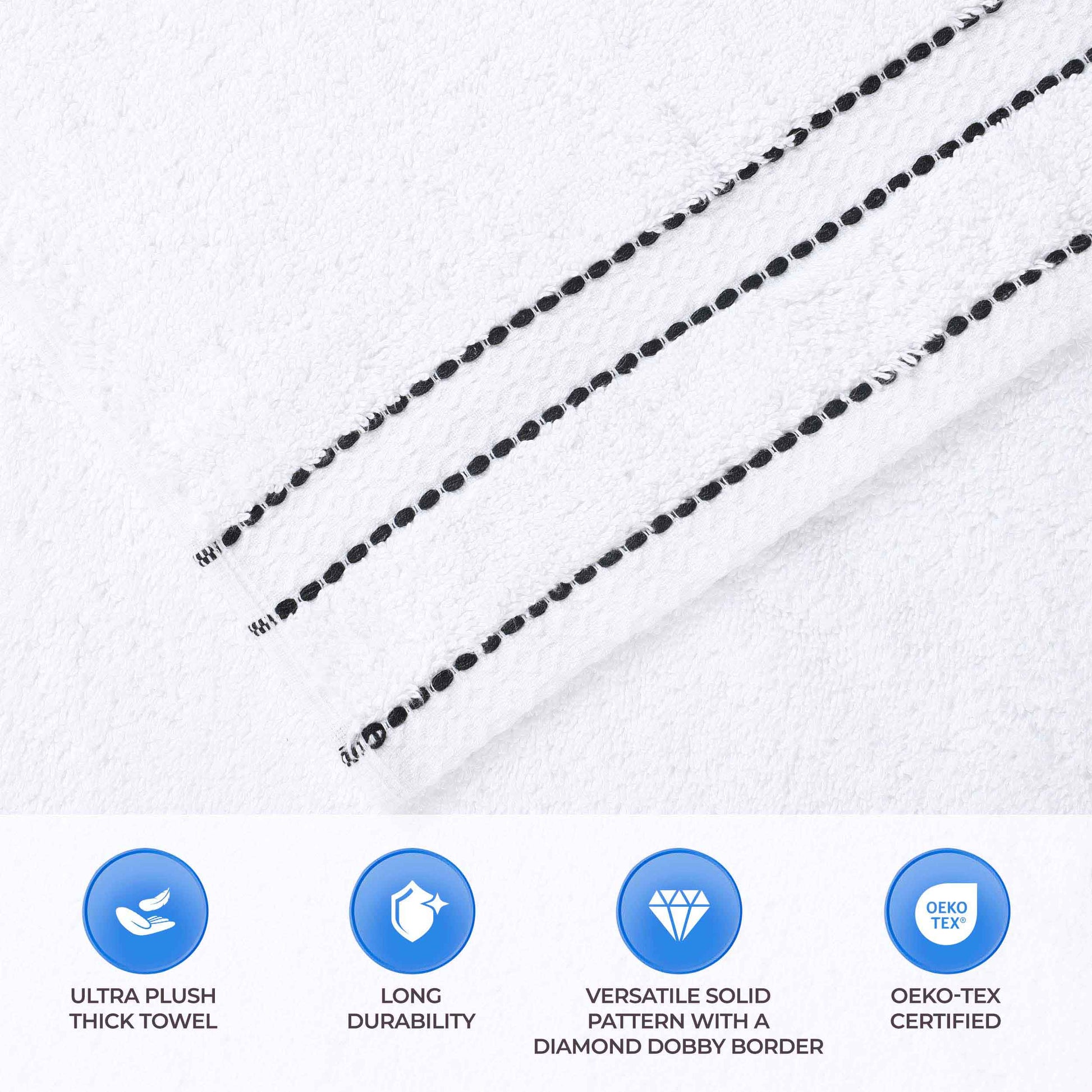 Featuring a classic diamond dobby border with delicate white stitching, these towels and washcloth sets combine elegance and practicality.