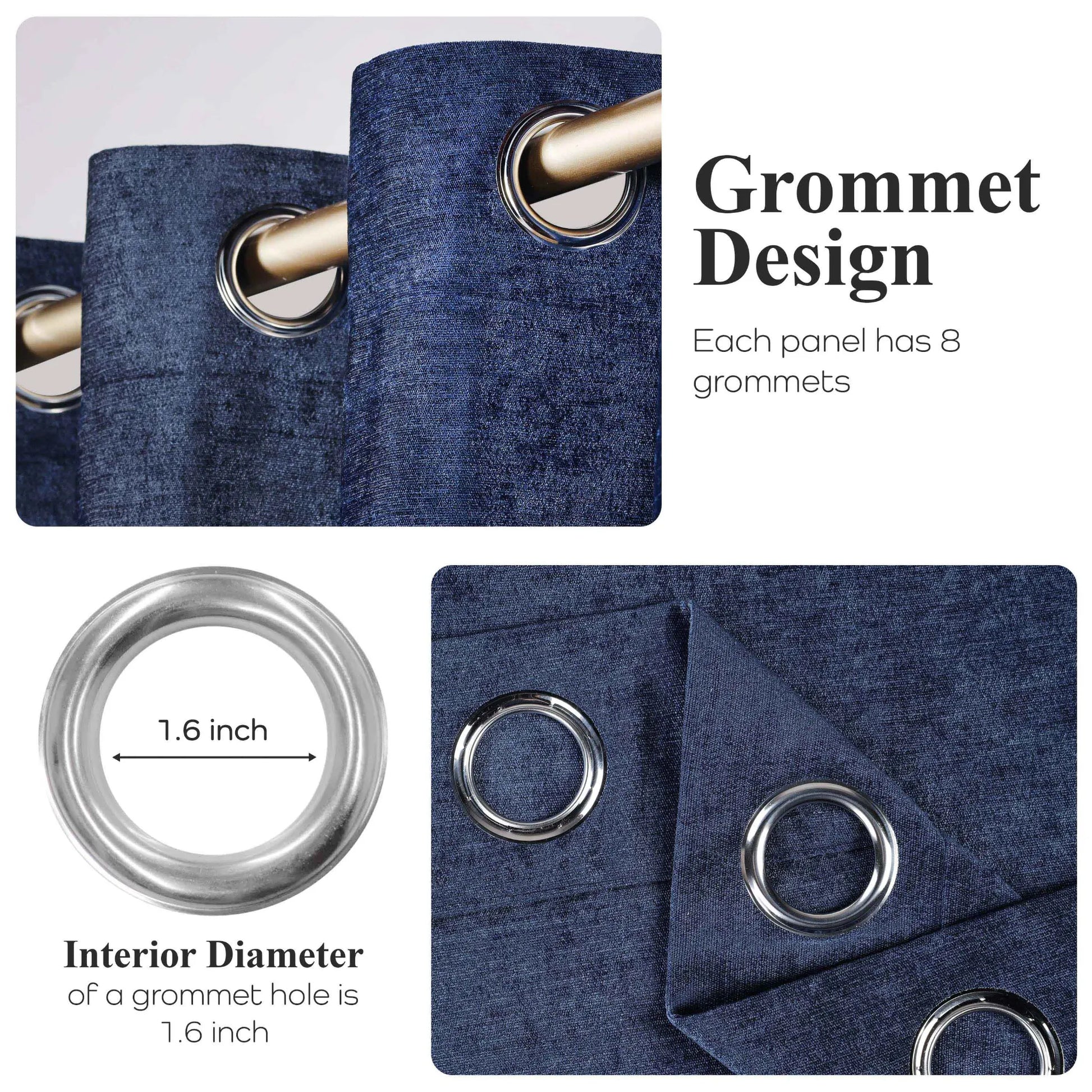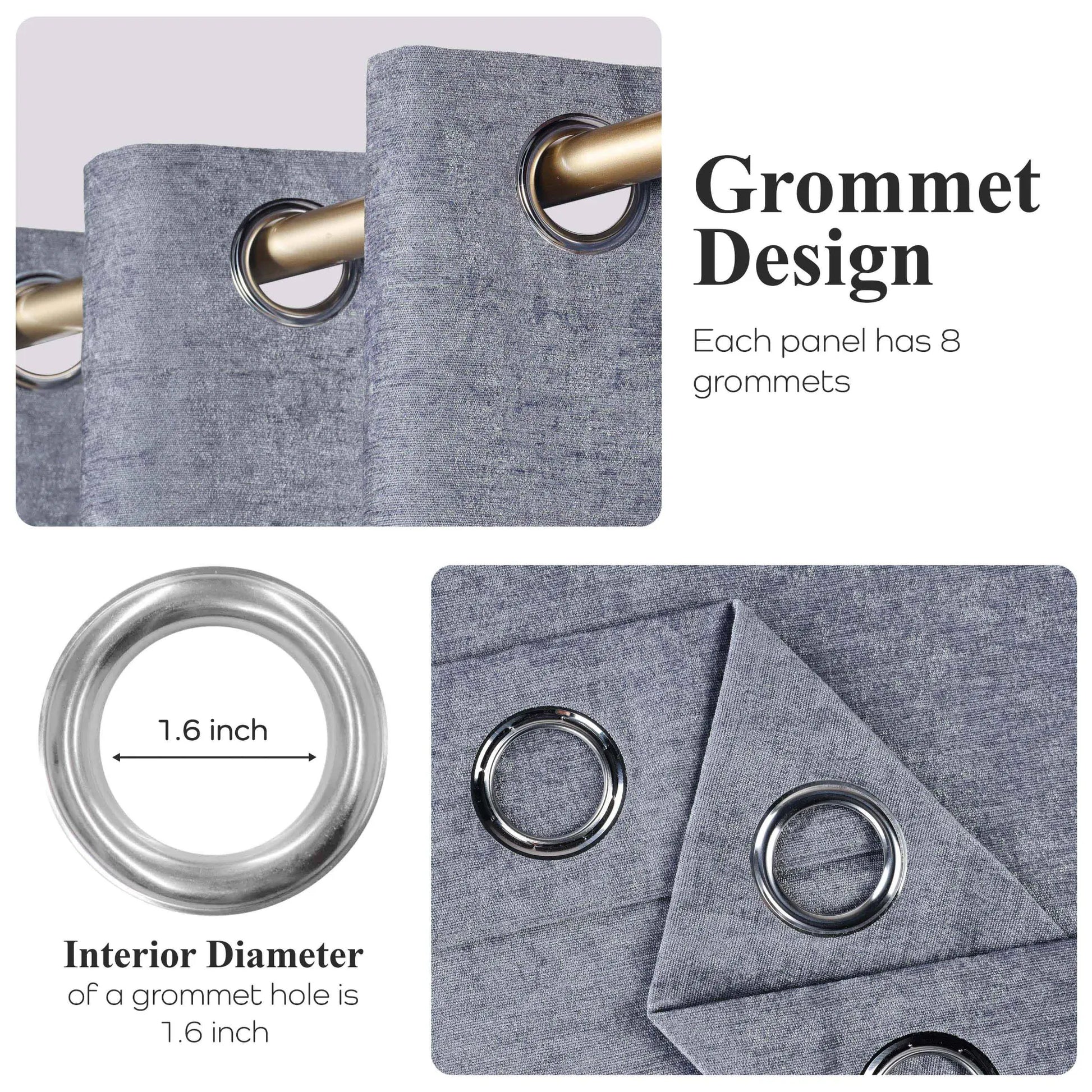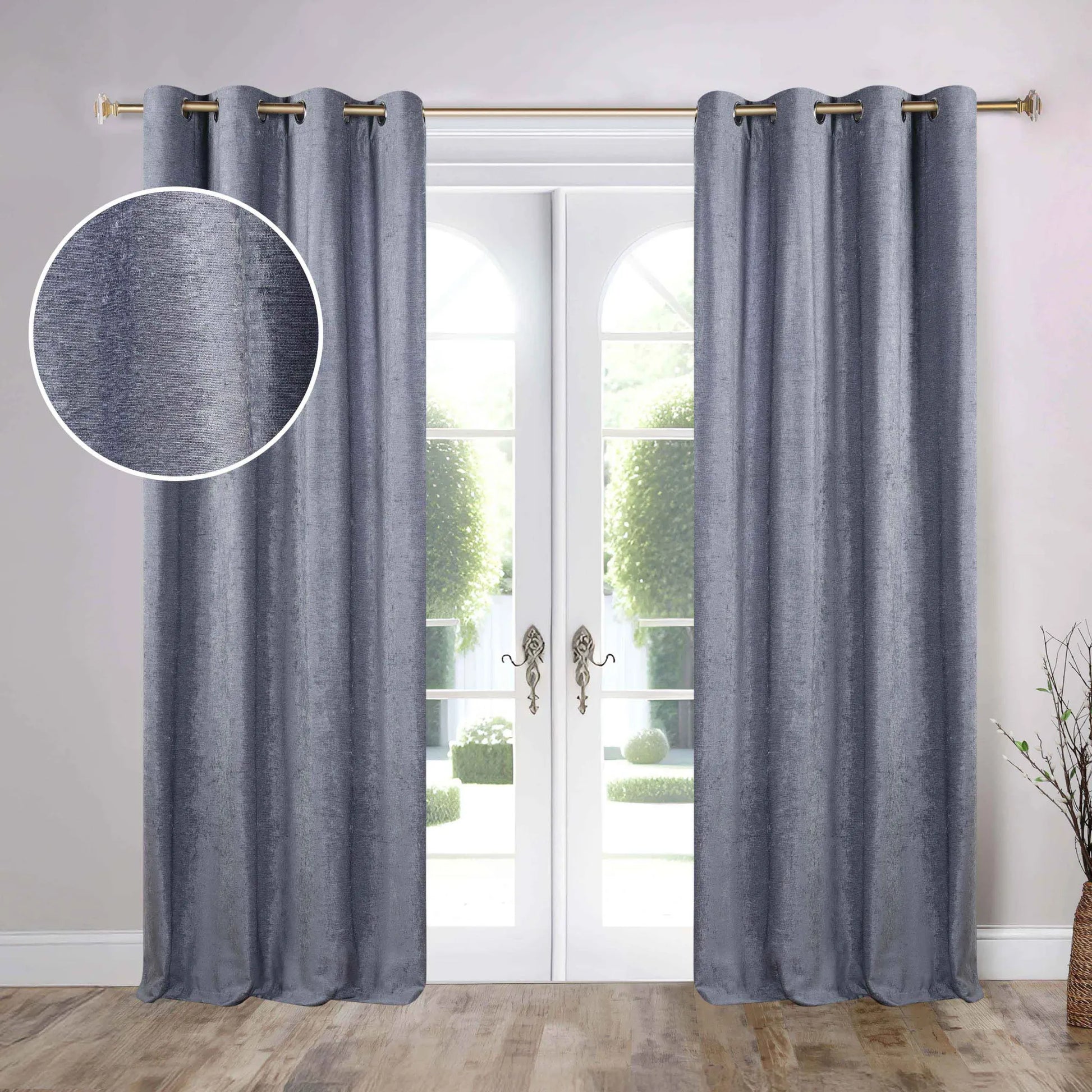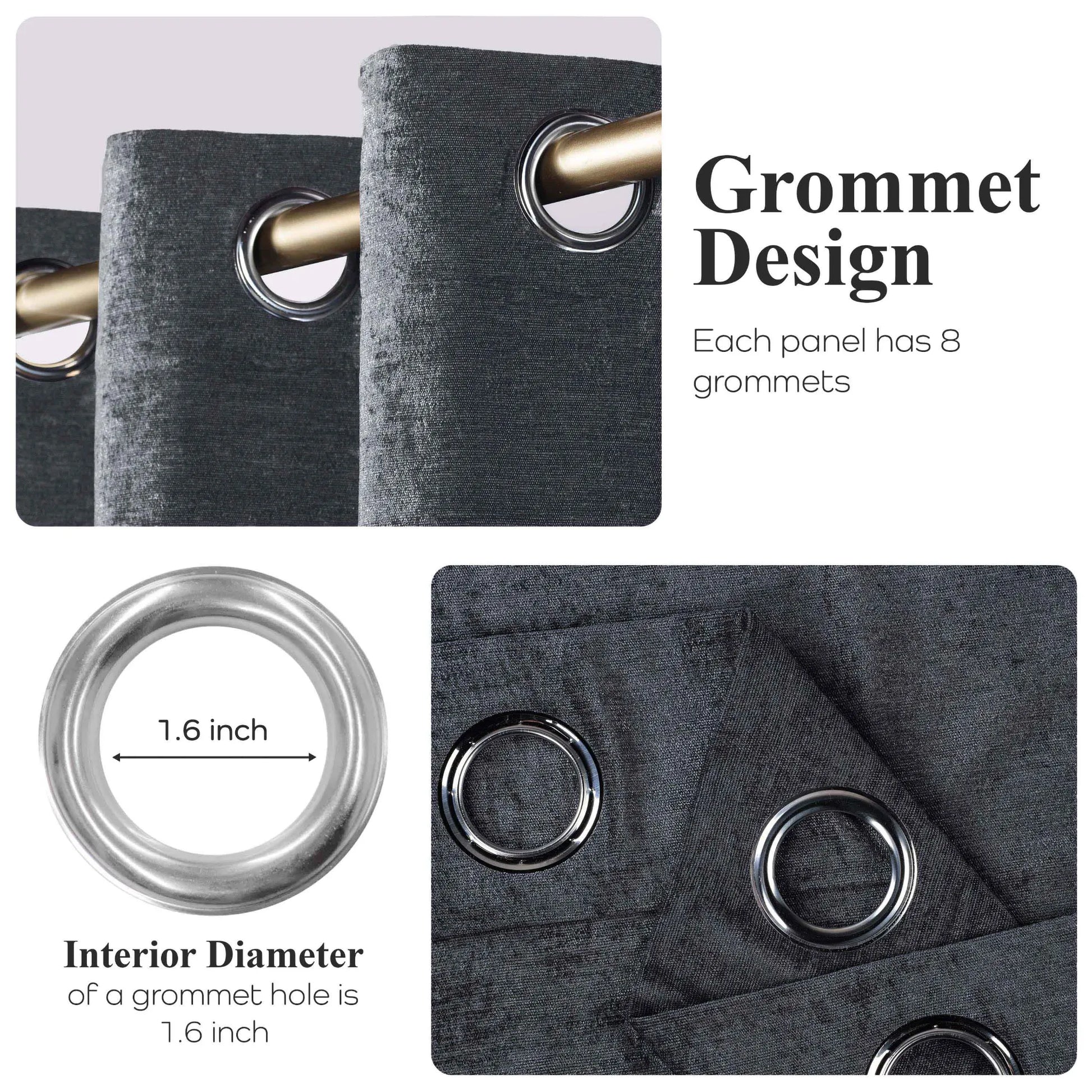 Noor Semi-Blackout Chenille Washable Grommet Curtains, Set of 2 Panels