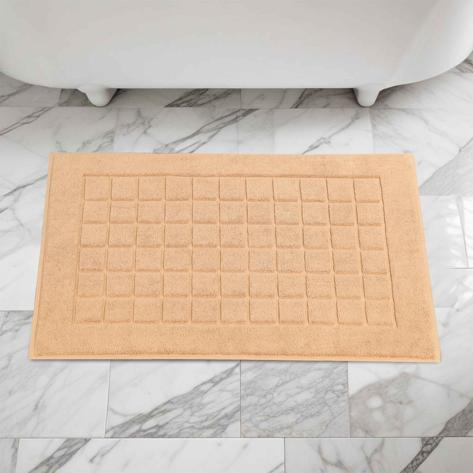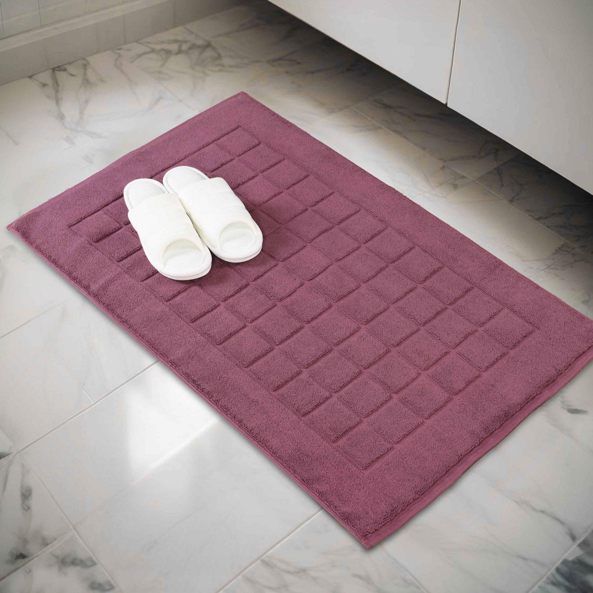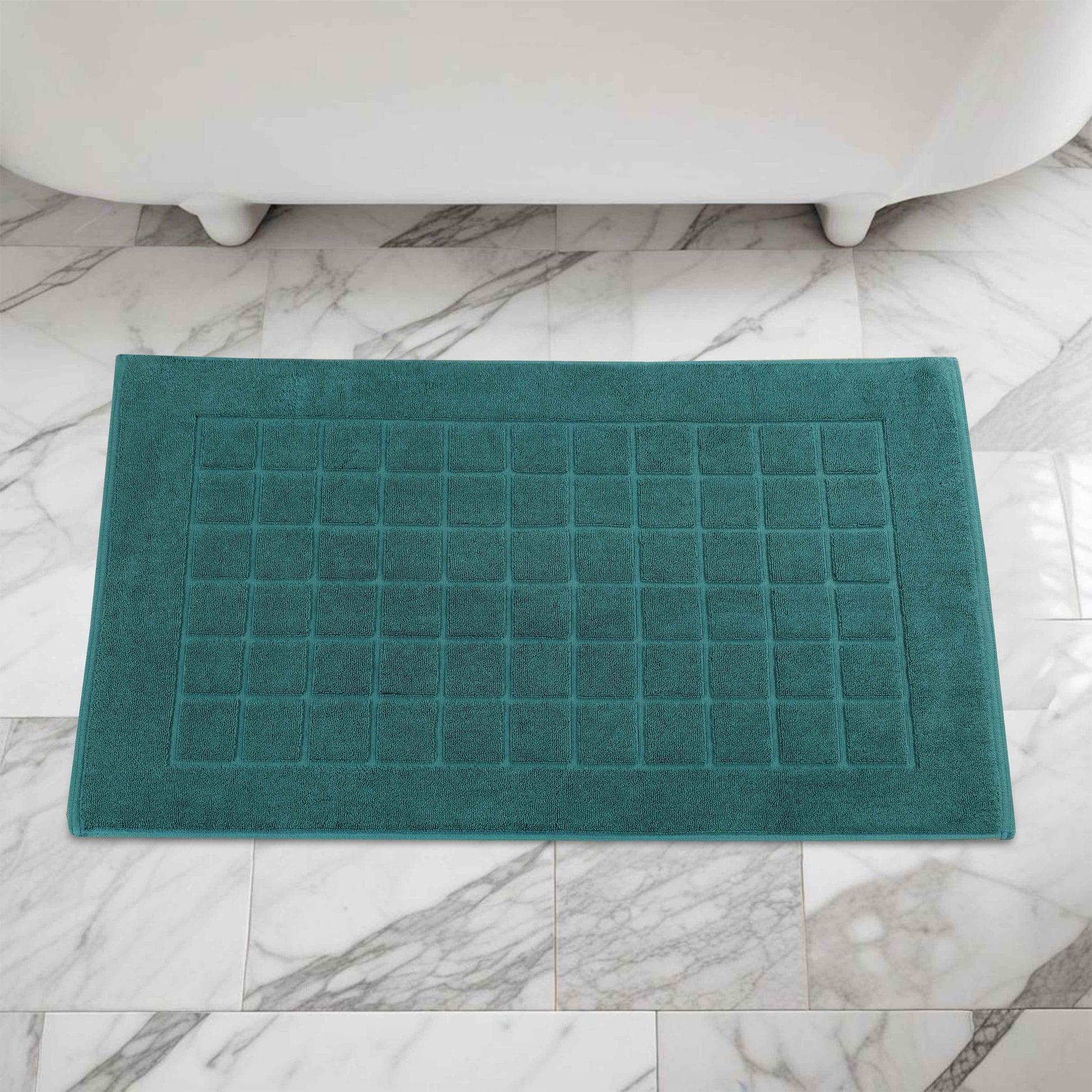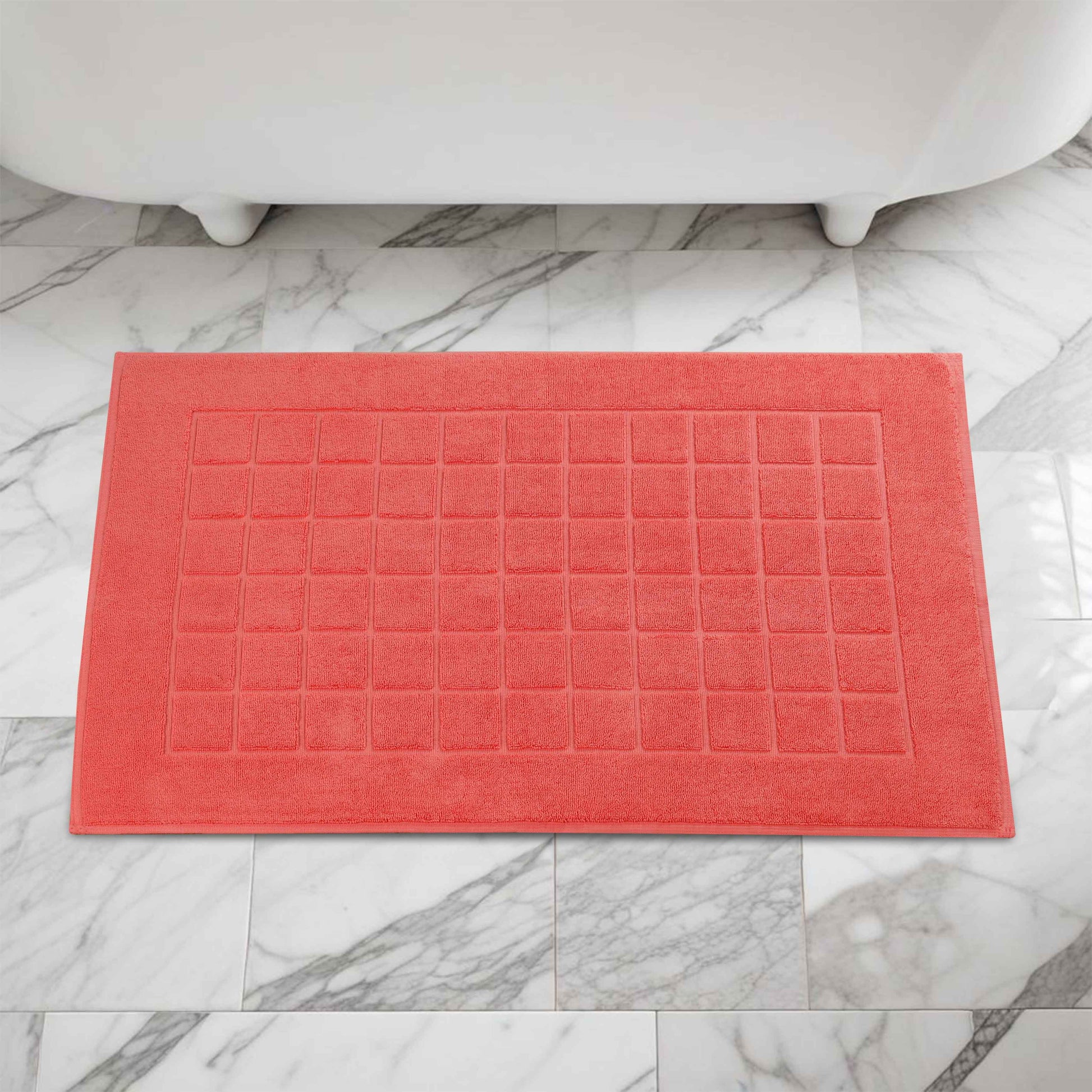 Combine functionality and style with our Nora Cotton Checkered Bath Mat Set for a cozy and inviting bathroom space. Crafted from highly-absorbent cotton, our bath mats help to prevent water from dripping onto your floors as you step out of the bath, shower or while getting ready by the sink. Featuring a thick 2-ply design, our bath mats keep your feet dry and protect them from the cold floor below. Designed to withstand repeated washing and drying, this bath mat set is easy to clean and stays absorbent even after multiple washes. Available in a variety of different color options, match your taste and revamp your bathroom space with this elegant bath mat set.