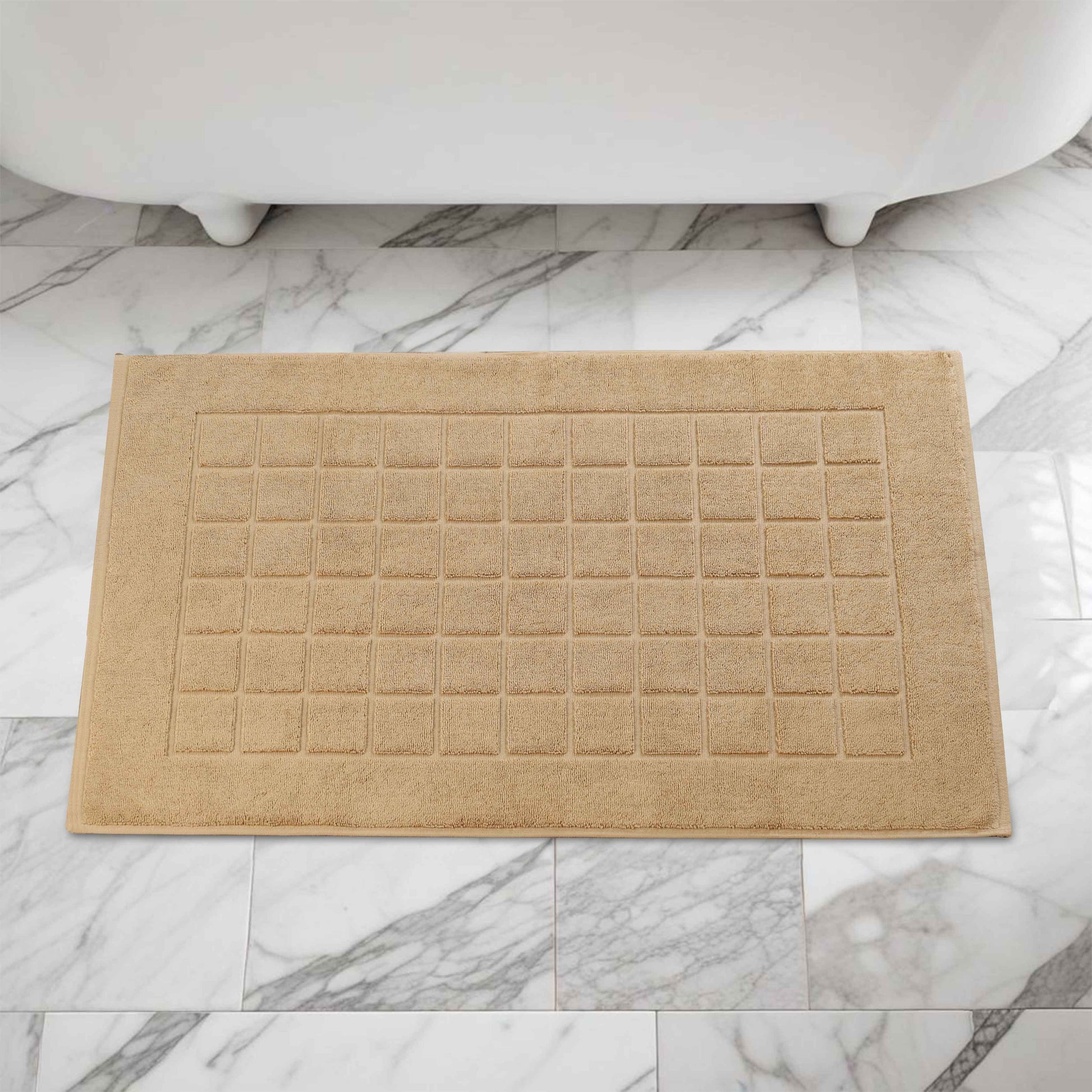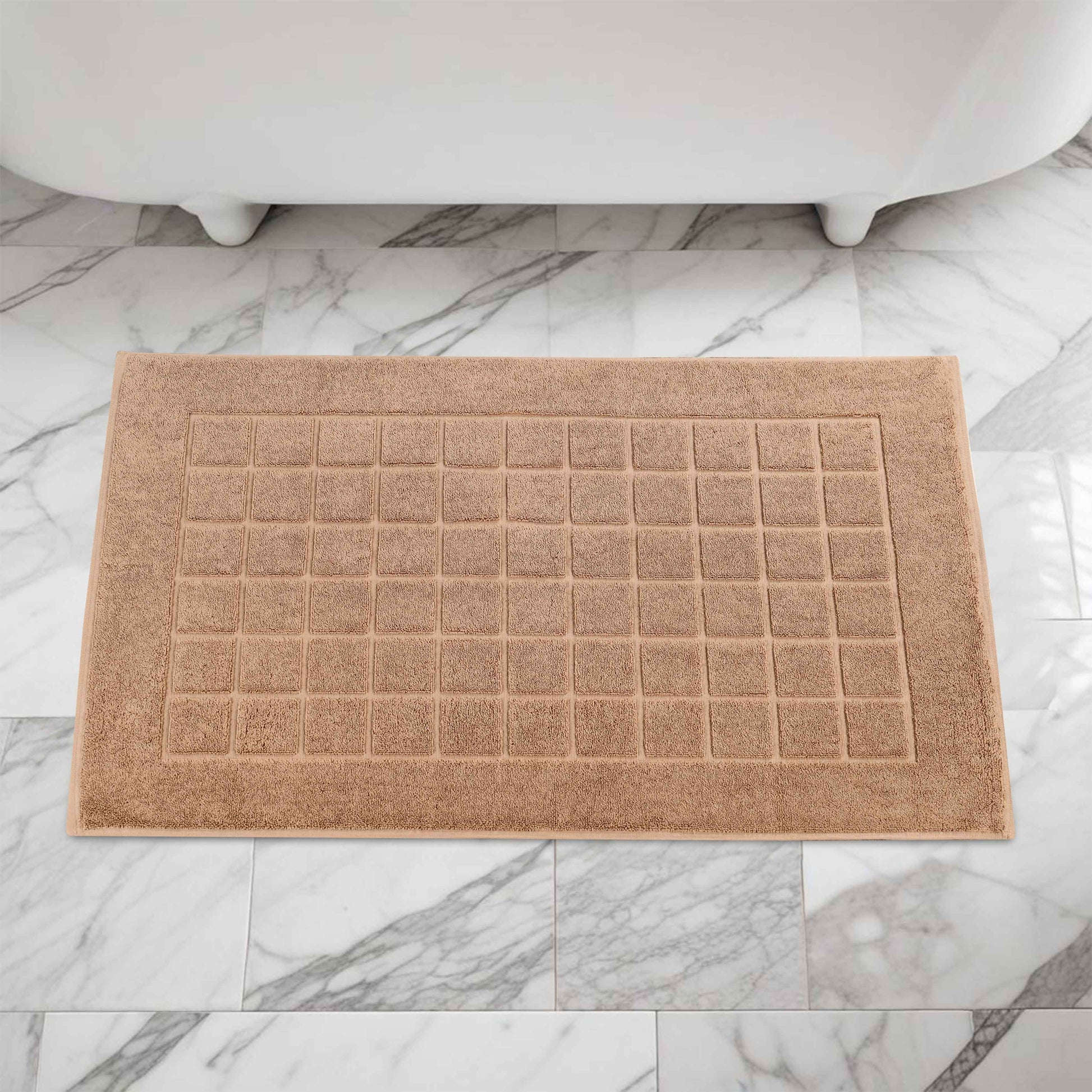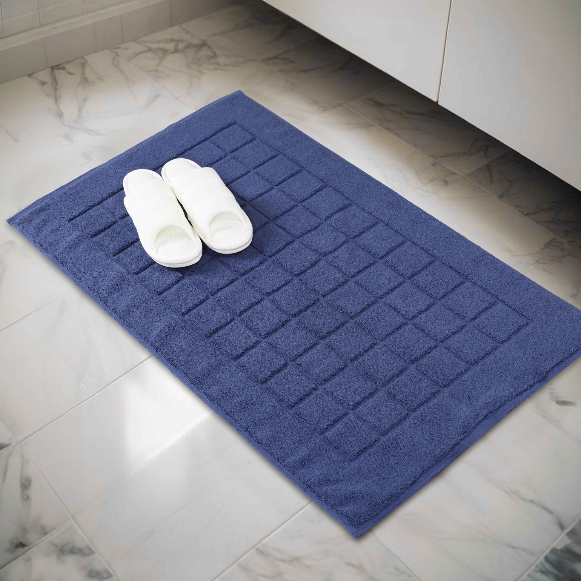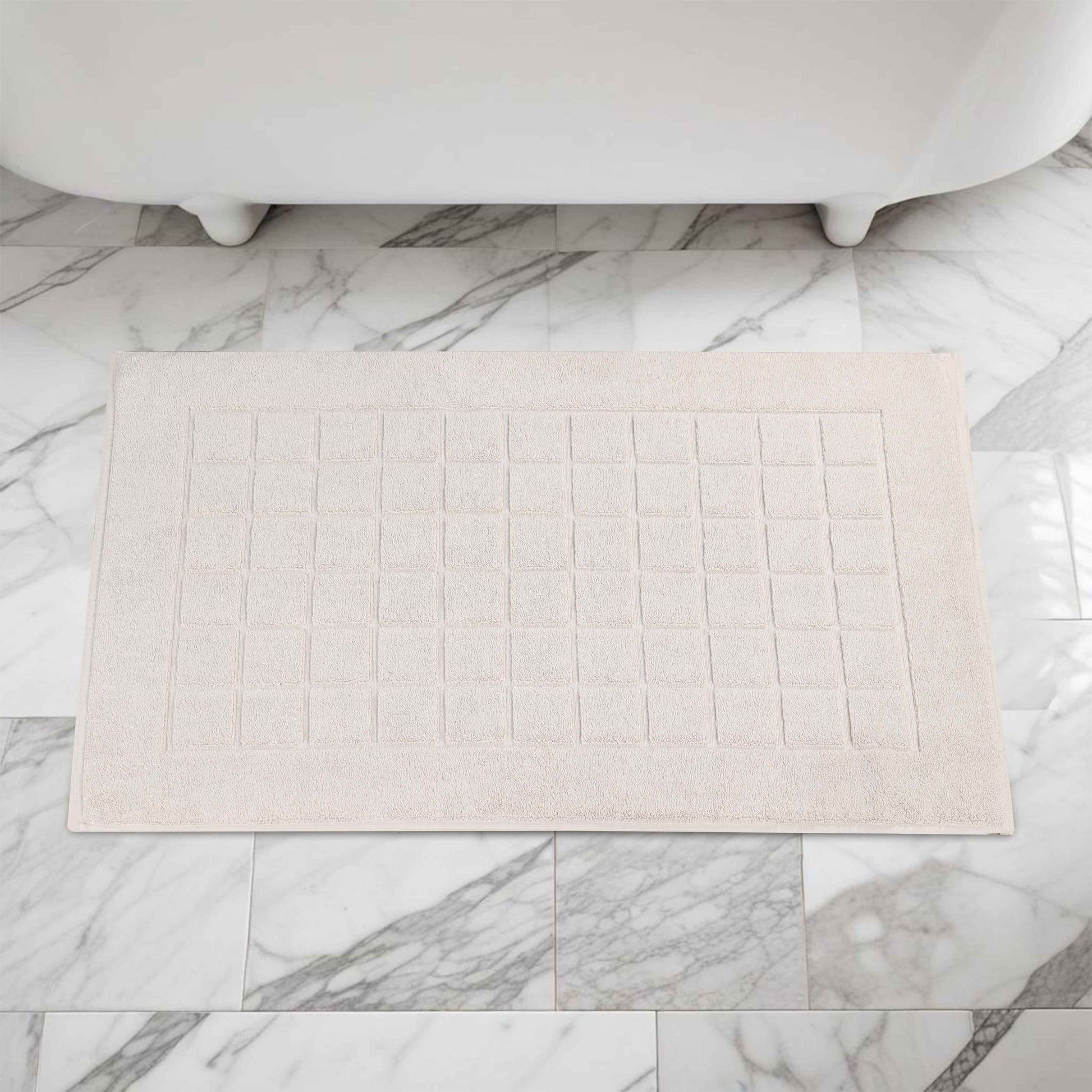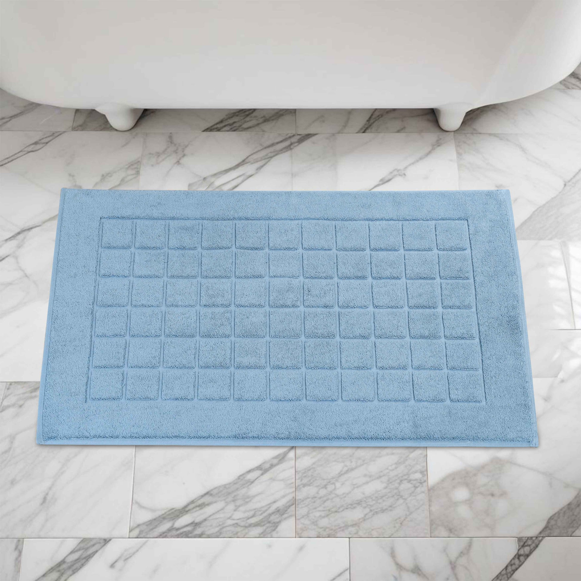 Combine functionality and style with our Nora Cotton Checkered Bath Mat Set for a cozy and inviting bathroom space. Crafted from highly-absorbent cotton, our bath mats help to prevent water from dripping onto your floors as you step out of the bath, shower or while getting ready by the sink. Featuring a thick 2-ply design, our bath mats keep your feet dry and protect them from the cold floor below. Designed to withstand repeated washing and drying, this bath mat set is easy to clean and stays absorbent even after multiple washes. Available in a variety of different color options, match your taste and revamp your bathroom space with this elegant bath mat set.
