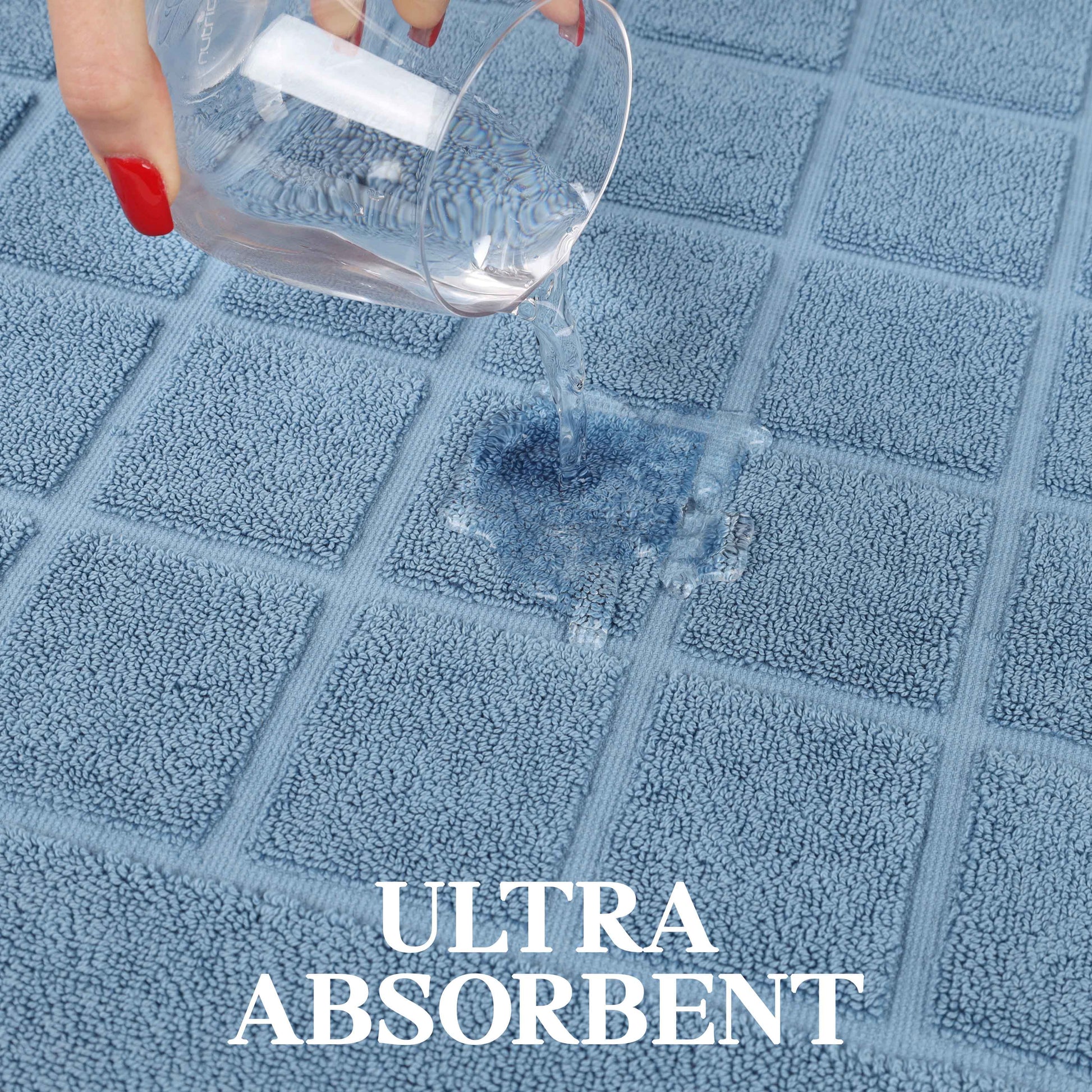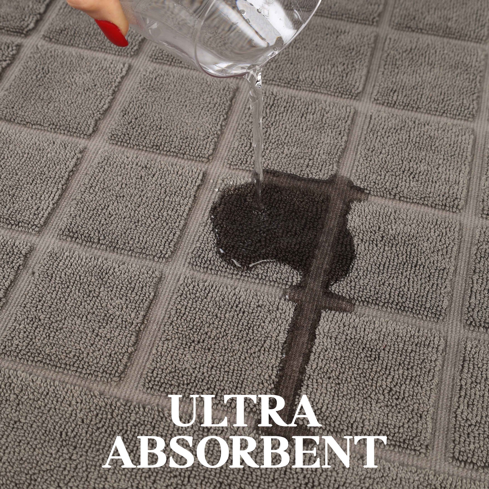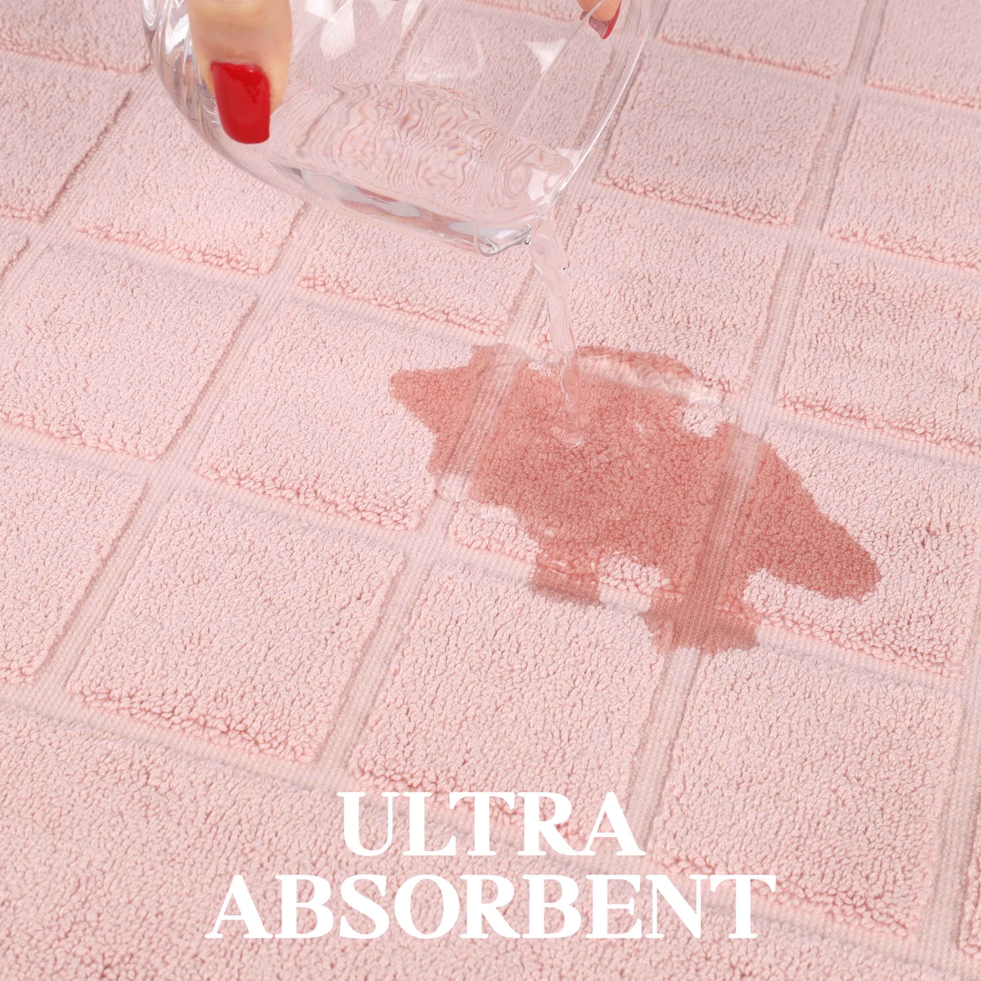 - Additional Features: 2-ply thickness for extra absorbency and comfort. Luxuriously dense material helps protect your floors and keep your feet dry. Ideal accent for any shower space, master bath, powder room or guest bathroom.
