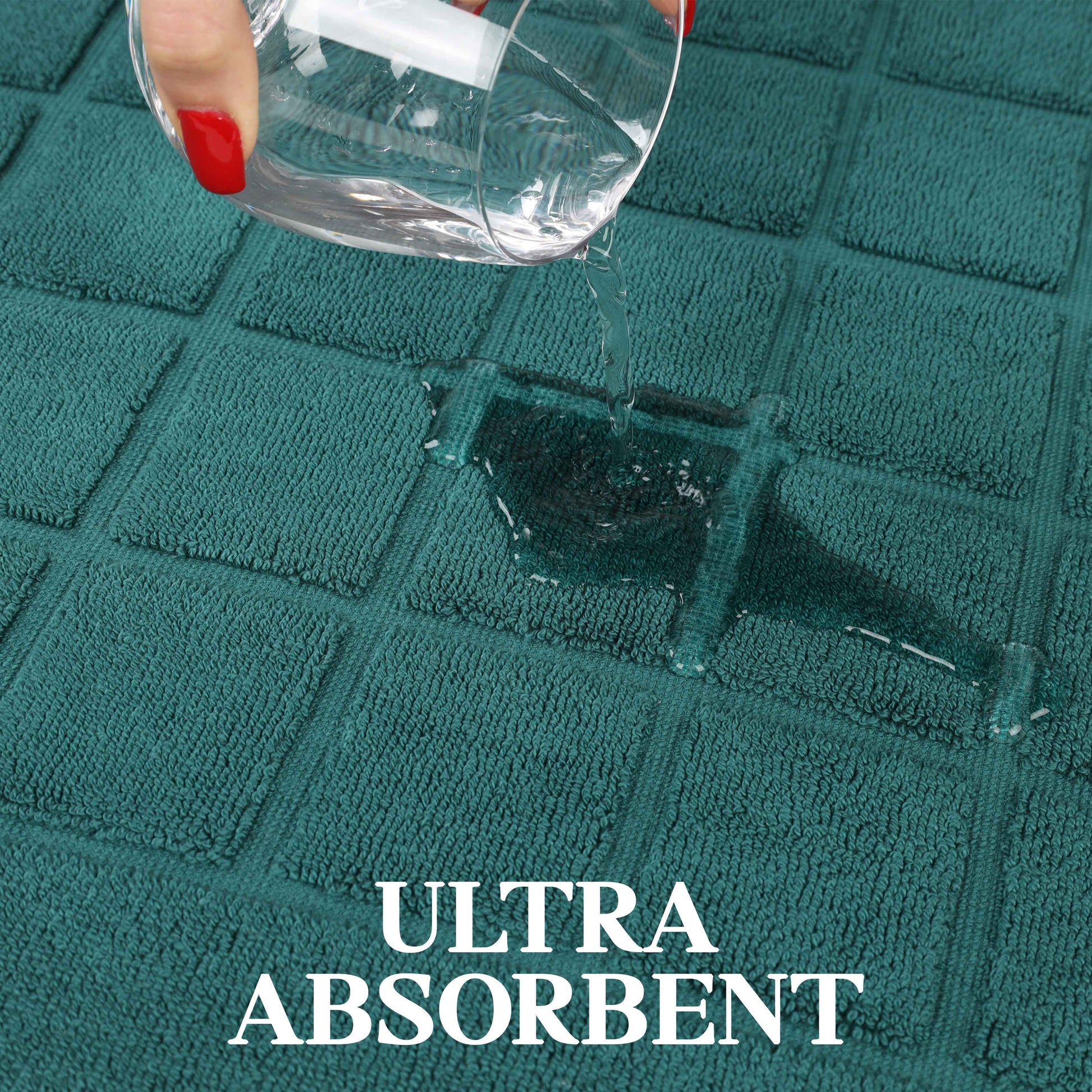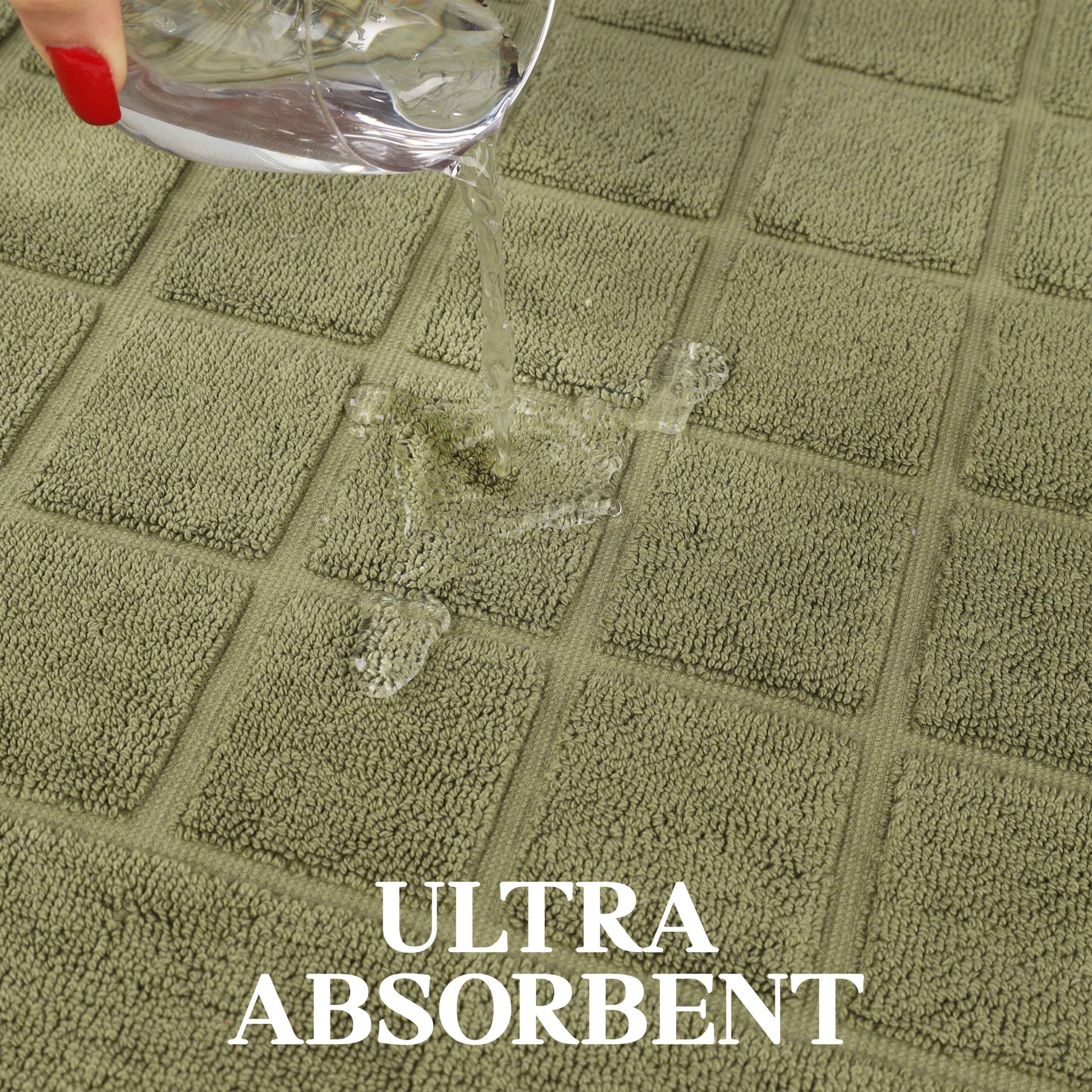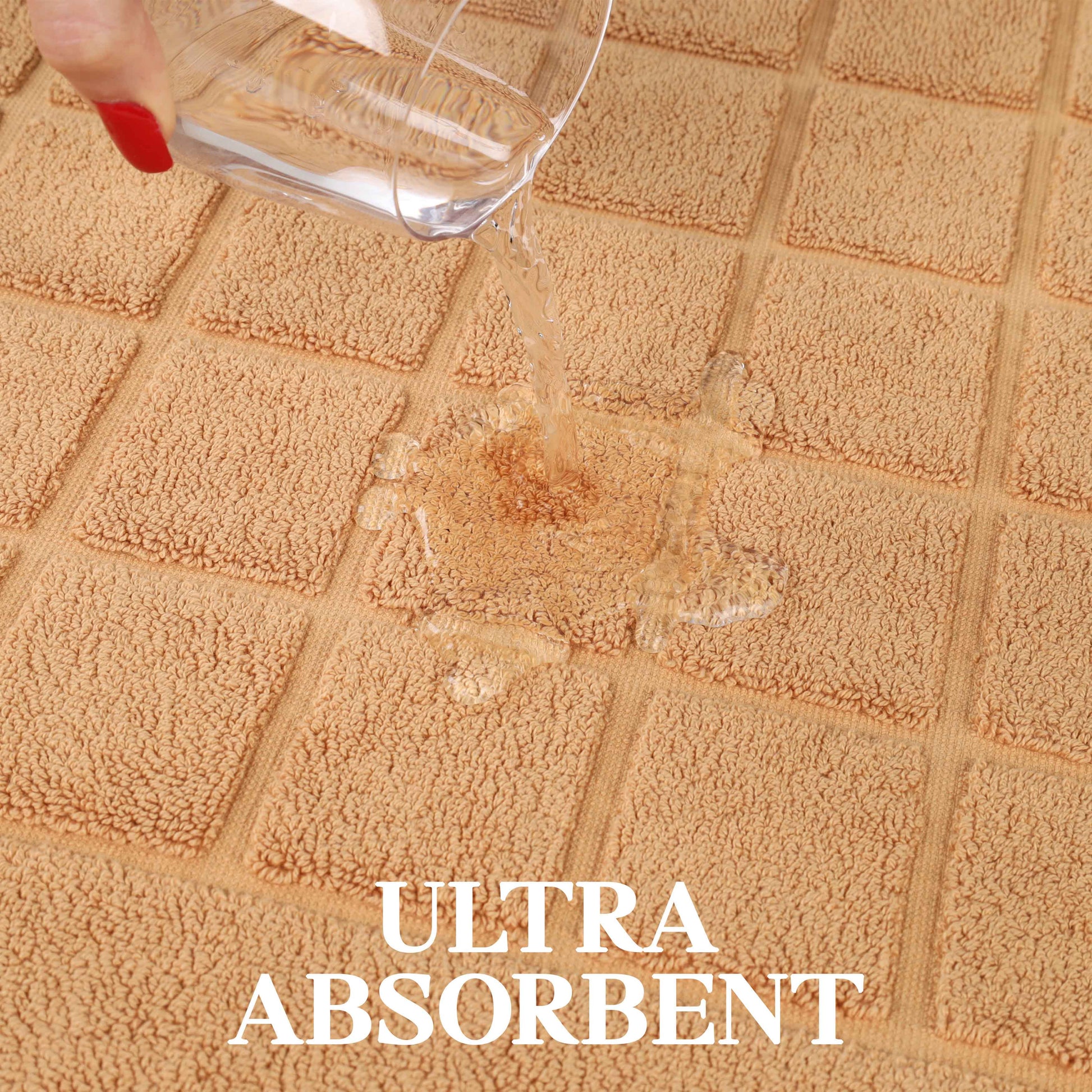- Additional Features: 2-ply thickness for extra absorbency and comfort. Luxuriously dense material helps protect your floors and keep your feet dry. Ideal accent for any shower space, master bath, powder room or guest bathroom.