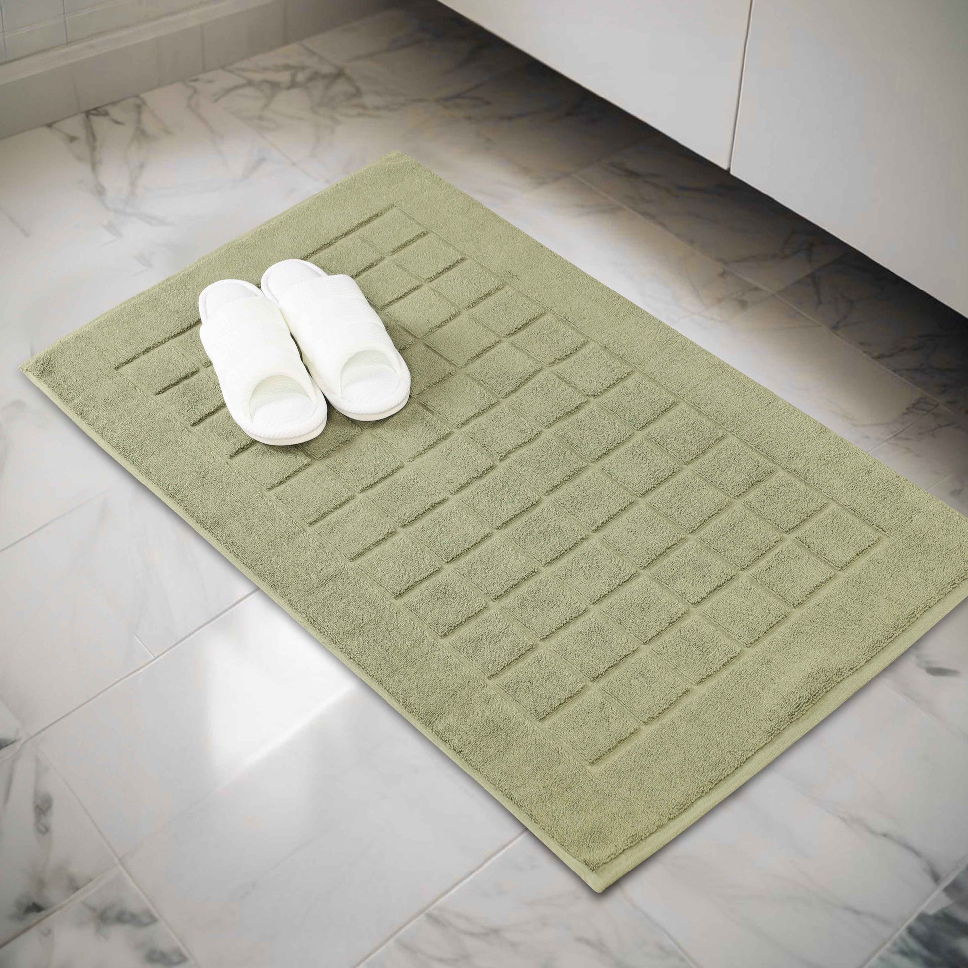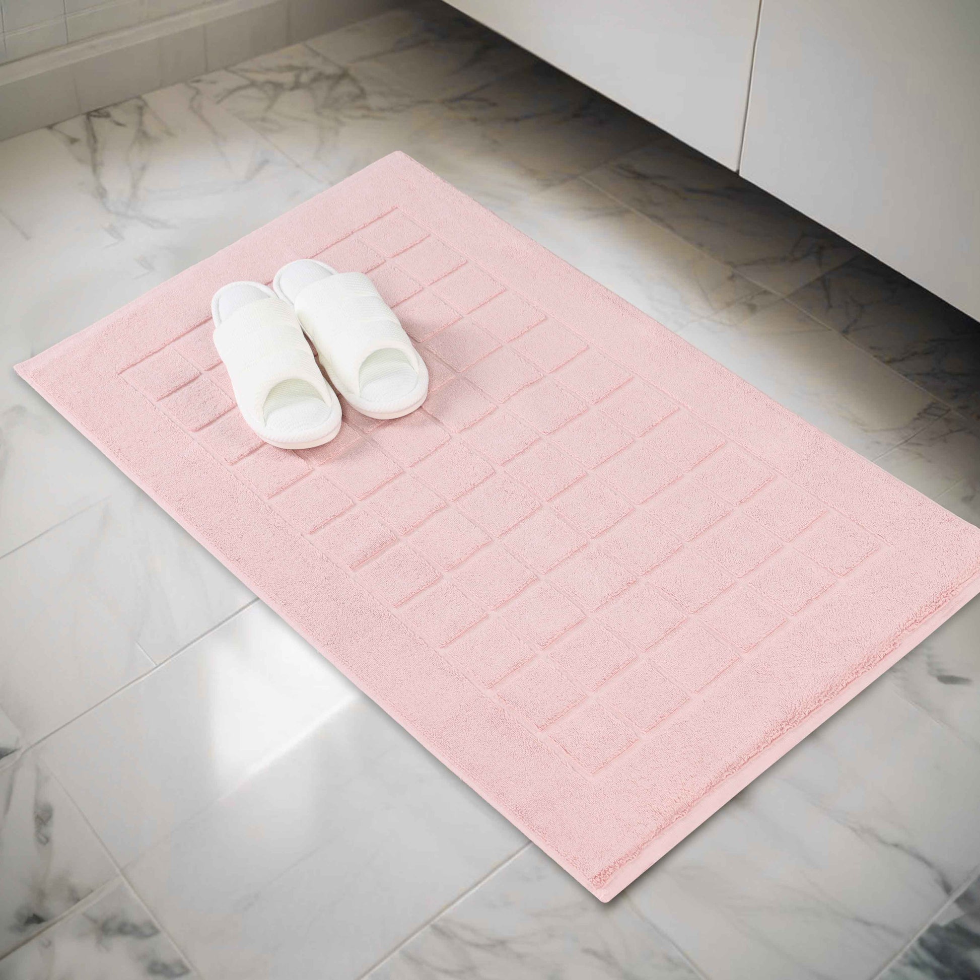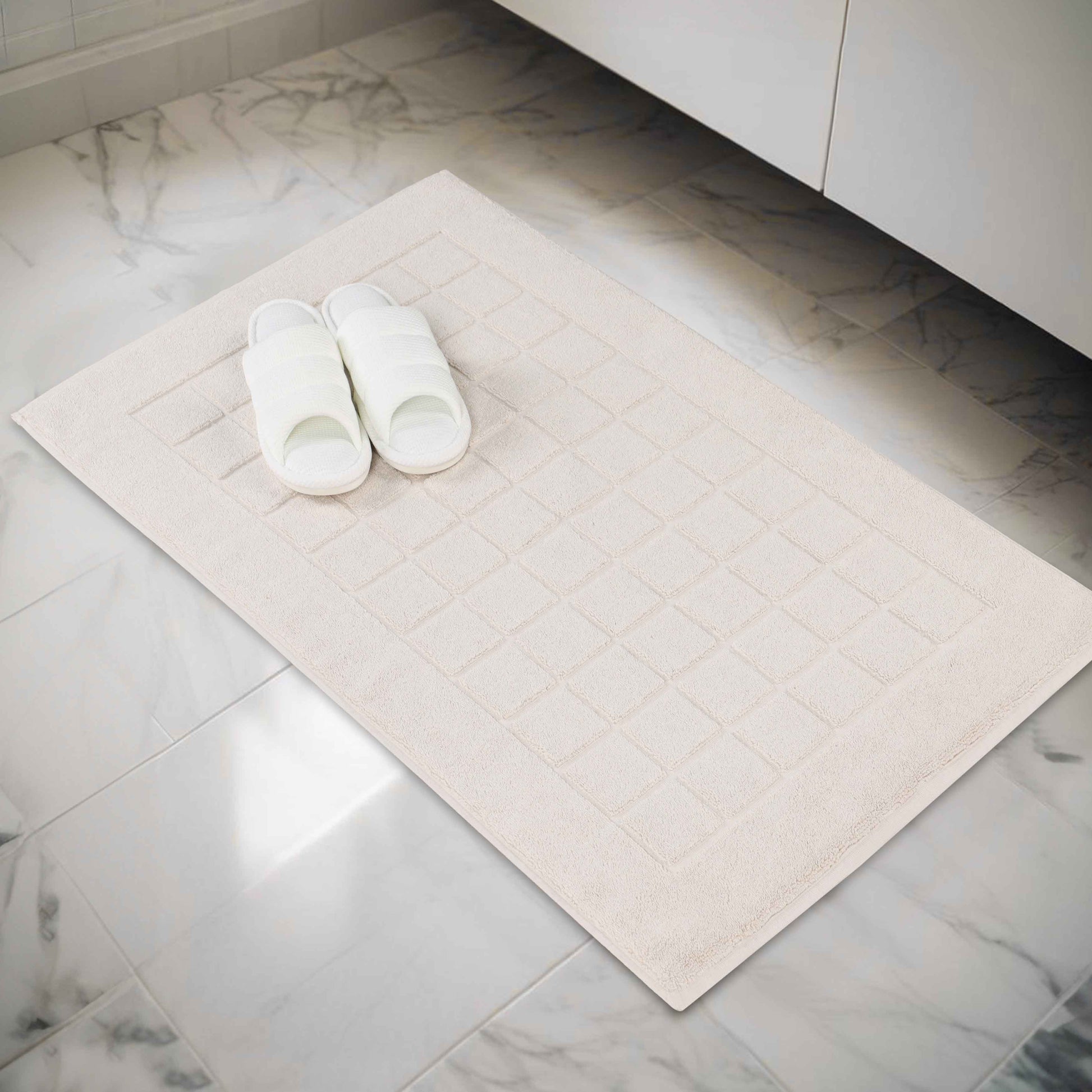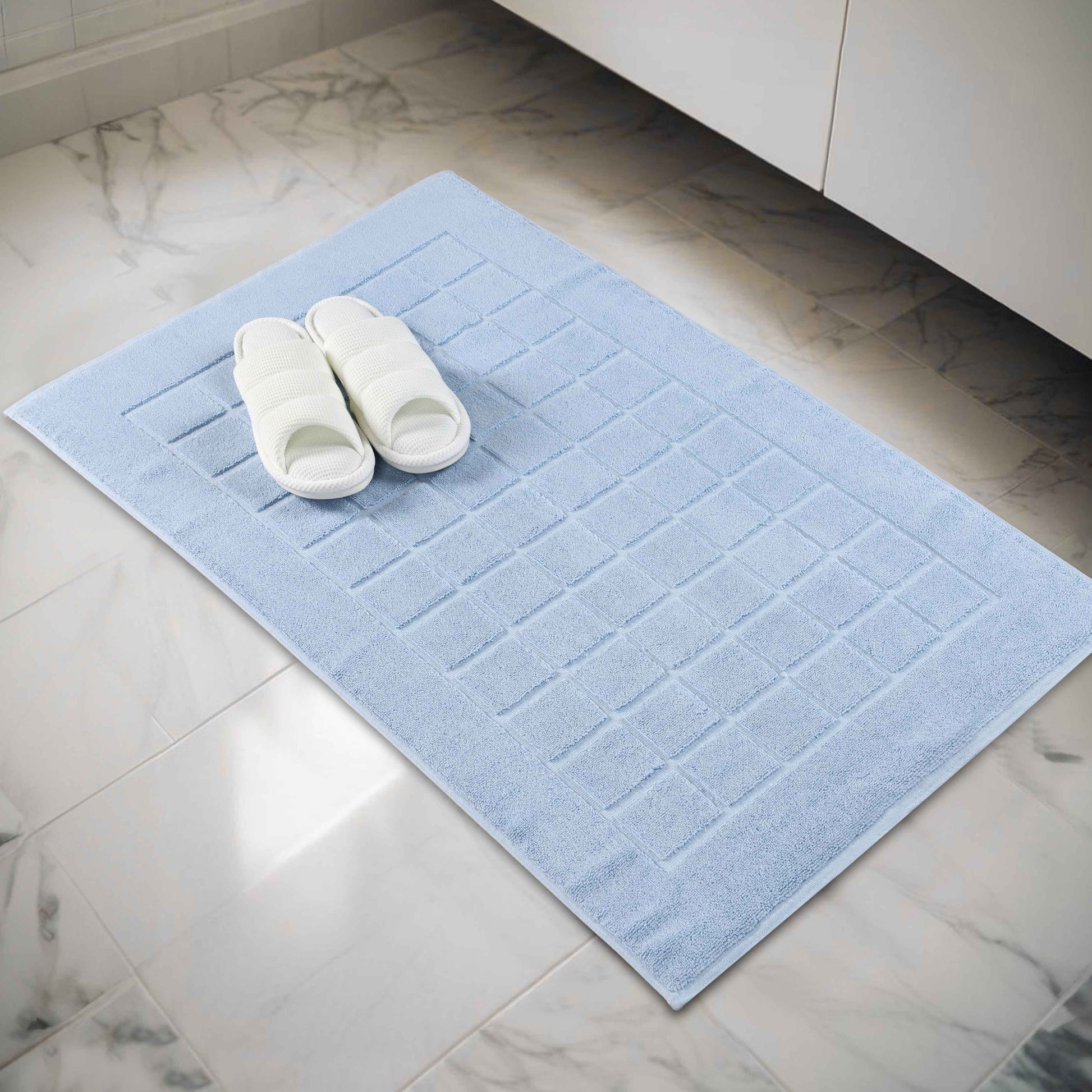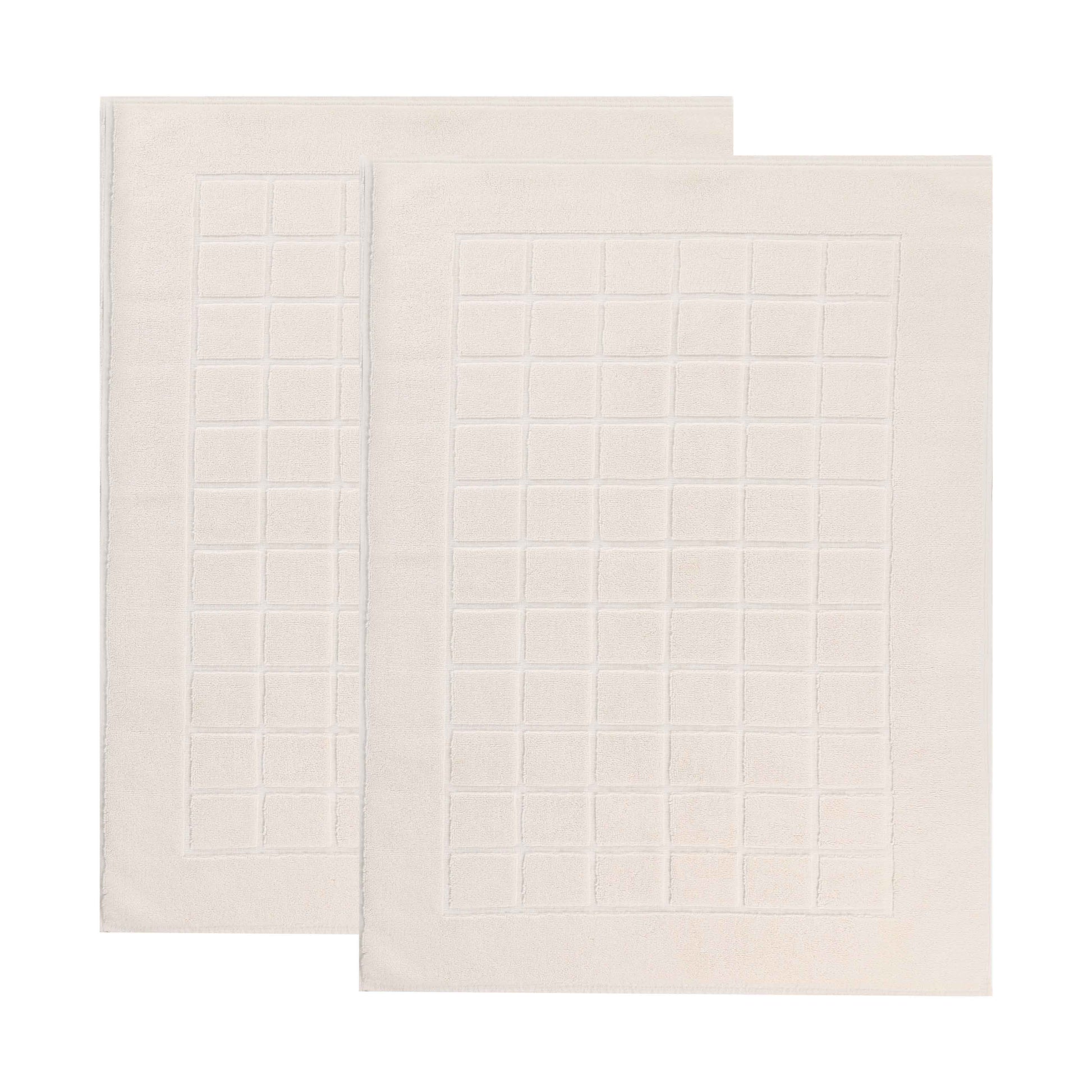 Nora Cotton Solid Absorbent Thick Checkered Washable Bath Mat Set of 2