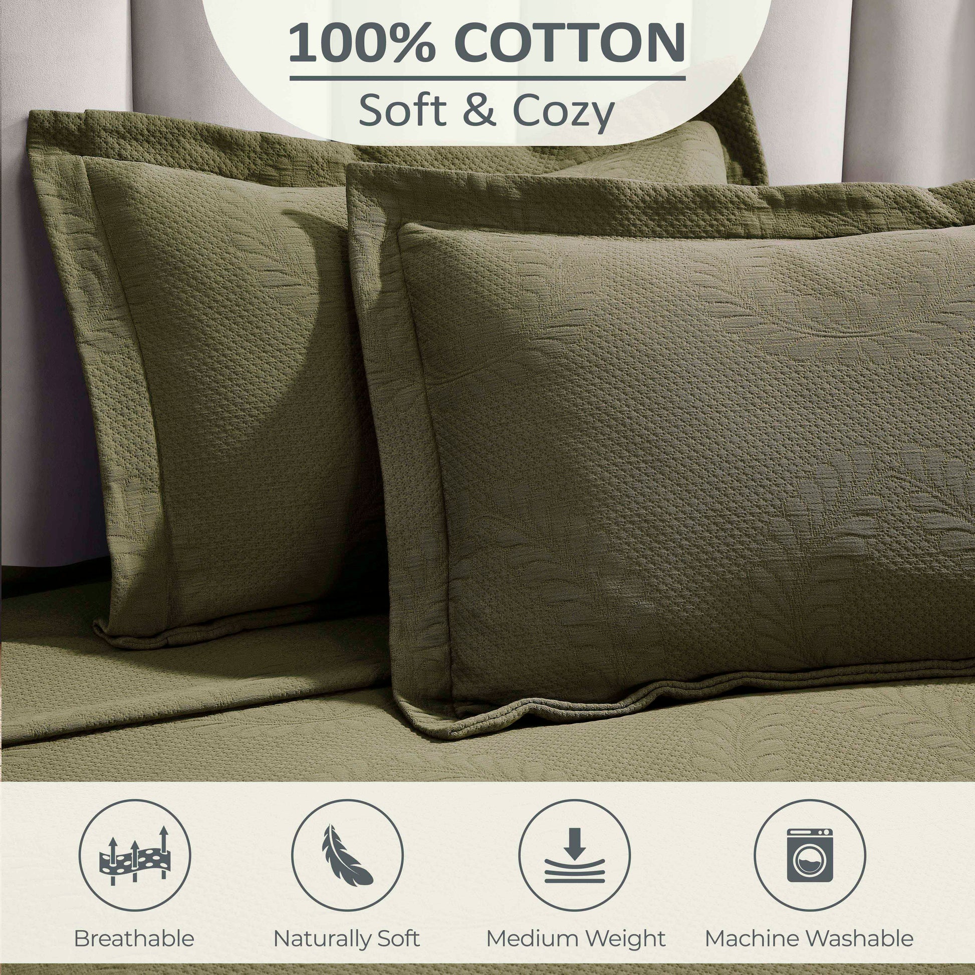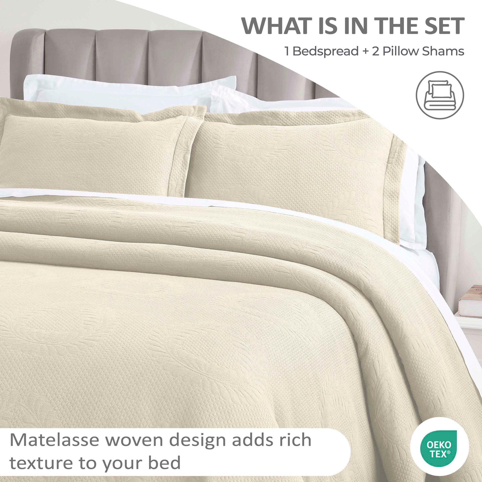 Bring a touch of luxury to your bedroom decor with our Peploi Bedspread Set. Elegant and durable, this bedspread is made from luxuriously soft cotton. Featuring a classic floral wreath matelasse design, this jacquard bedspread brings texture and vintage style to your bedroom. This beautiful set is available in a variety of color options to match with your bedroom decor. Matching pillow shams are included in this set for a polished and coordinated look. Give your master bedroom, daybed or guest room the perfect decorative accent with this beautiful bedspread set.