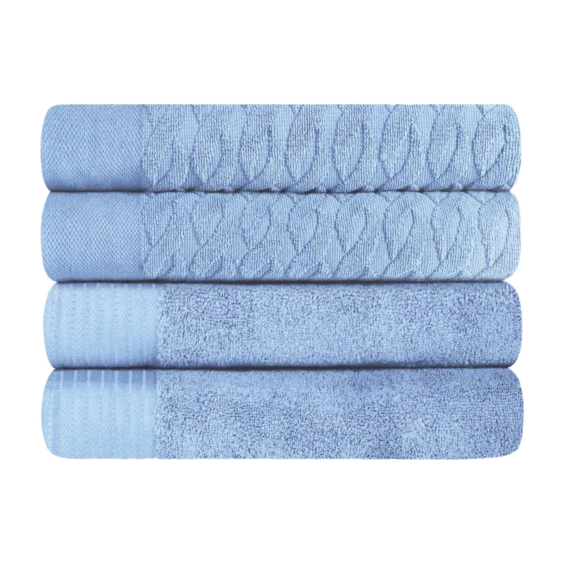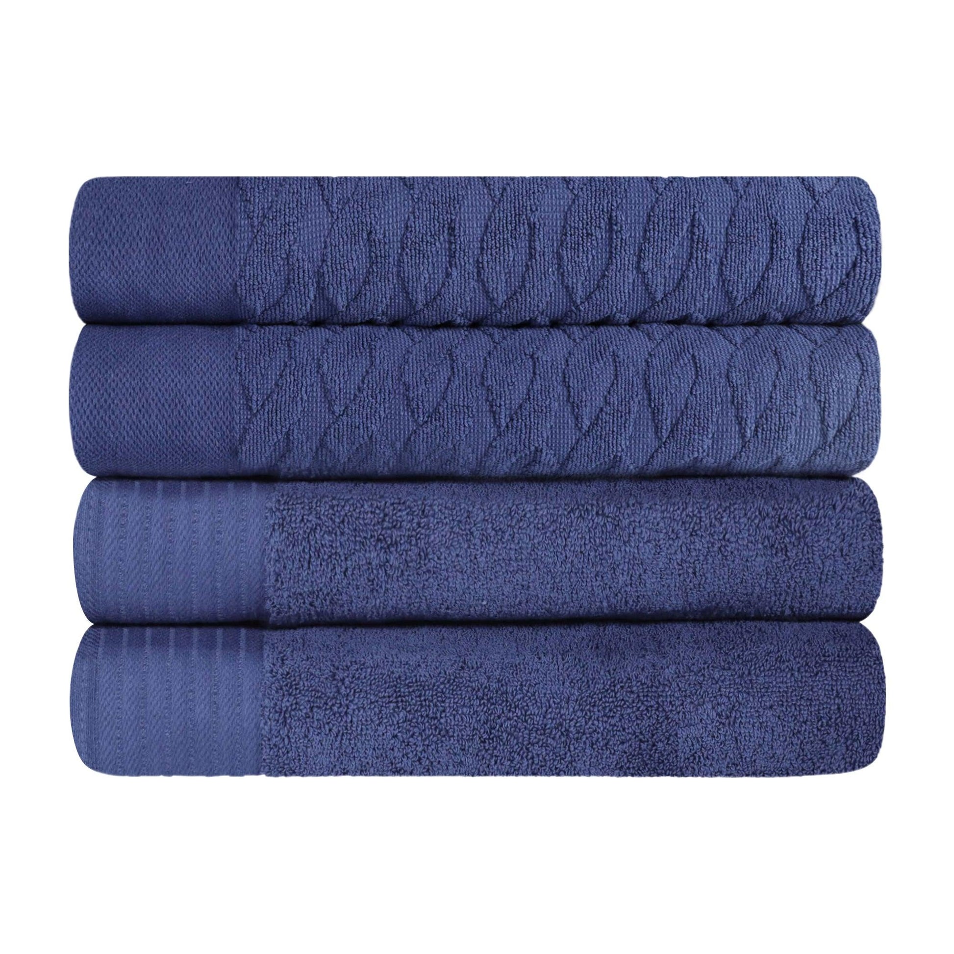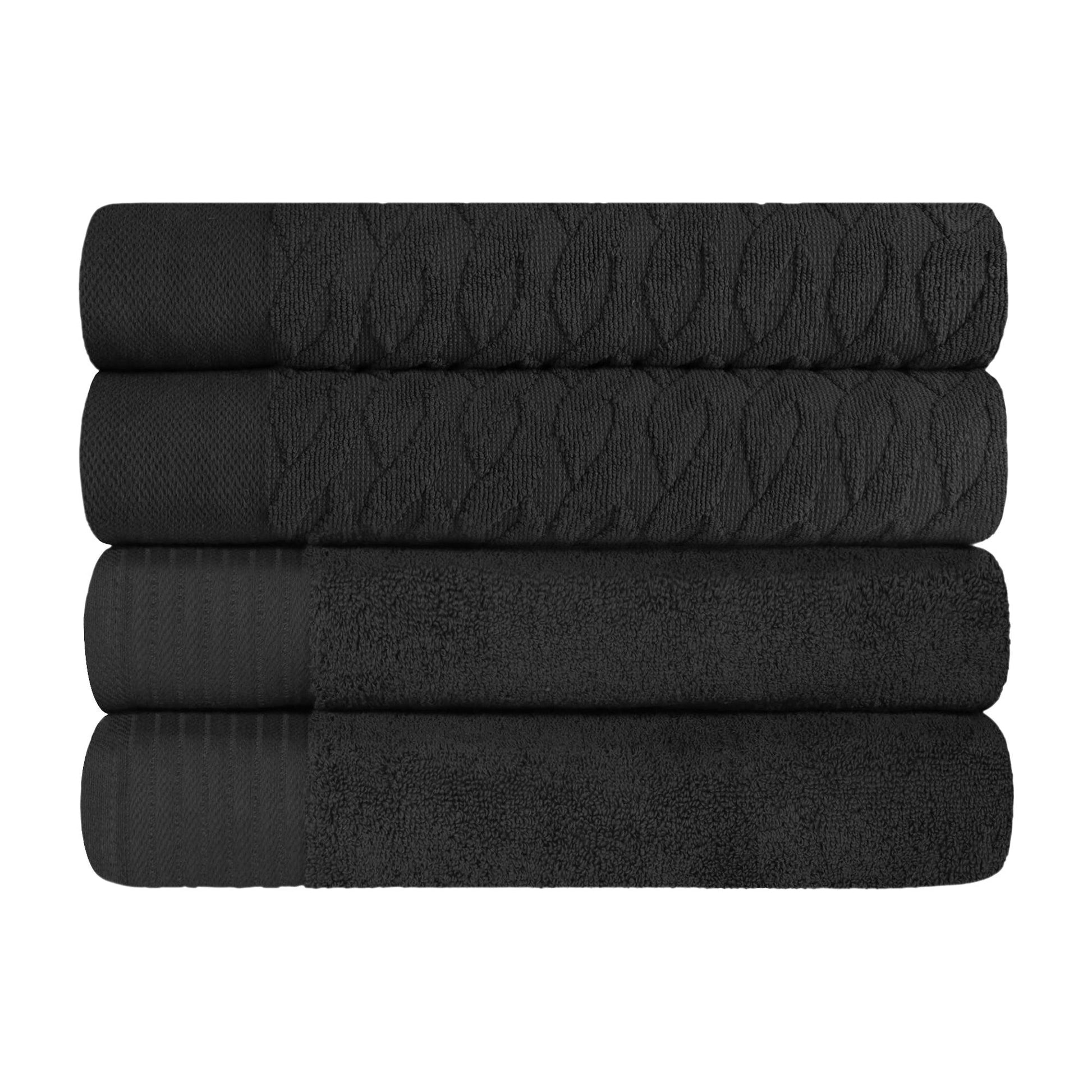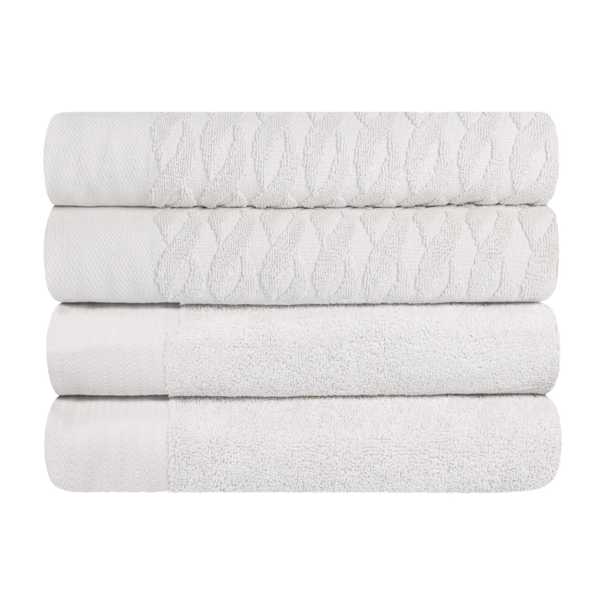 Turkish Cotton Jacquard Herringbone and Solid 4 Piece Bath Towel Set
